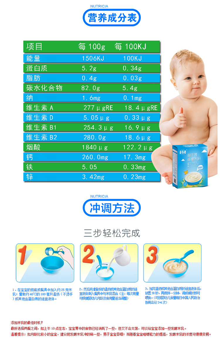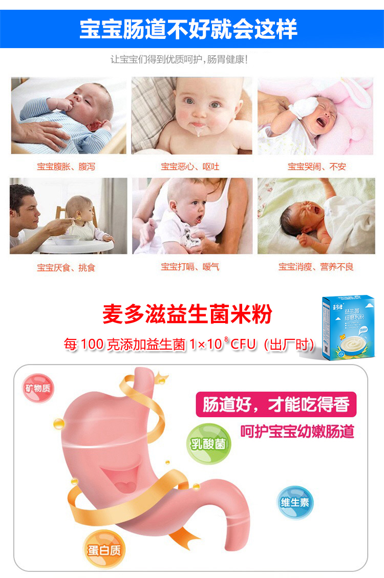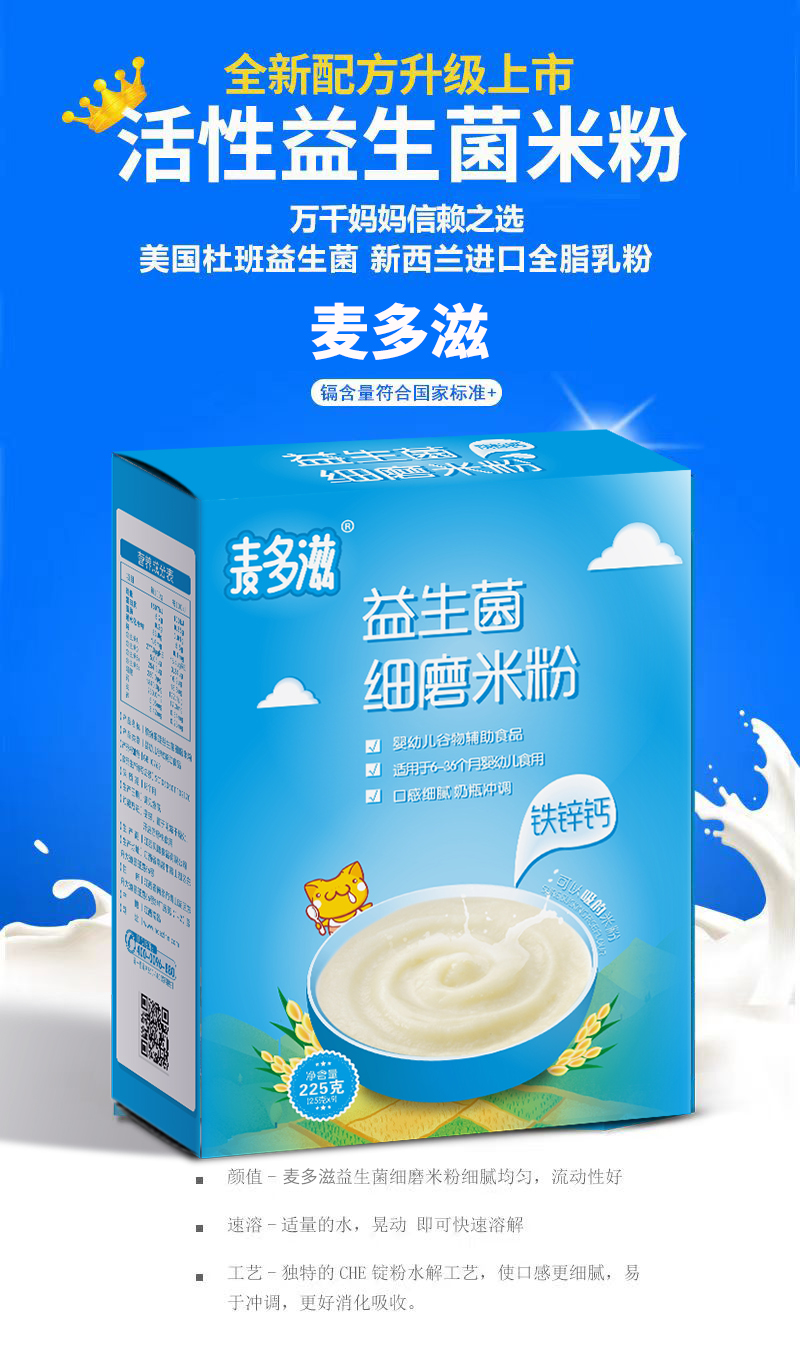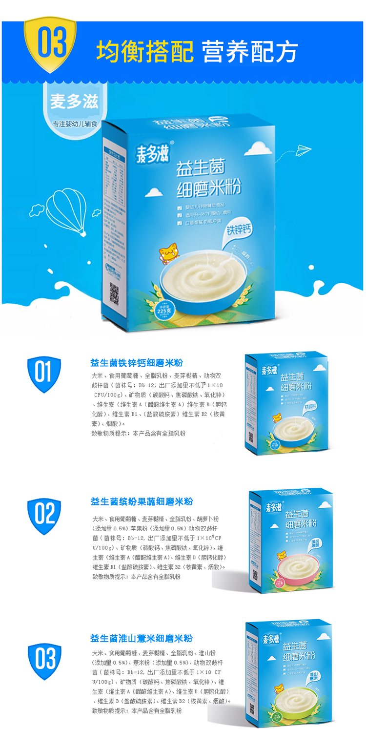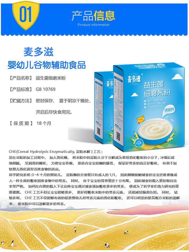 商品名称:菏仕兰国标婴幼儿益生菌铁锌钙果蔬多口味营养米粉米糊225g盒装