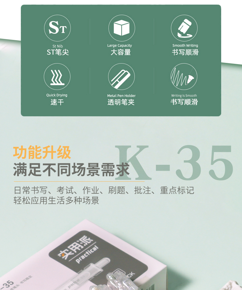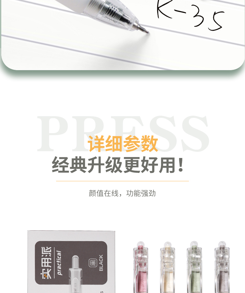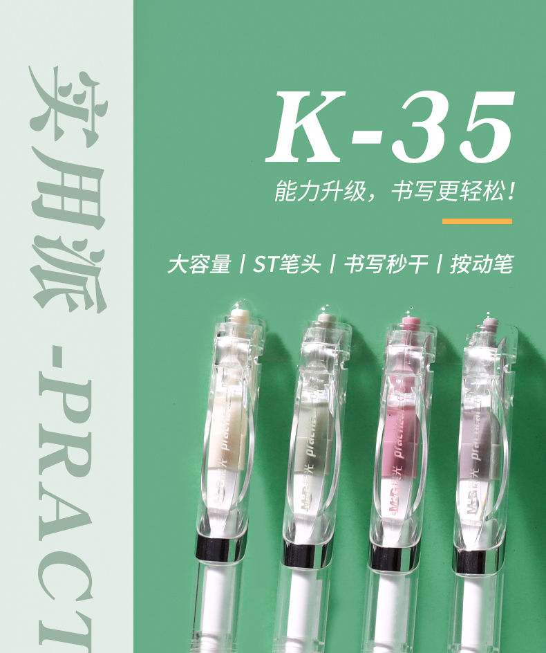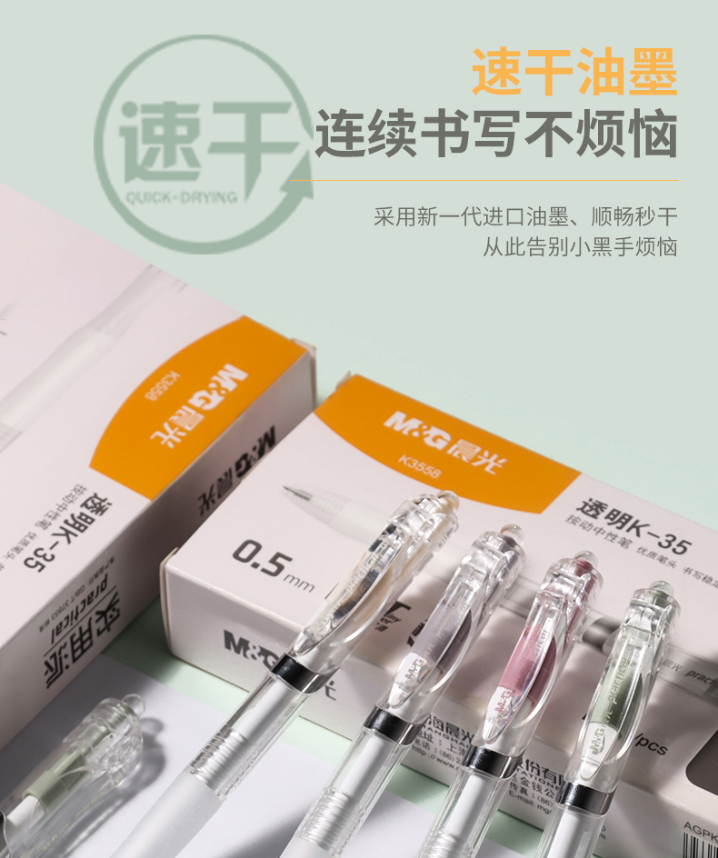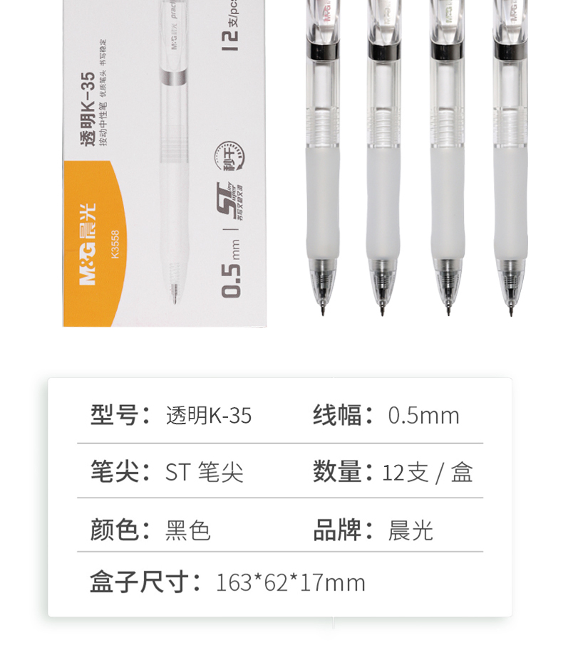商品名称:晨光文具实用派ST透明K35按动中性笔速干刷题专用笔简约水笔学生用碳素黑色考试签字笔