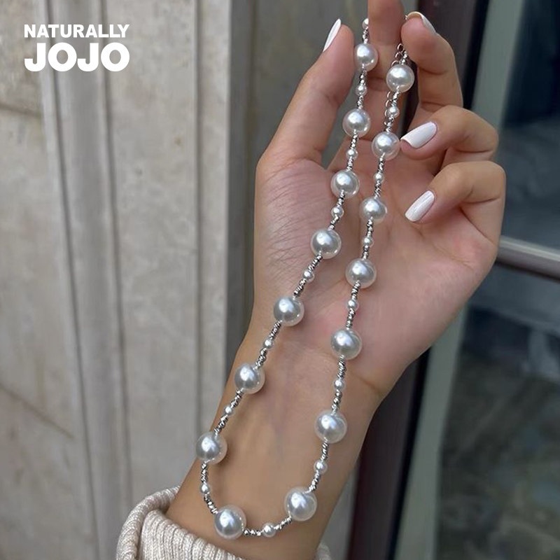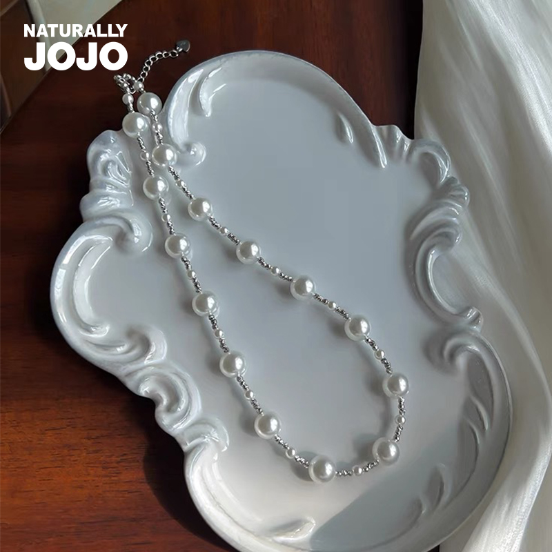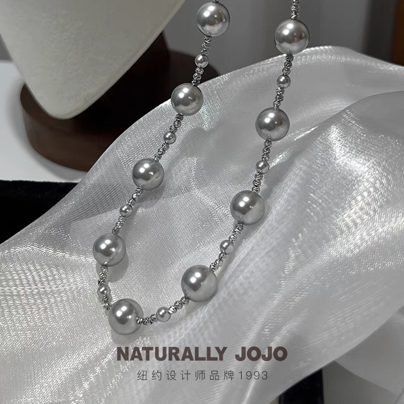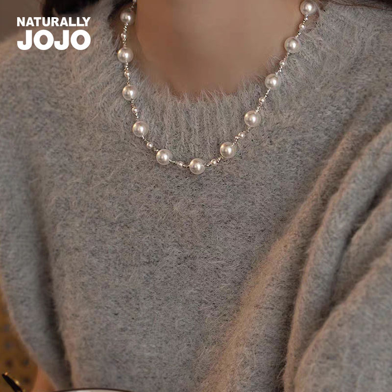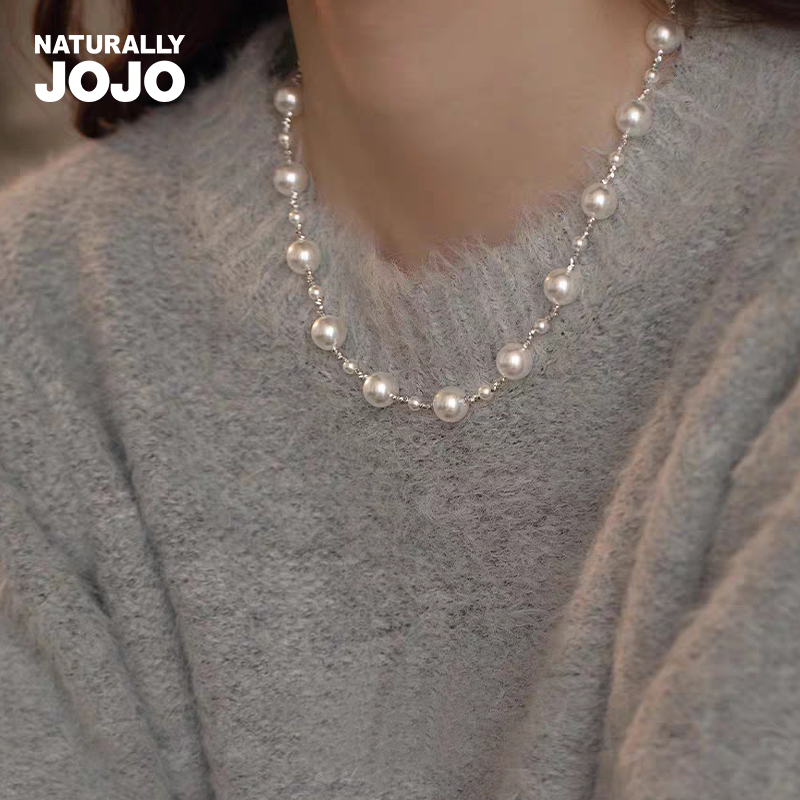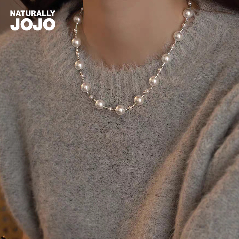 NATURALLY JOJO 女士新款澳白色仿珍珠切花满天星锁骨链毛衣链饰品锁骨链女生生日礼物