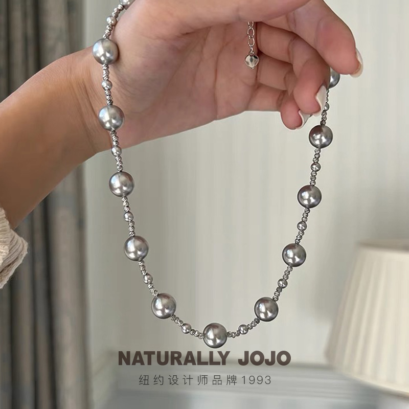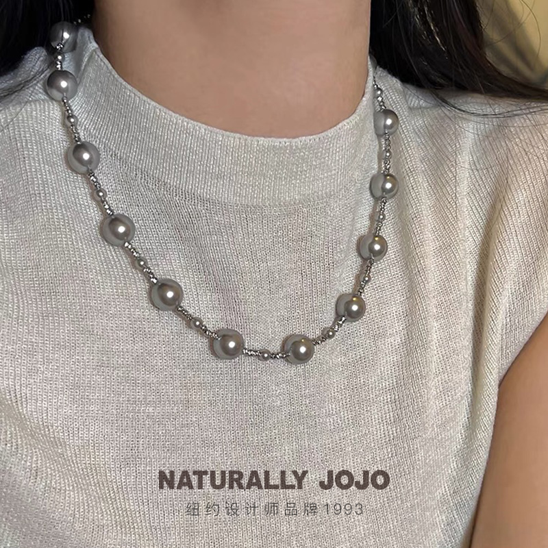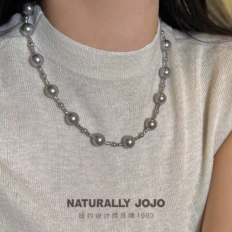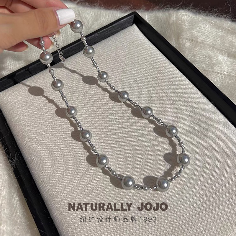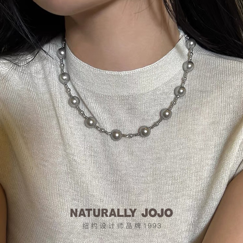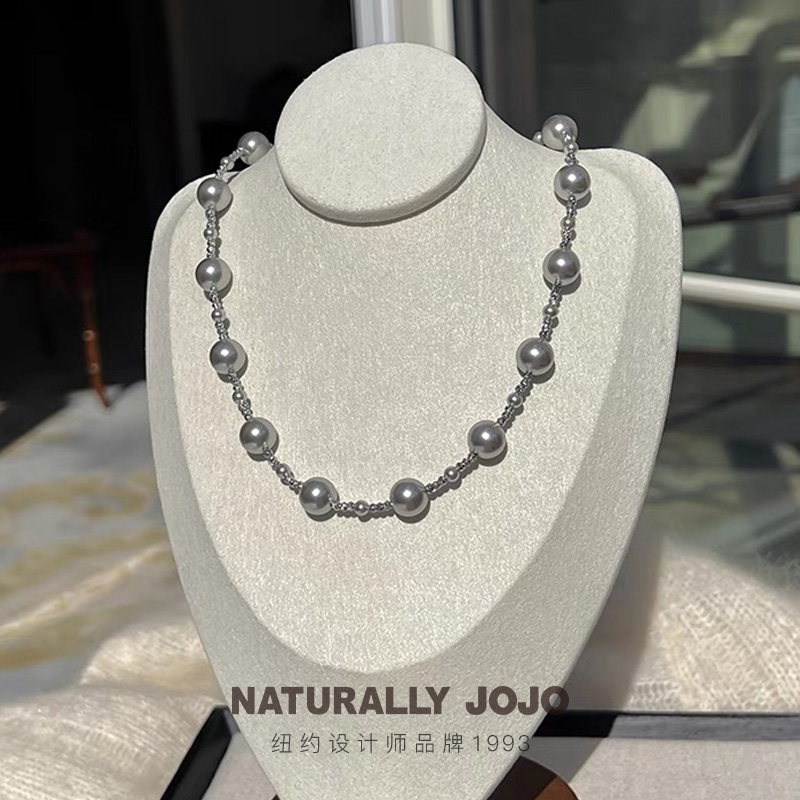 NATURALLY JOJO 女士新款澳白色仿珍珠切花满天星锁骨链毛衣链饰品锁骨链女生生日礼物