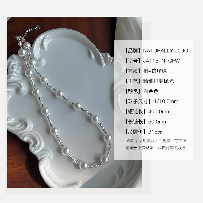 商品名称:NATURALLY JOJO 女士新款澳白色仿珍珠切花满天星锁骨链毛衣链饰品锁骨链女生生日礼物