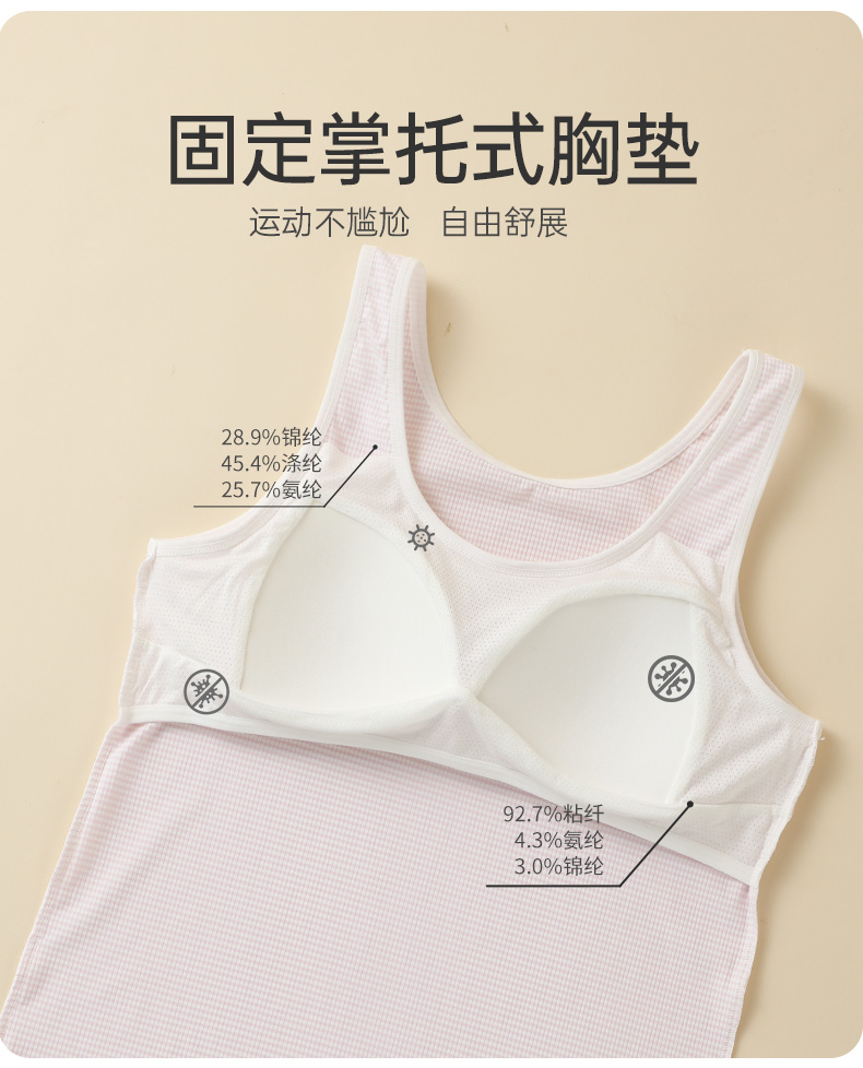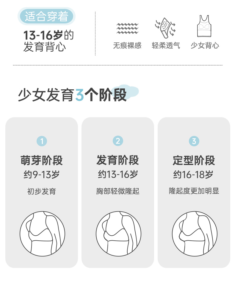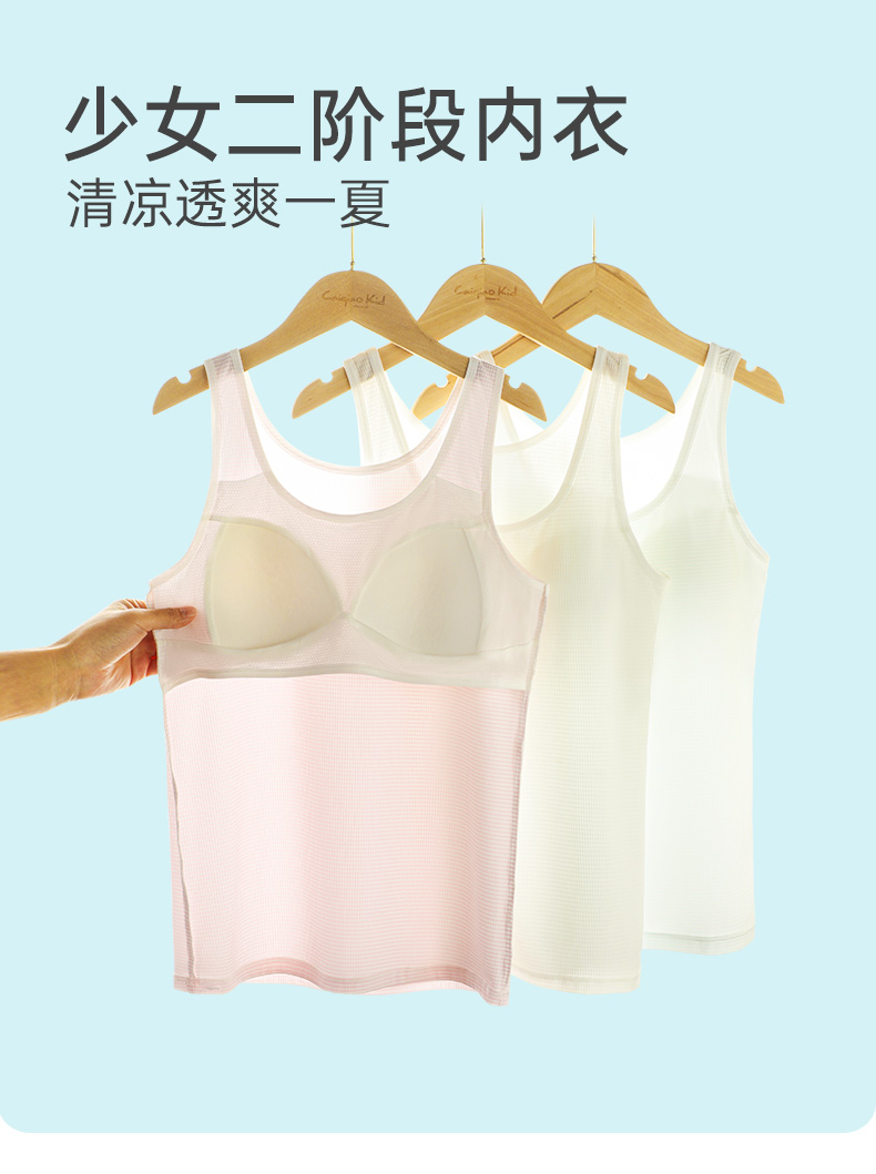 商品名称:彩桥少女防凸背心透气发育期带胸垫初中学生女文胸长款女童内衣二阶段