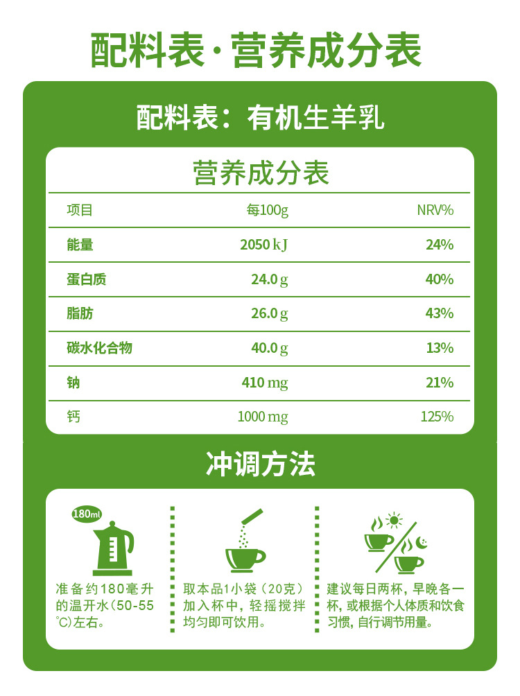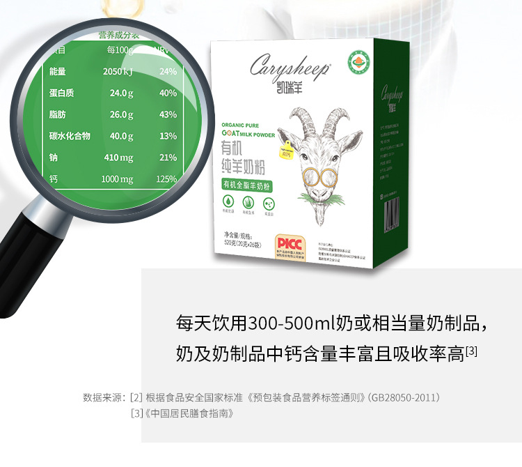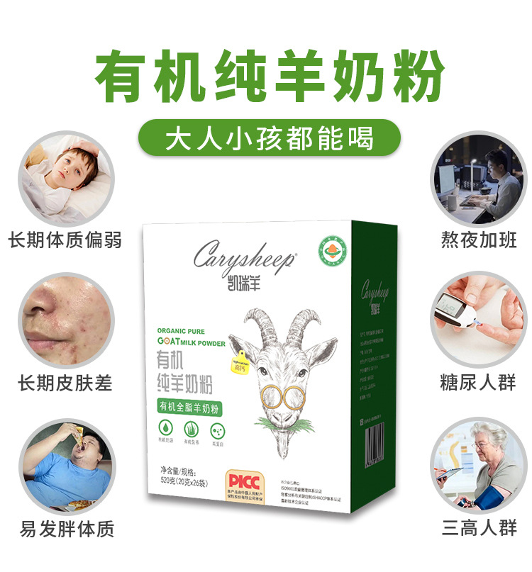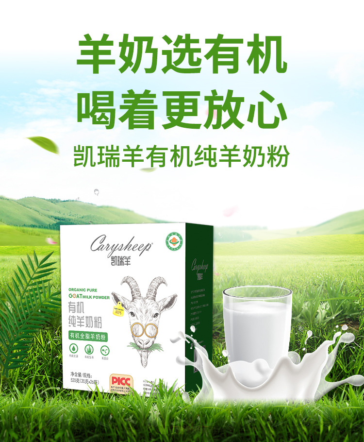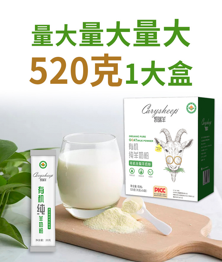 商品名称:凯瑞羊有机纯羊奶粉520克/盒无蔗糖高钙蛋白无添加中老年孕妇学生营养乳粉山羊奶
