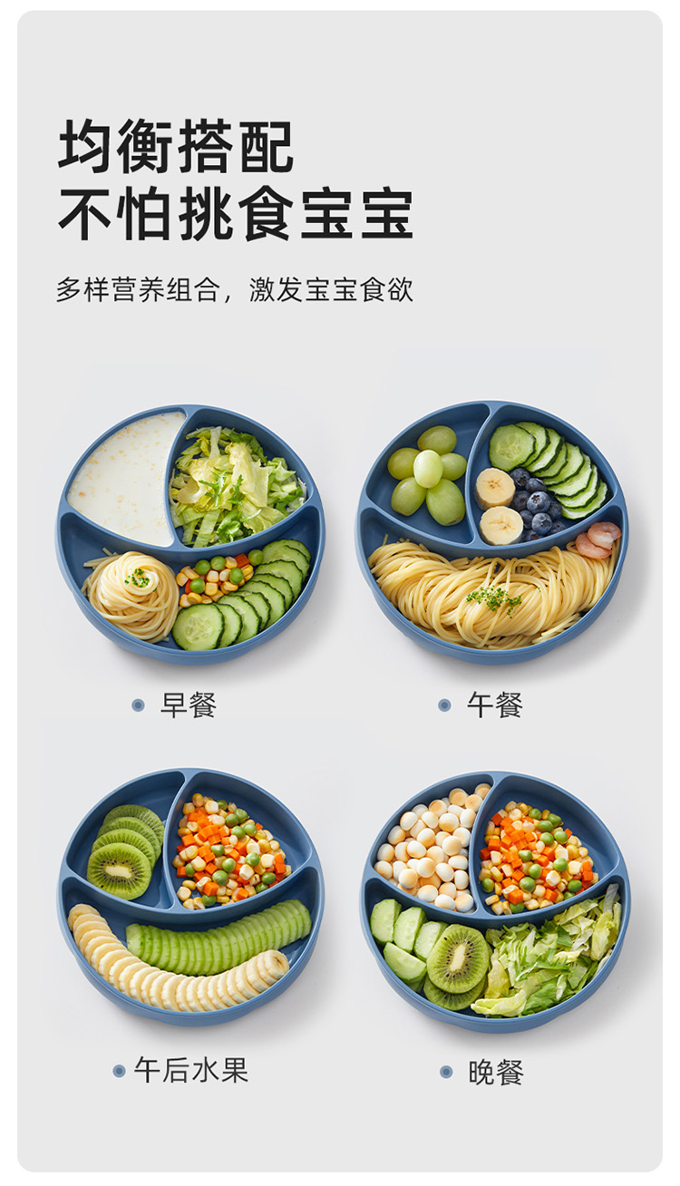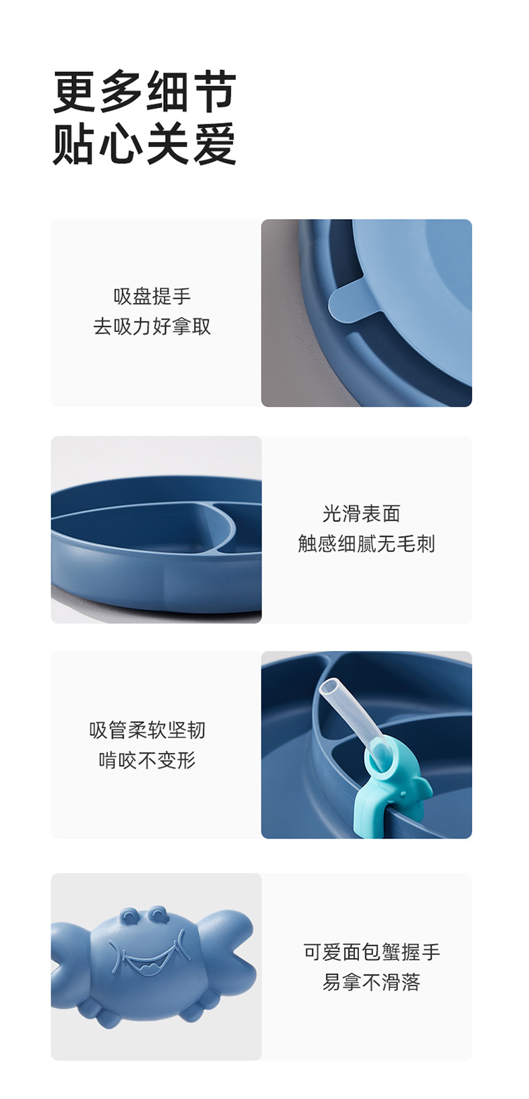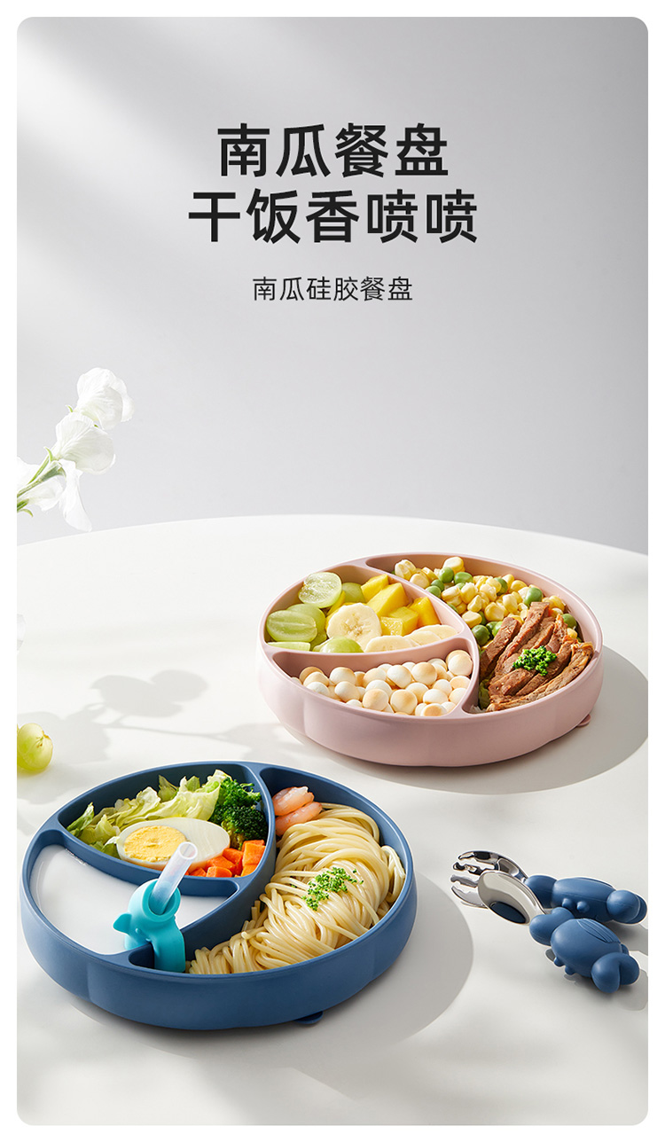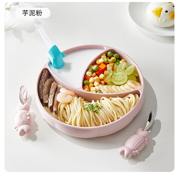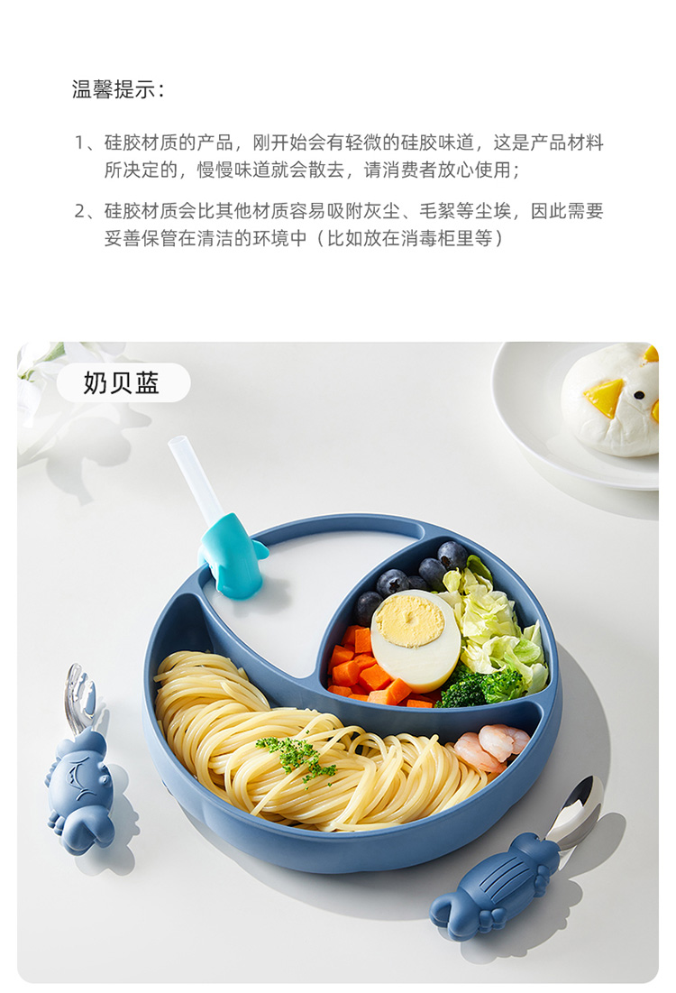 商品名称:抢购 琳达妈咪新升级婴儿辅食盘儿童餐具宝宝硅胶餐盘分格吸盘碗带吸管餐盘
