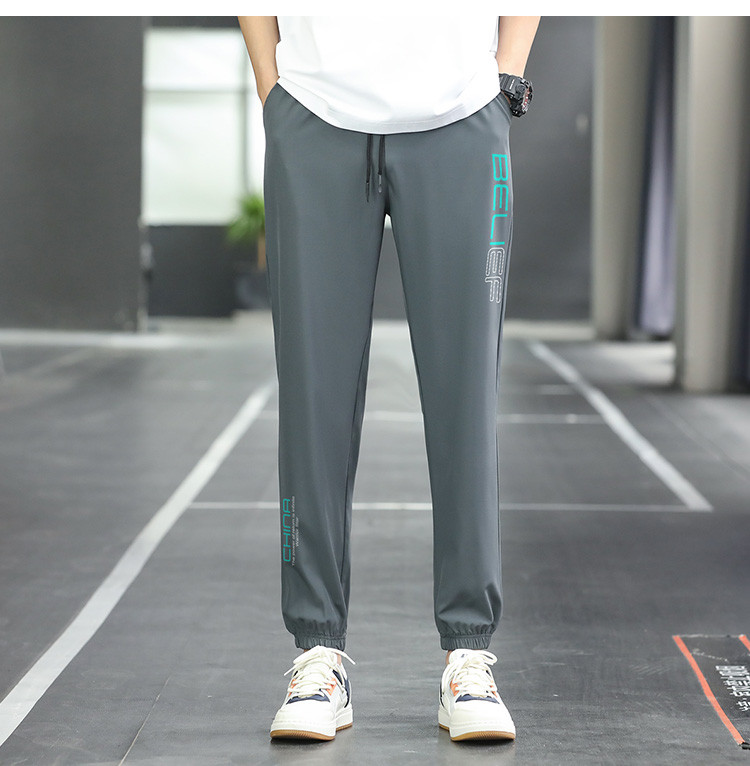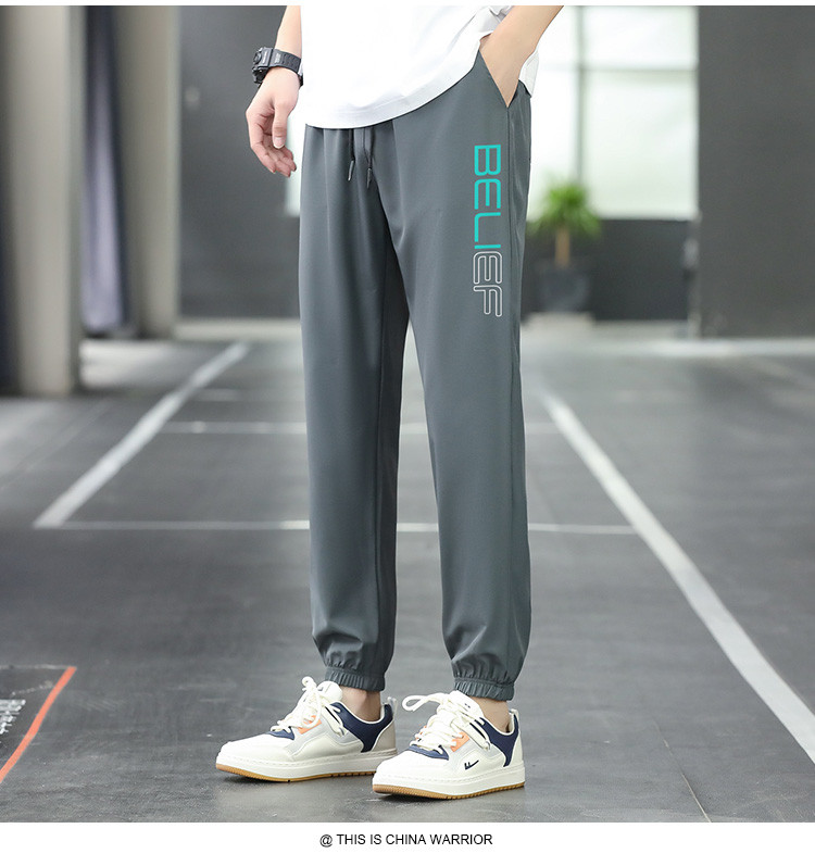 商品名称:男士夏季九分裤薄款透气运动时尚港风潮流印花百搭青年运动休闲裤 079123
