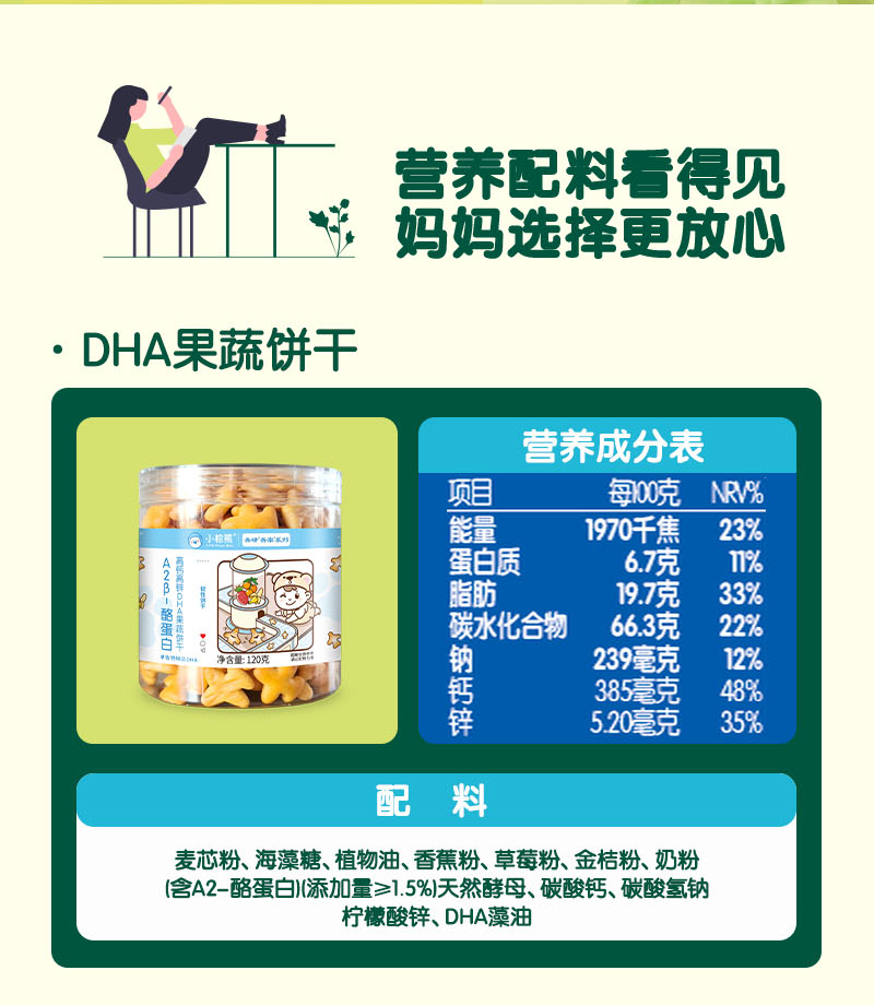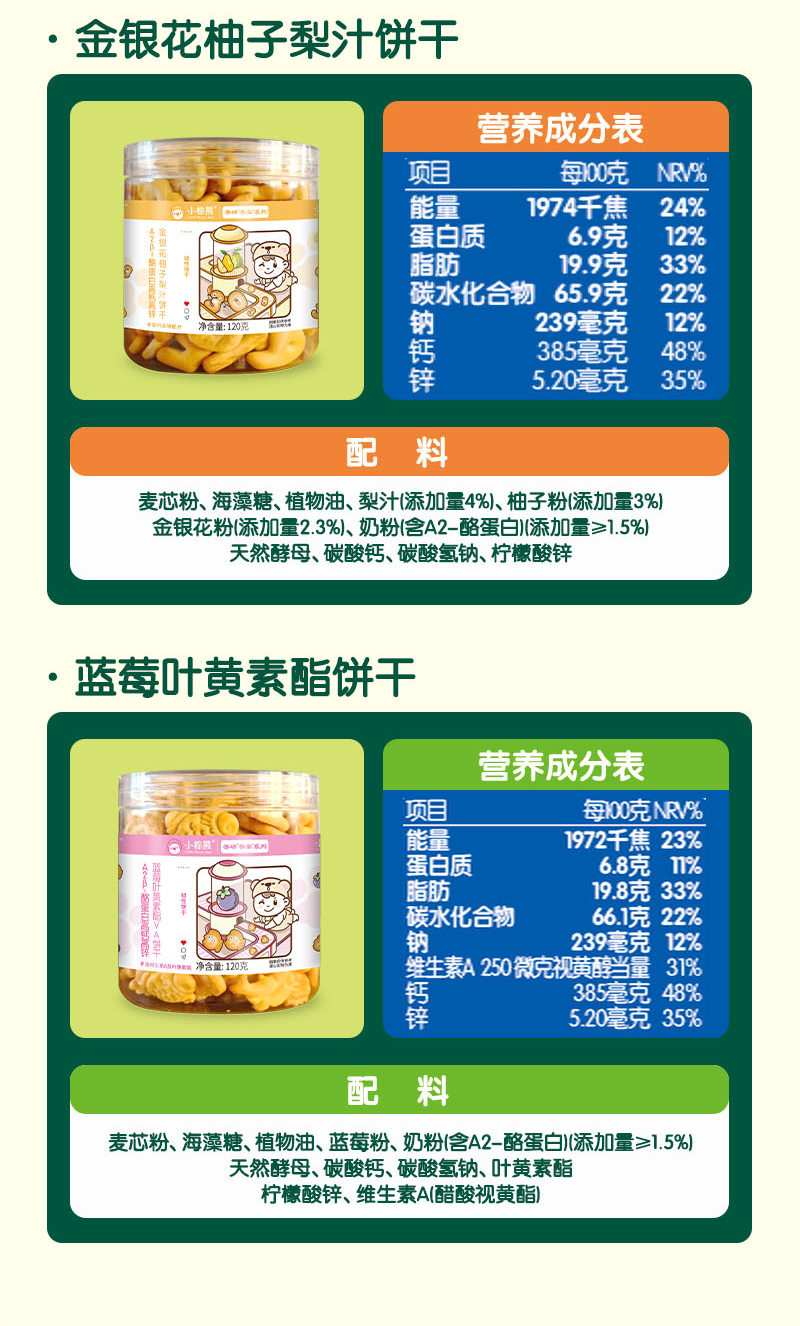商品名称:小棕熊-A2β-酪蛋白高钙高锌饼干120克 三味可选辅食小零食儿童饼干