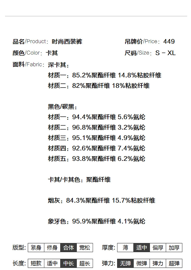 商品名称:【九分裤】春秋直筒西装裤假口袋休闲裤子女春秋 950337