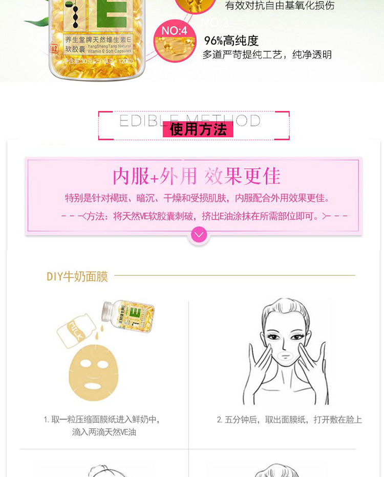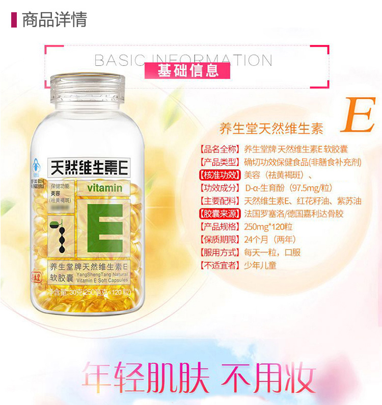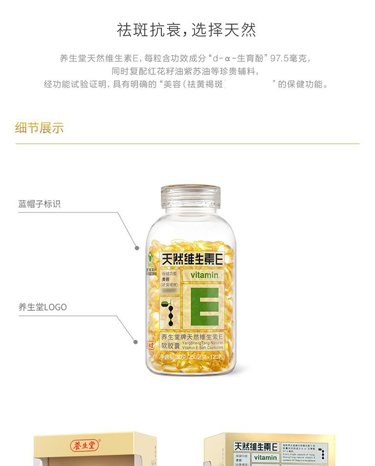 商品名称:养生堂天然维生素e120粒维e天然维c90片女士美容祛黄褐斑增强免疫力成人保健品内服外用