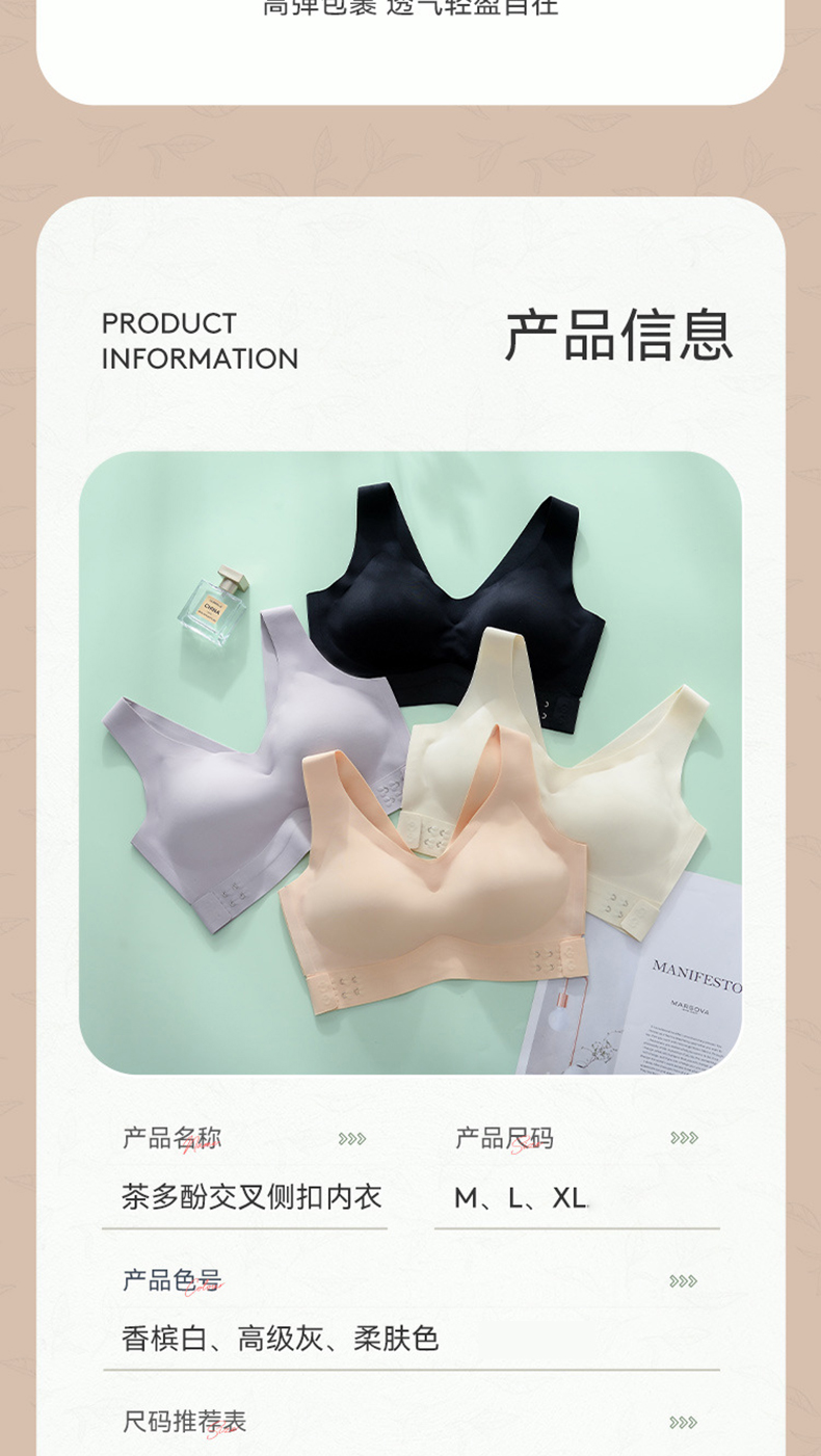 商品名称:蔓朵奇前侧扣交叉美背女士内衣茶多酚抑菌无痕聚拢承托高弹文胸女
