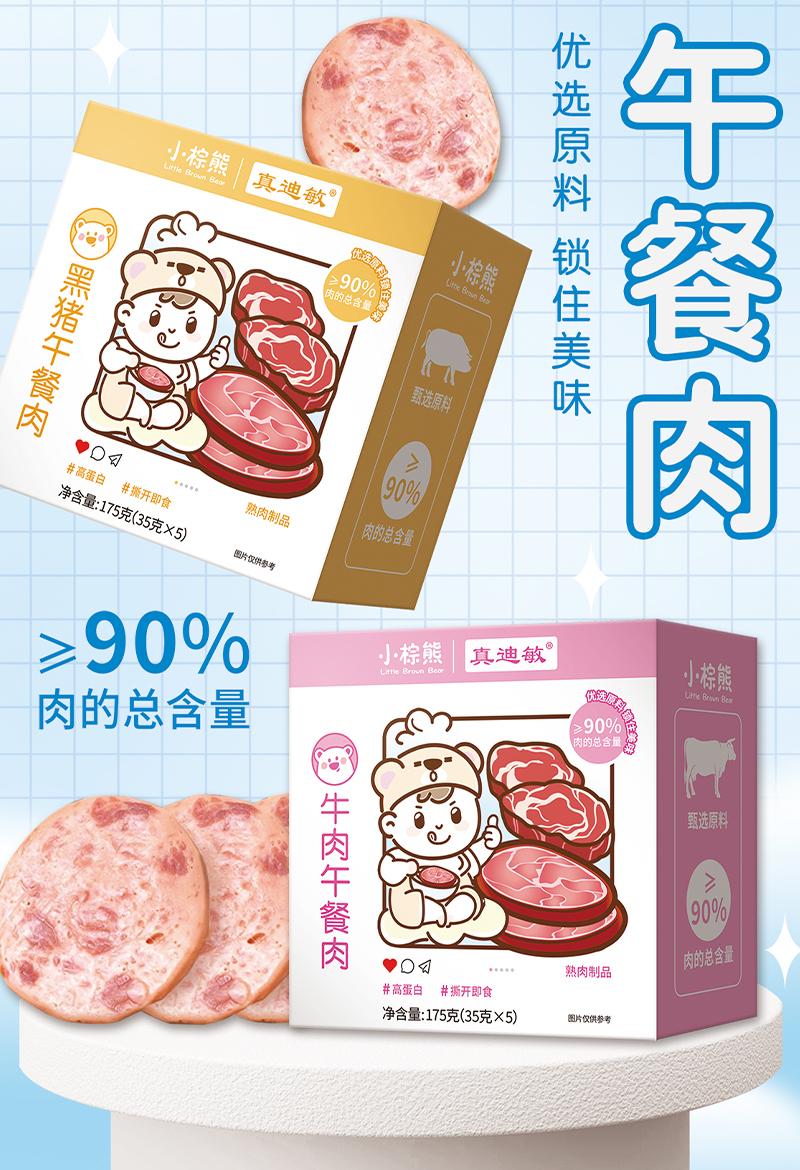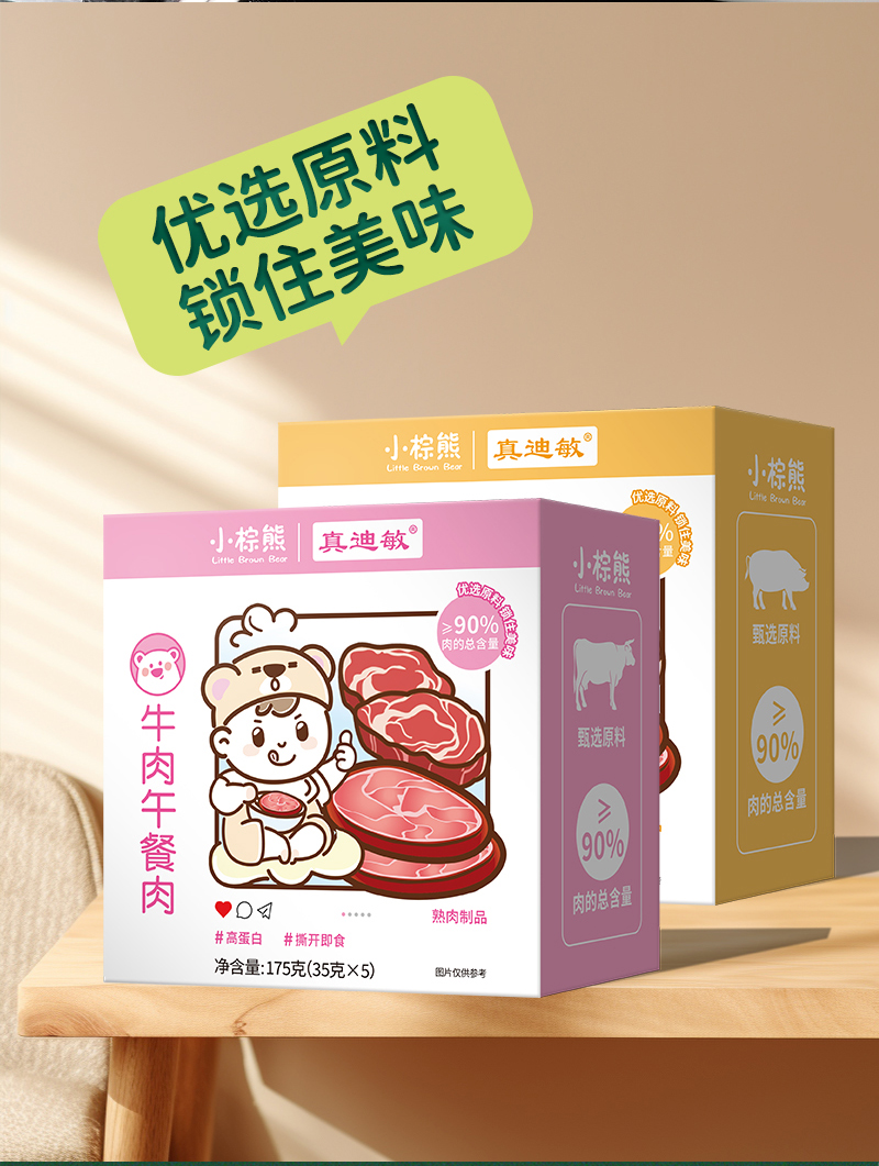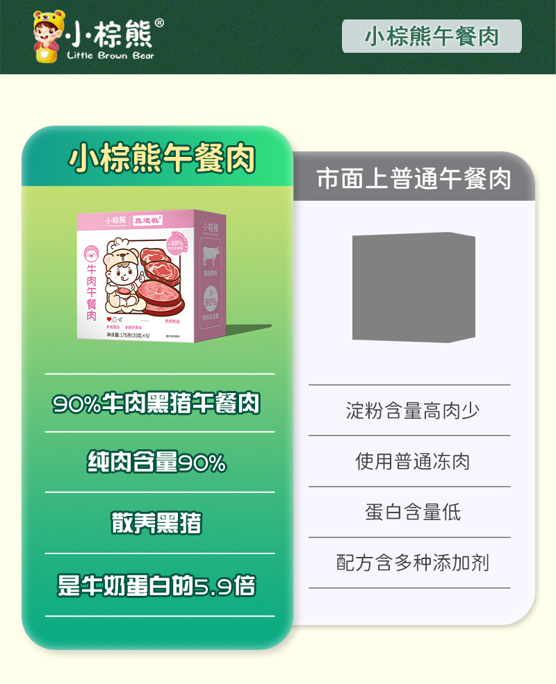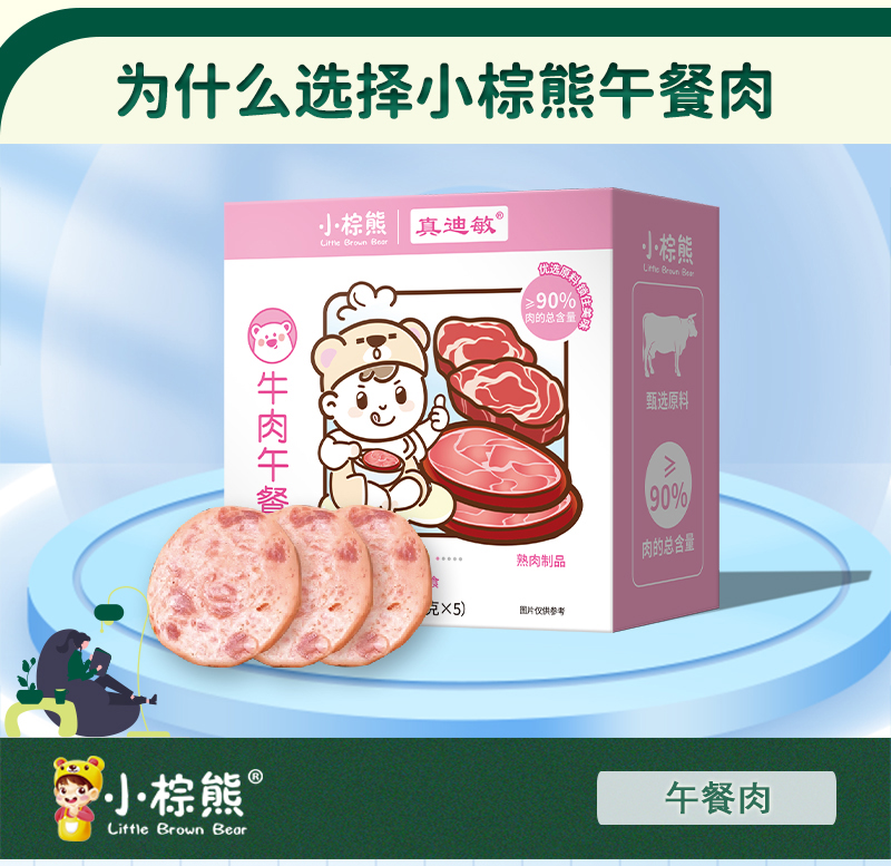 小棕熊90%牛肉 黑猪肉 午餐肉(5包)175克 辅食牛肉肠火腿肠小零食儿童