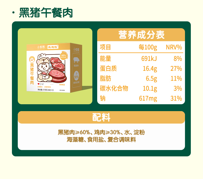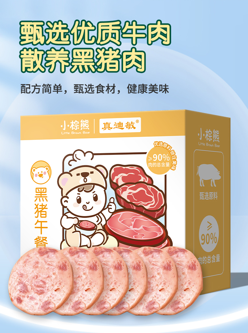 商品名称:小棕熊90%牛肉 黑猪肉 午餐肉(5包)175克 辅食牛肉肠火腿肠小零食儿童
