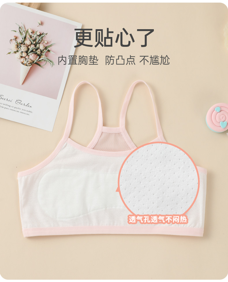 商品名称:彩桥少女内衣发育期小学生防凸点一阶段女孩内穿打底小背心夏季抹胸吊带