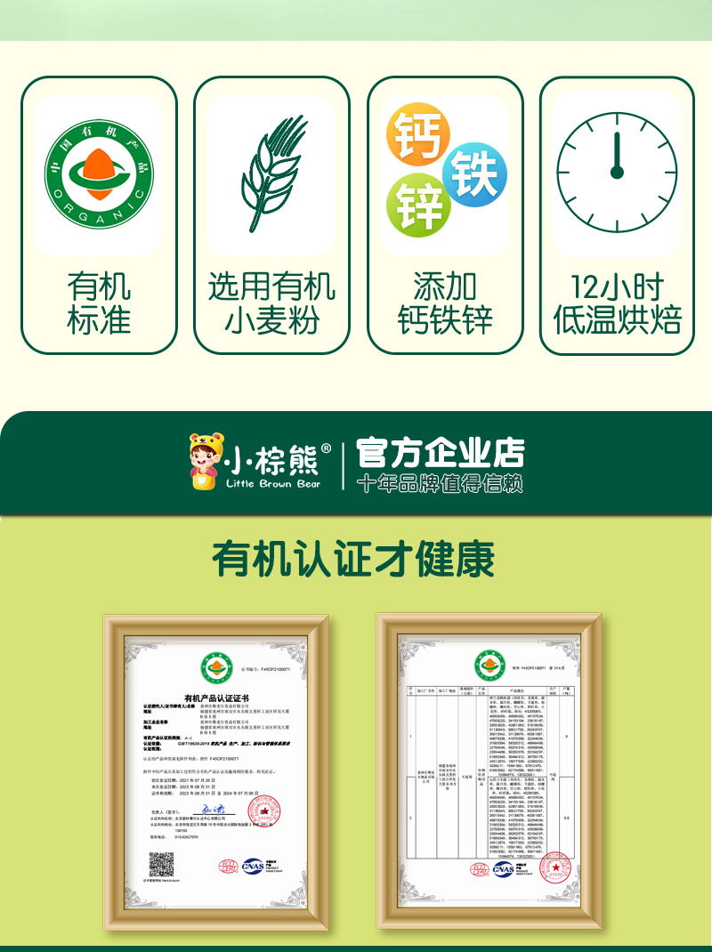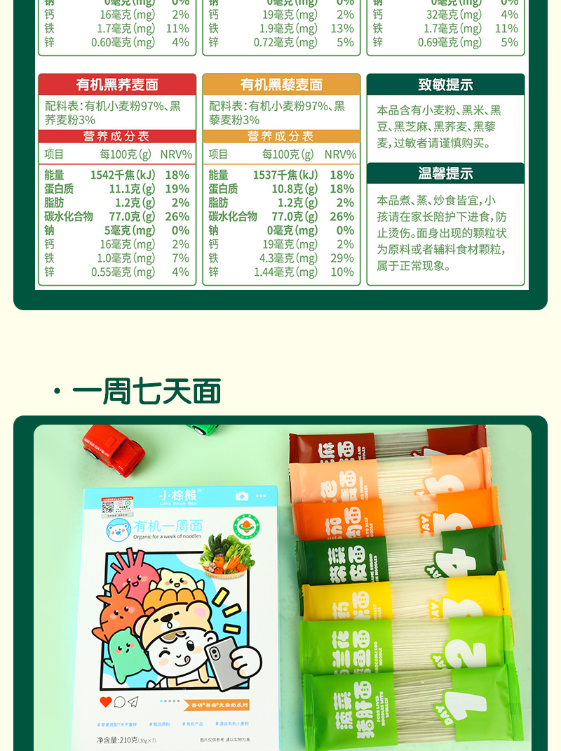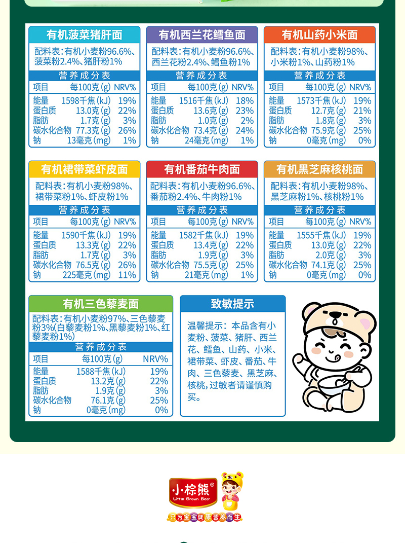 商品名称:小棕熊有机一周面 无盐配方婴幼儿小面条
