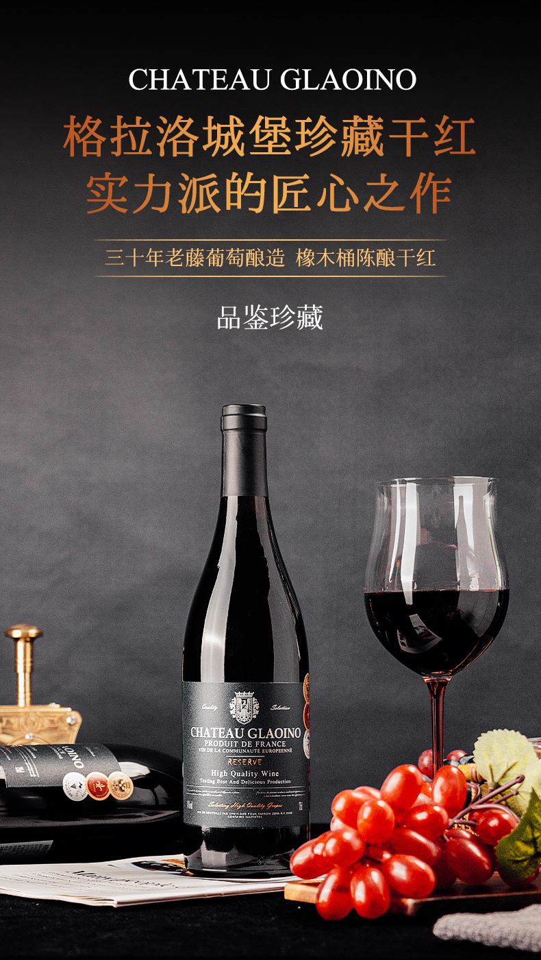 商品名称:【整箱送2个水晶杯】法国进口 格拉洛城堡珍藏干红葡萄酒750ml商务宴请婚礼酒席