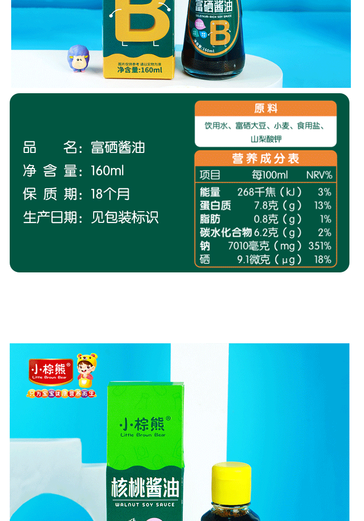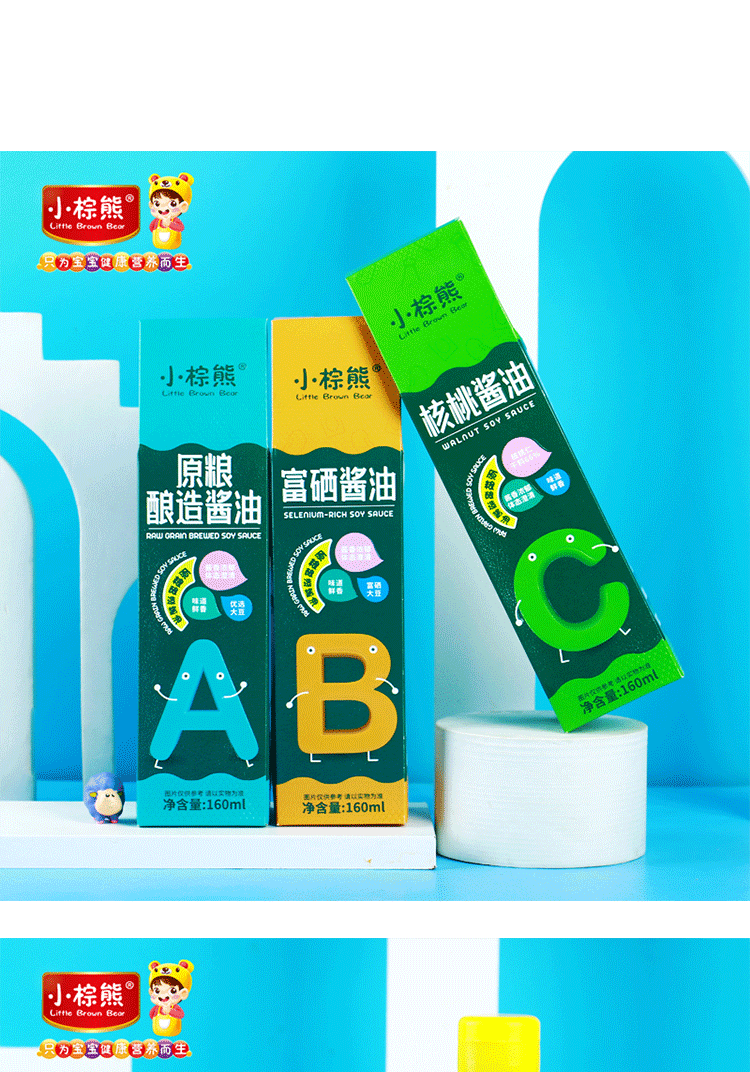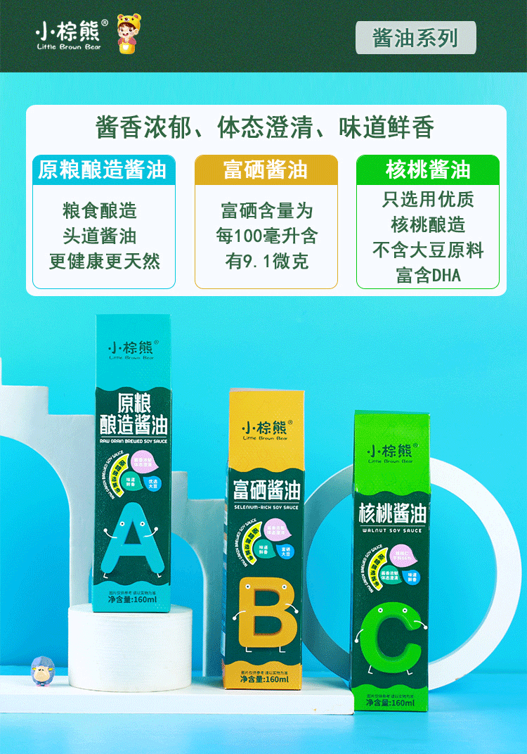 商品名称:香港小棕熊Little Brown Bear 原味酿造酱油富硒酱油160ml 核桃酱油调味品无添加酱油