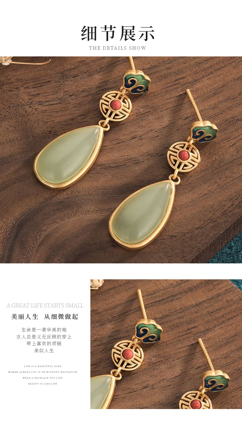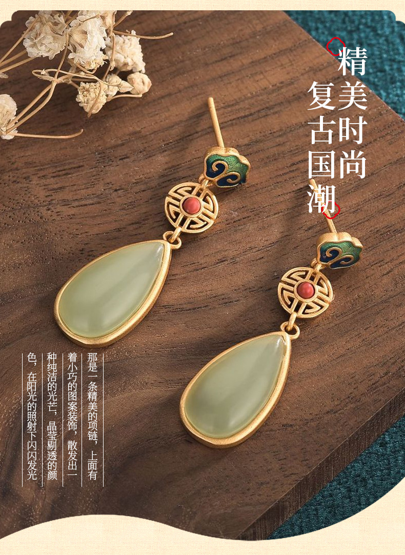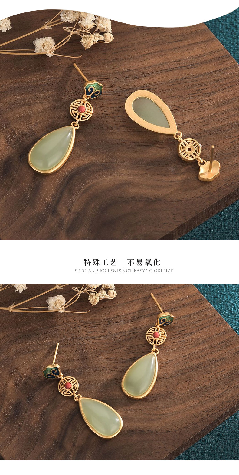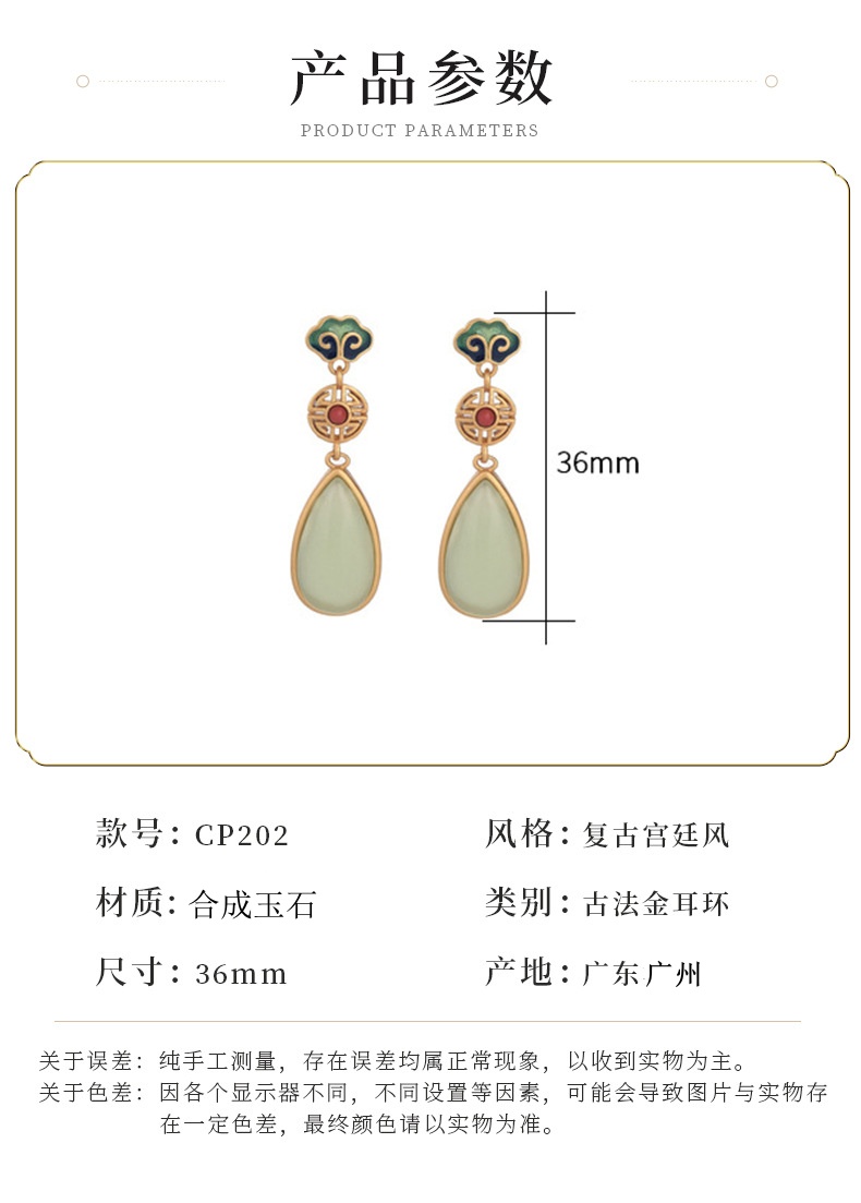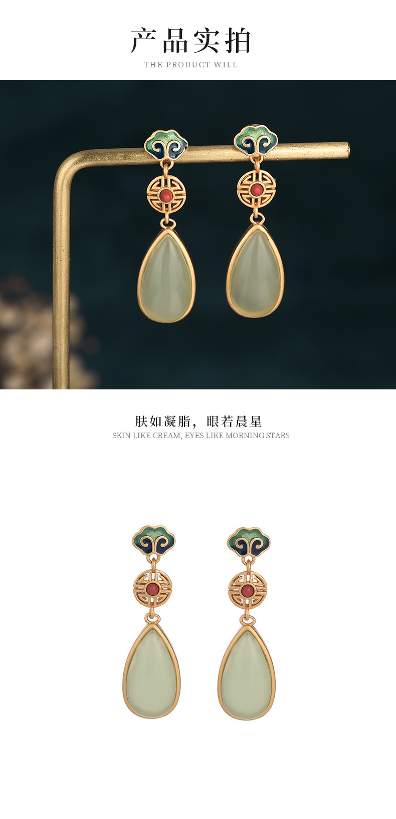 商品名称:彤彤兔 中国风汉服旗袍耳饰彩绘珐琅耳钉合成玉石南红宝石复古祥云耳环女