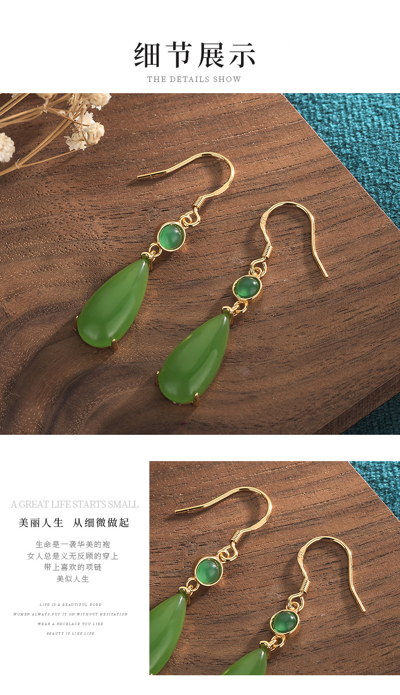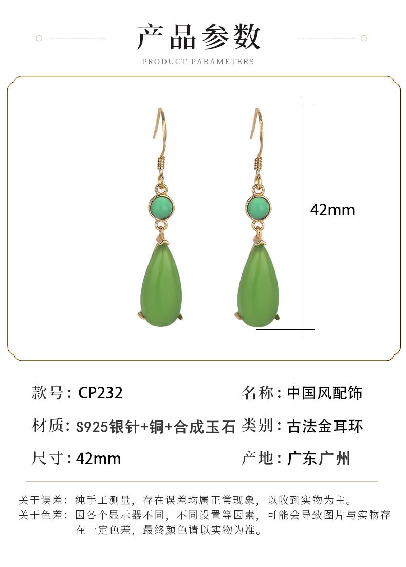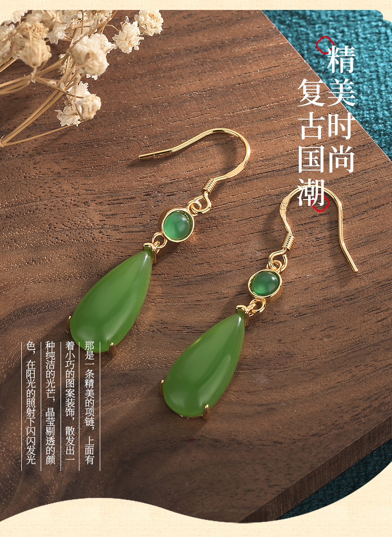 商品名称:彤彤兔 古典宫廷风耳饰古装汉服女式古法金合成玉石耳环耳坠