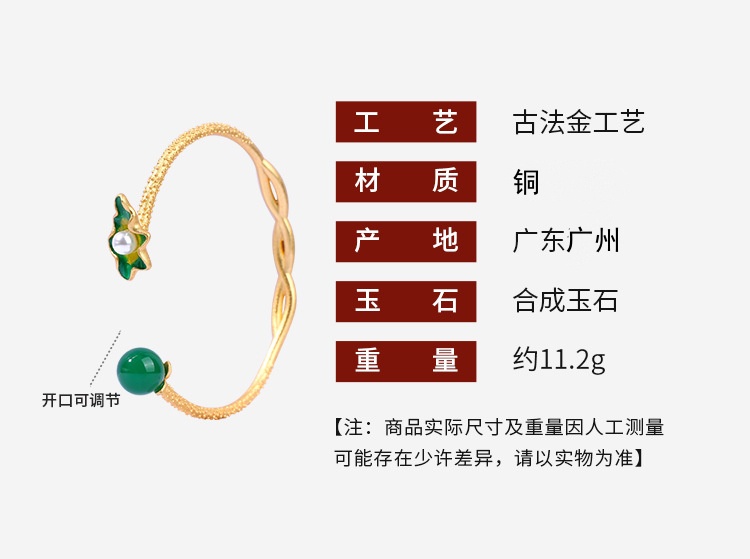 商品名称:彤彤兔 民族宫廷风手饰古法饰品烧蓝合成玉石荷叶手镯手环