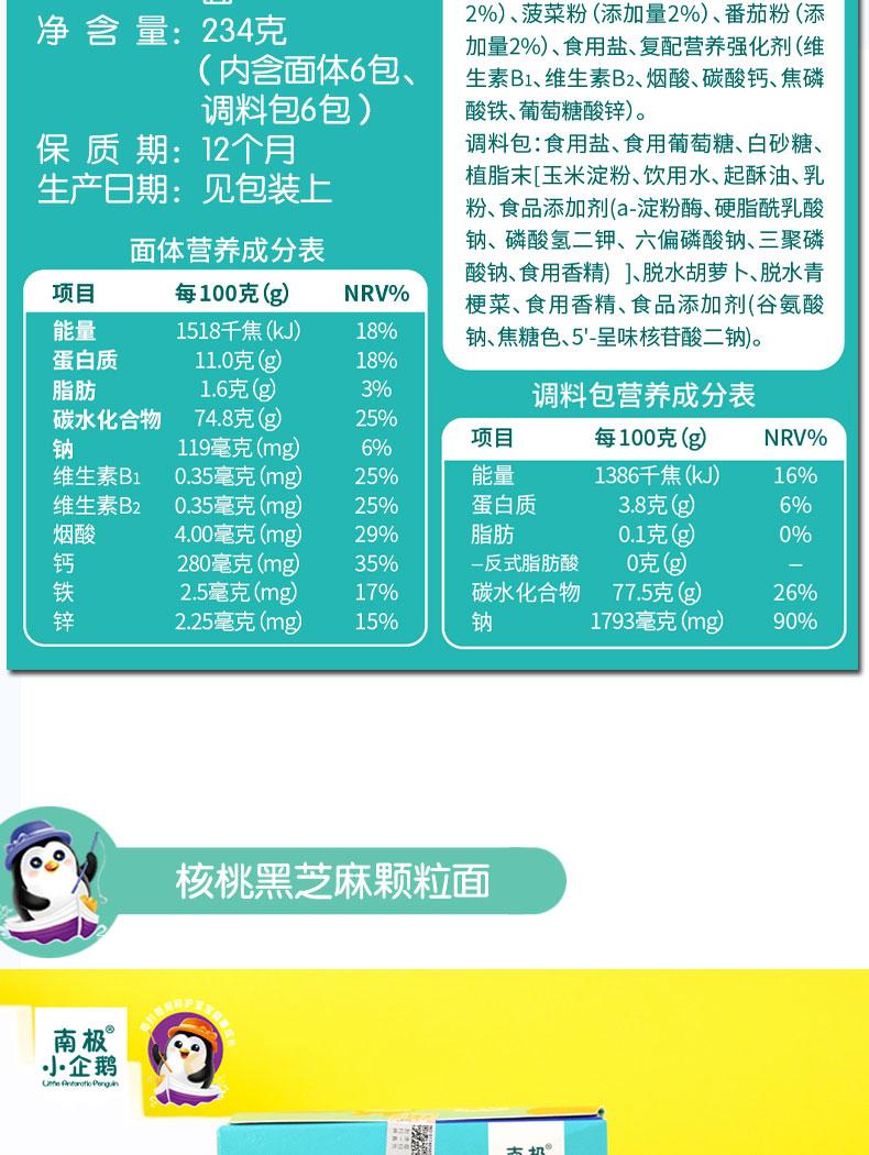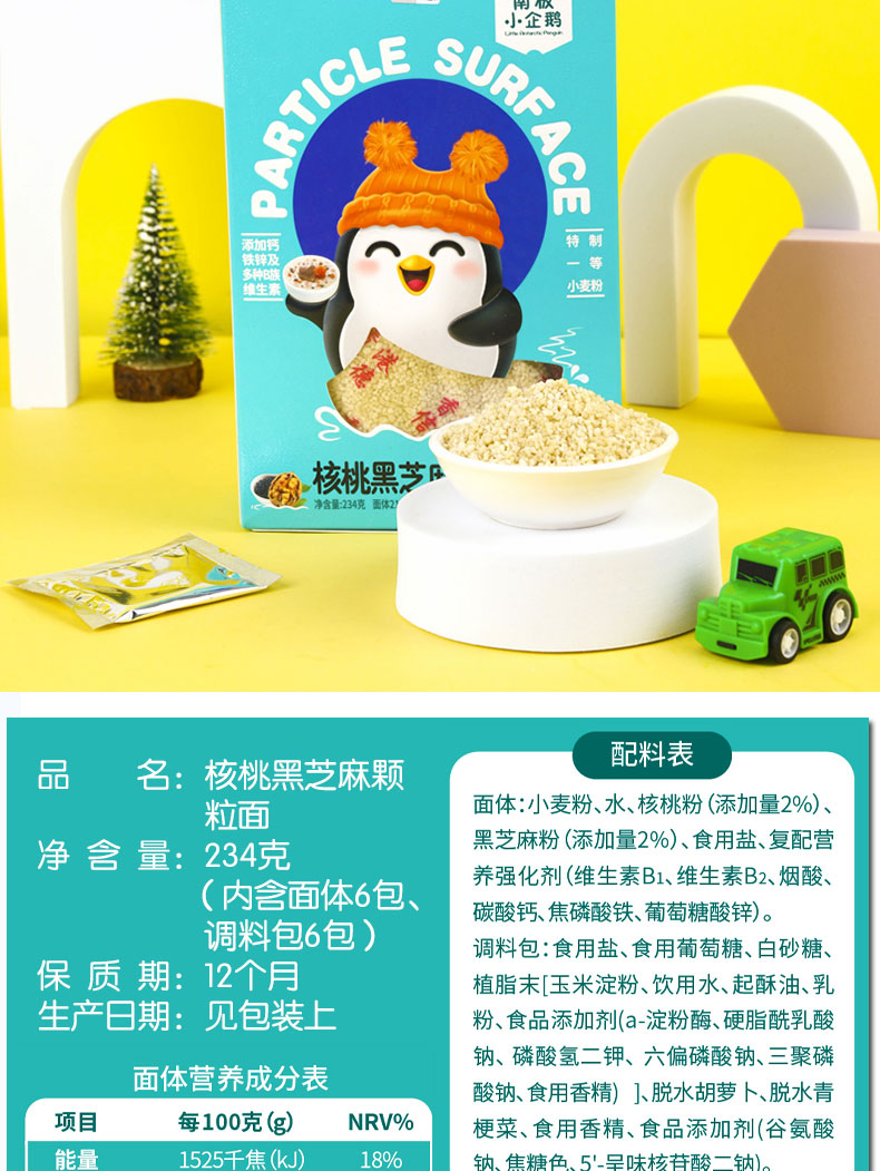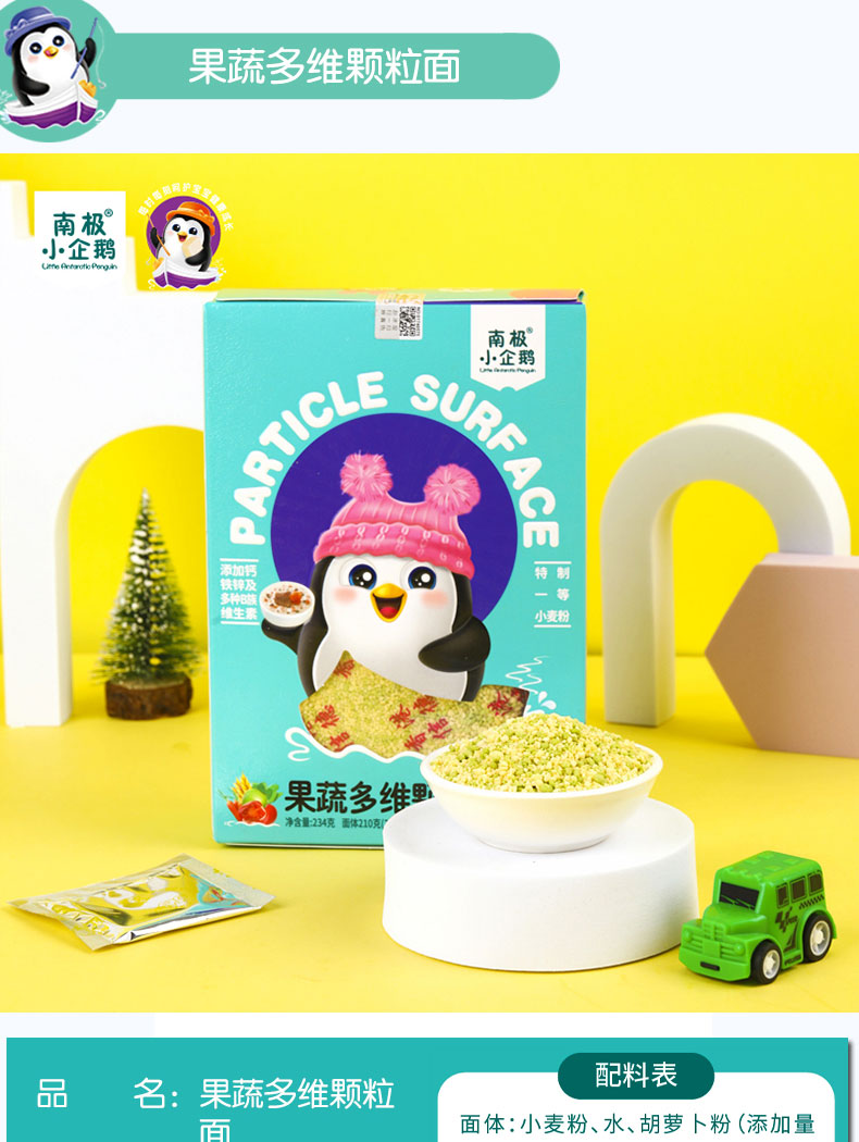 商品名称:南极小企鹅品牌 儿童营养颗粒面 碎碎面 234g盒装(带料包)4味可选碎面