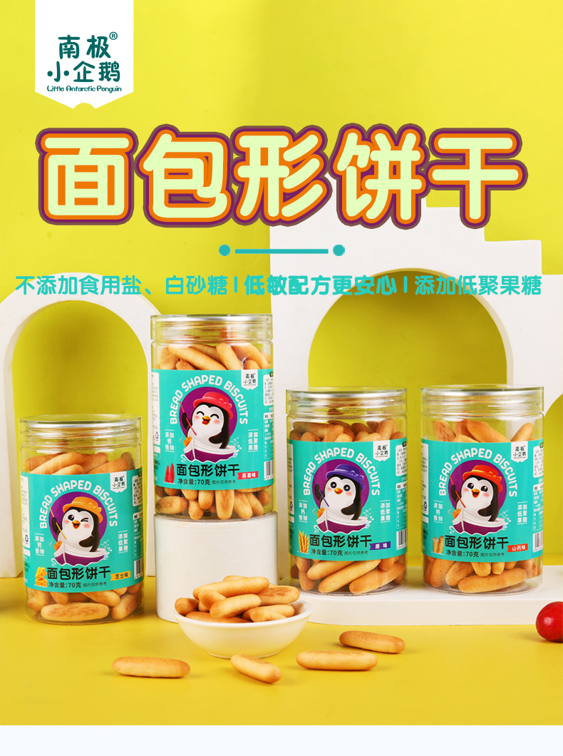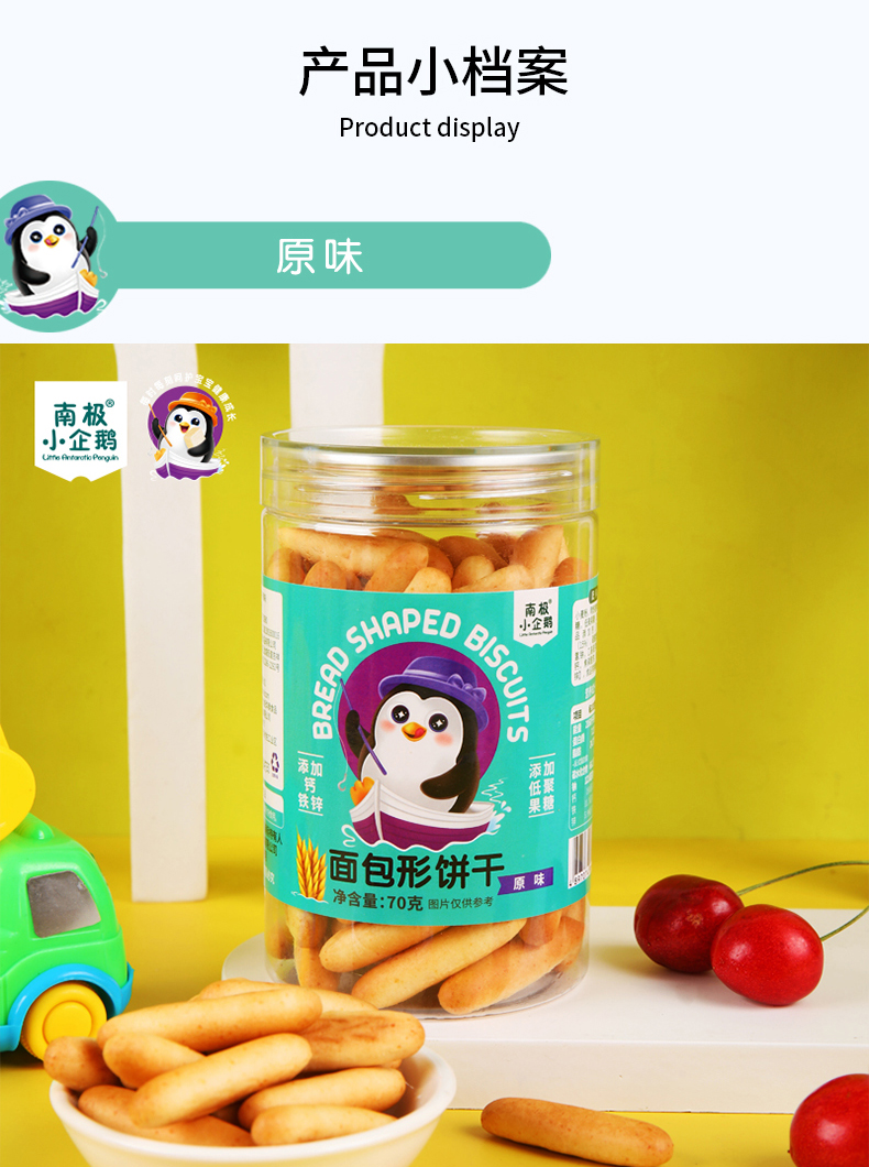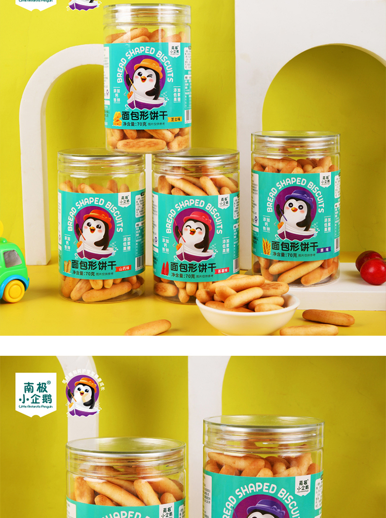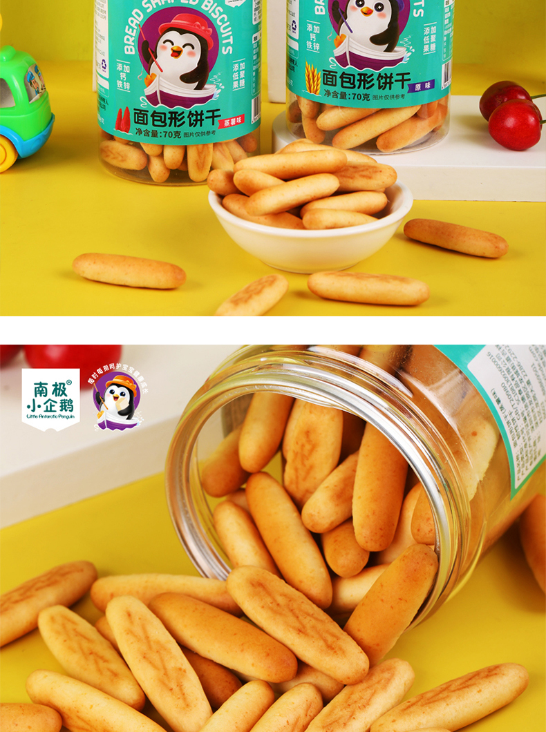 商品名称:南极小企鹅 木糖醇面包饼干70罐装4口味可选芝士牛奶蒸薯山药味 儿童辅食小零食