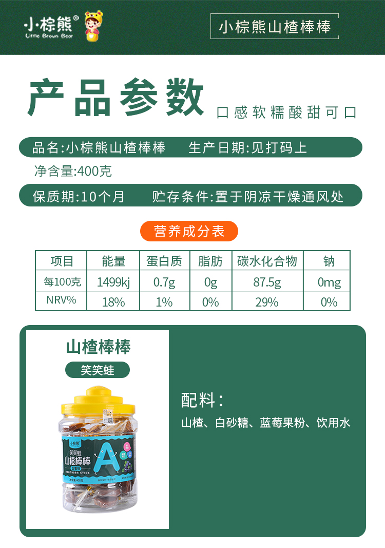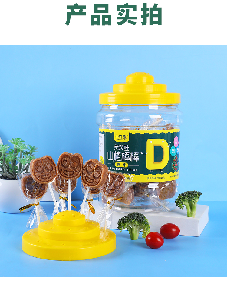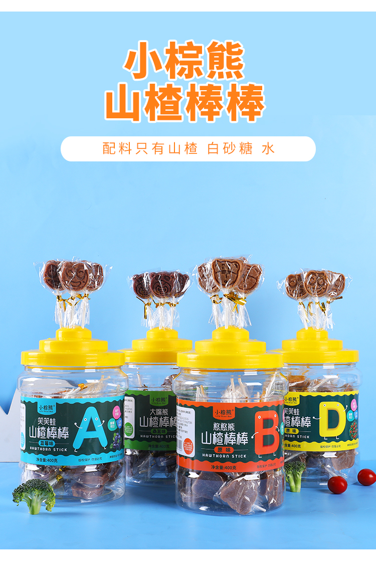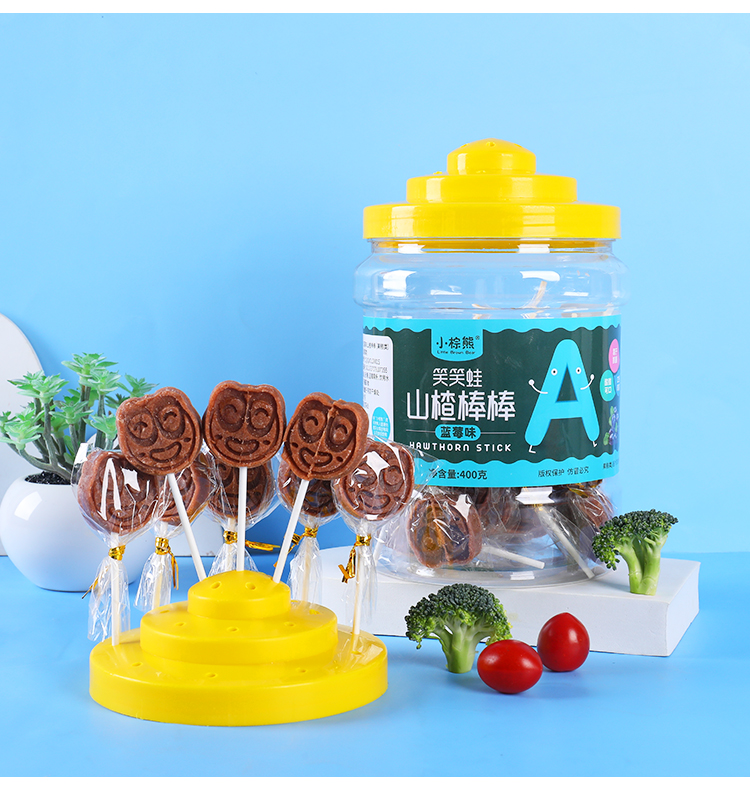 商品名称:香港小棕熊大桶装山楂棒棒 笑笑蛙 憨憨熊 400g可外插零食山楂棒棒糖