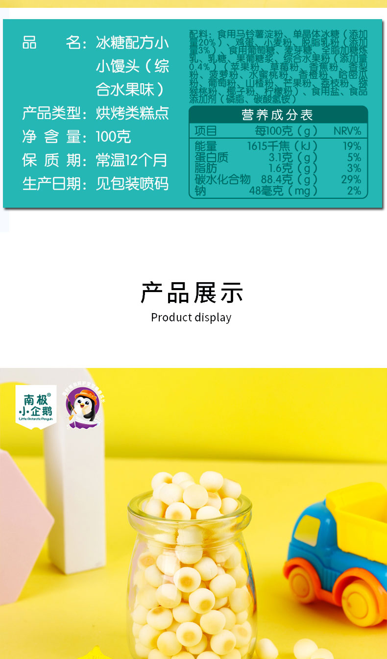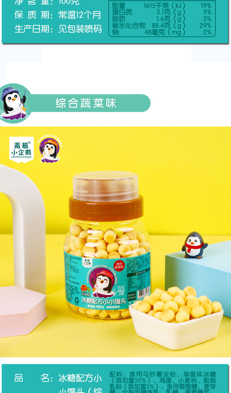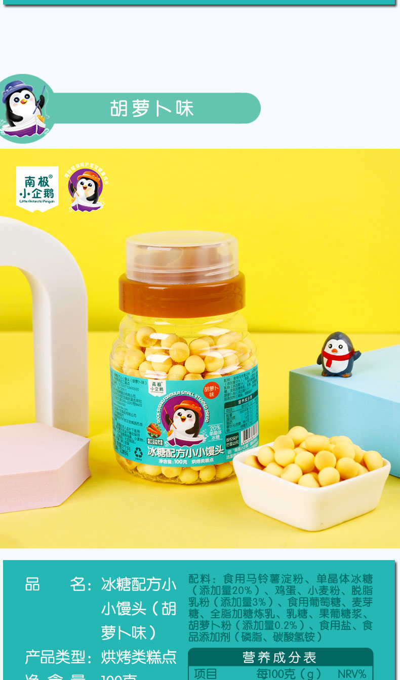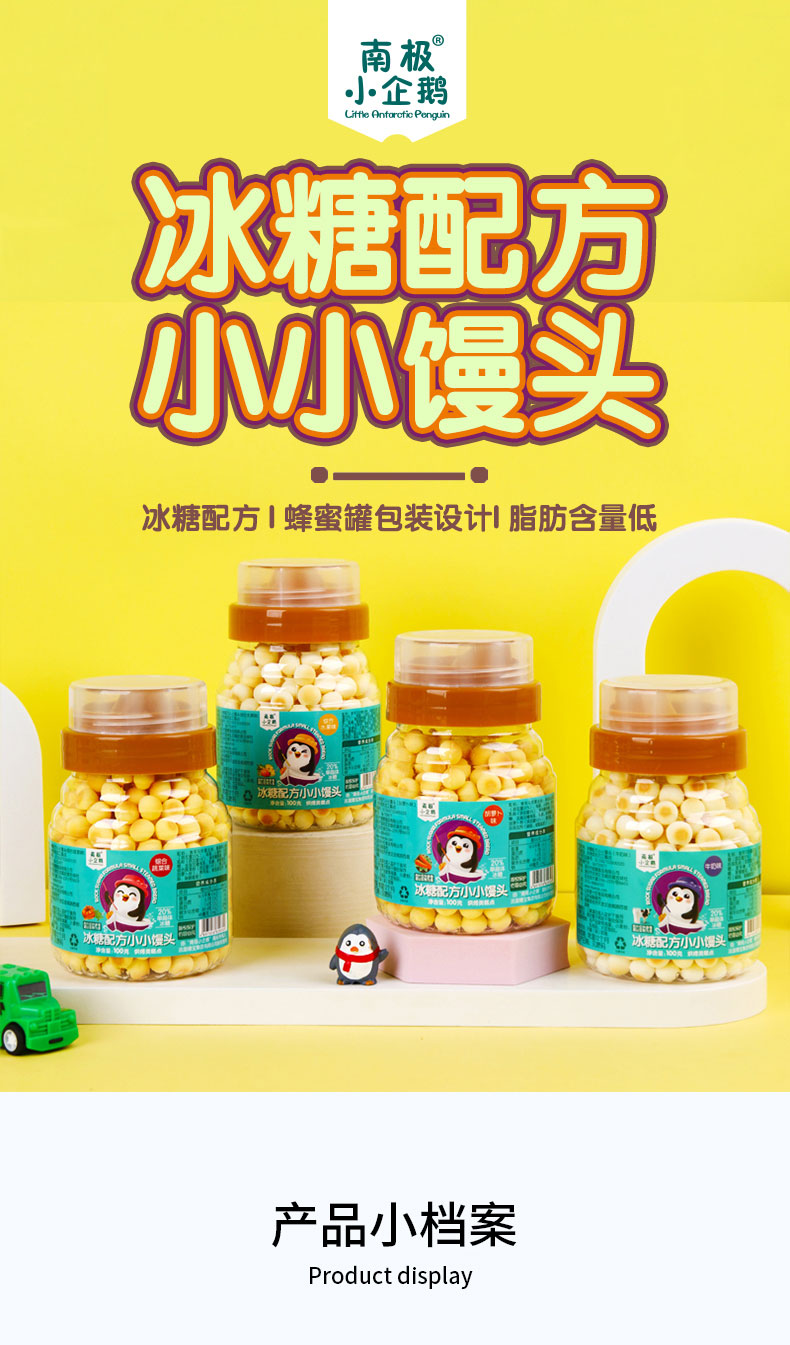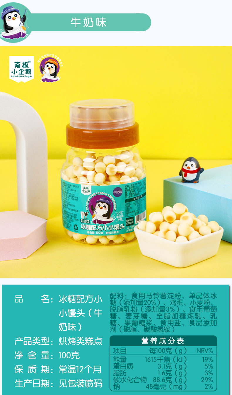 商品名称:南极小企鹅 小馒头 小蛋酥 蜂蜜罐100g装4味可选 零食小馒头奶豆