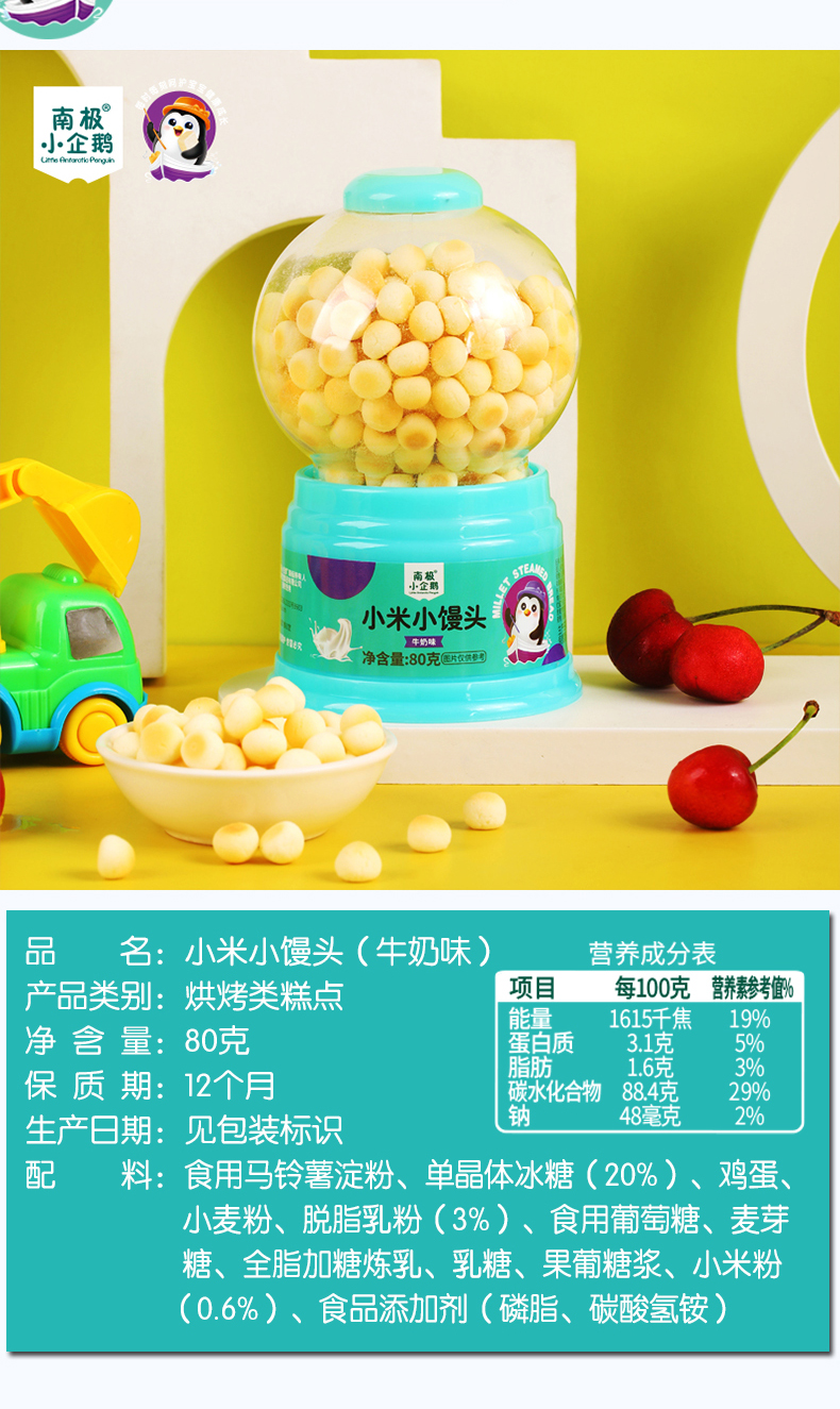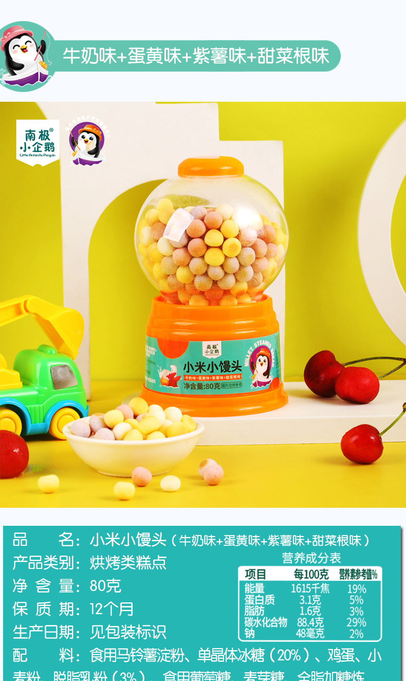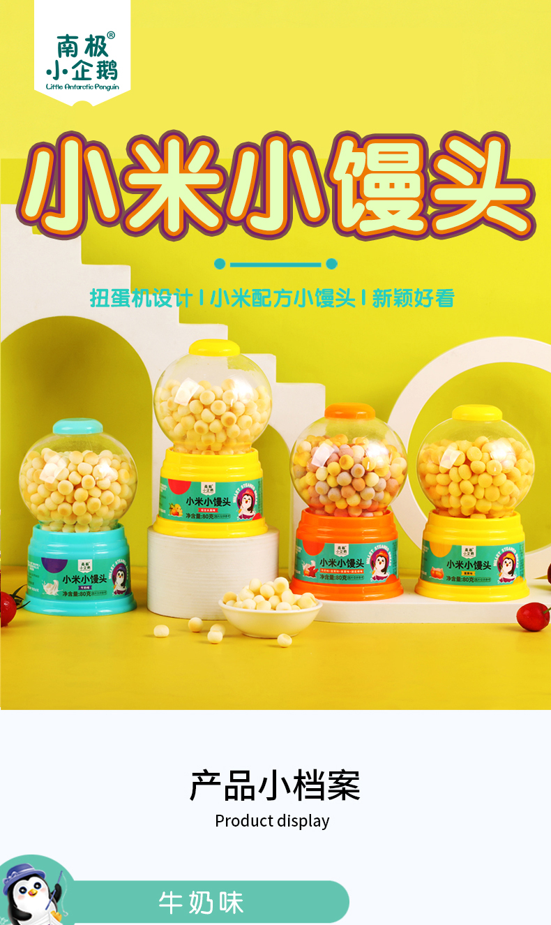 商品名称:南极小企鹅 扭蛋机小米小馒头 80g罐装 多口味可选 小馒头小蛋酥 多口味可选
