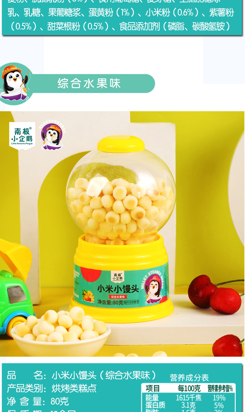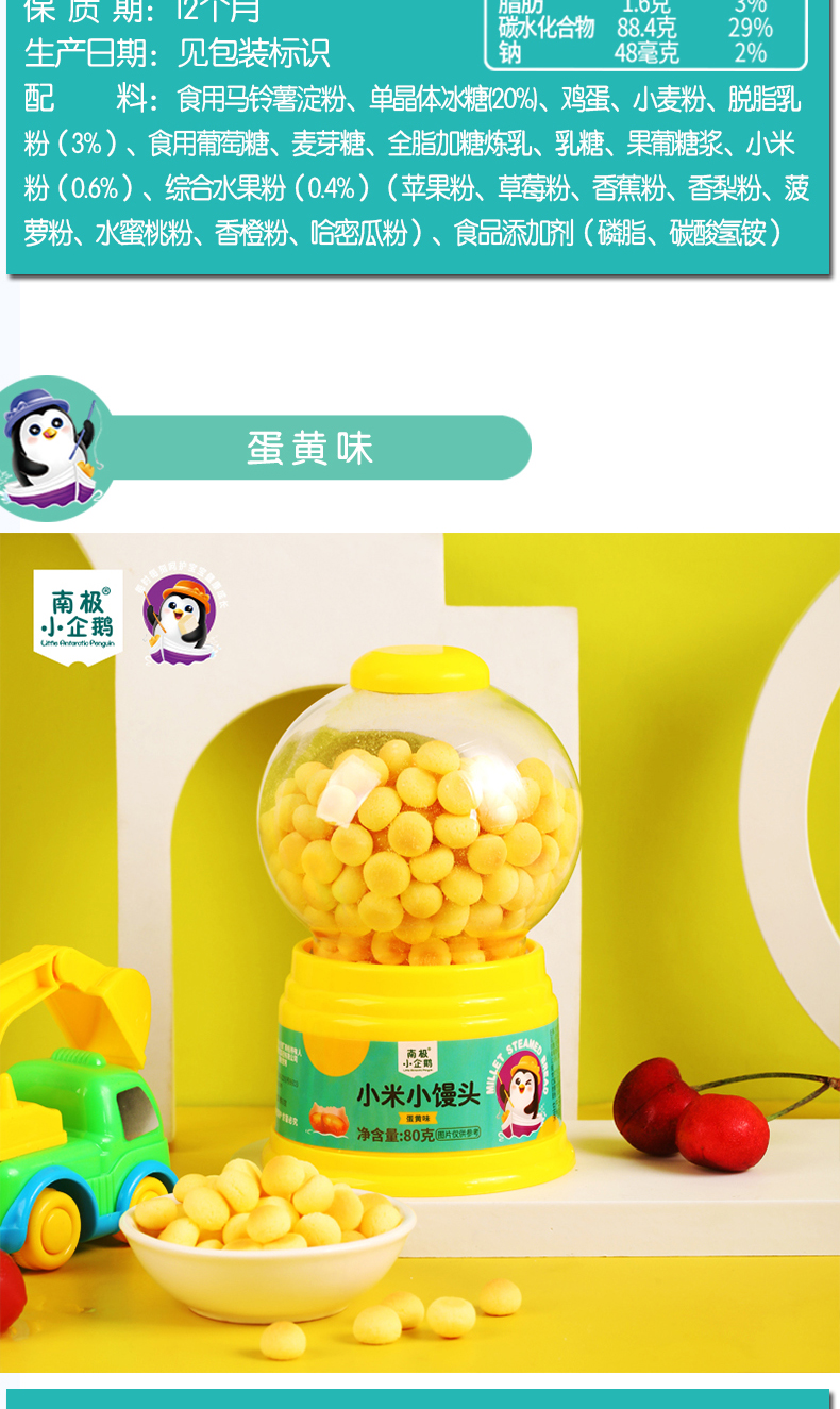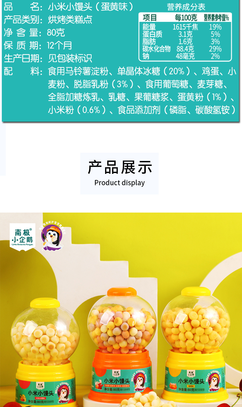 商品名称:南极小企鹅 扭蛋机小米小馒头 80g罐装 多口味可选 小馒头小蛋酥 多口味可选