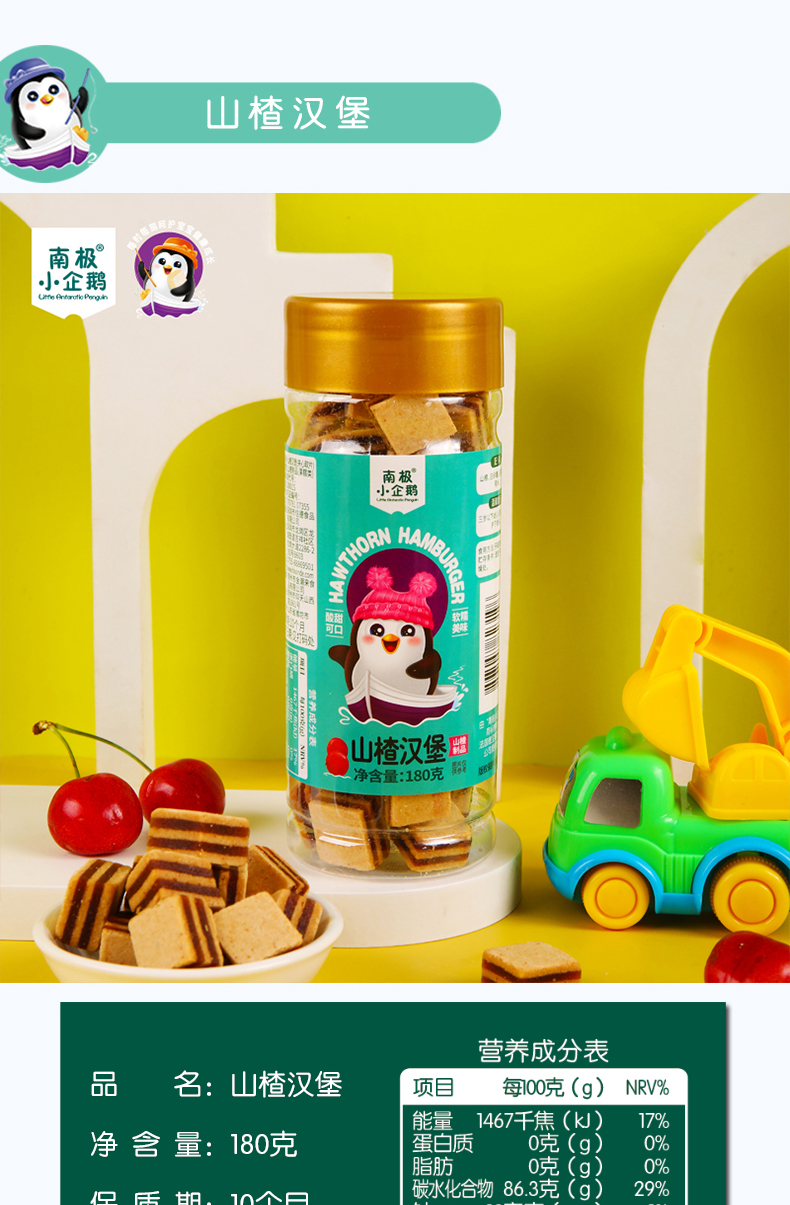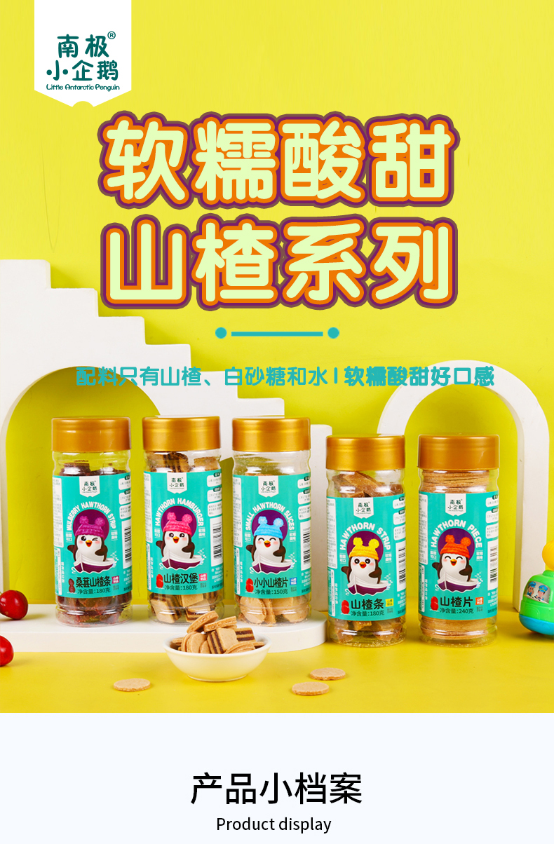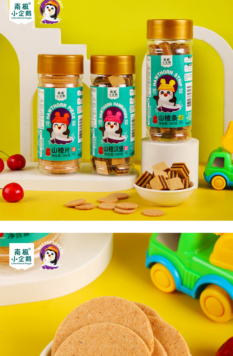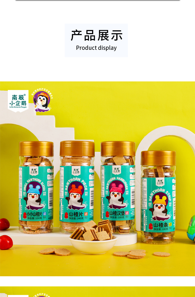 商品名称:南极小企鹅高罐金装山楂 5种形状可选 山楂片 山楂条 山楂汉堡 儿童零食 无添加