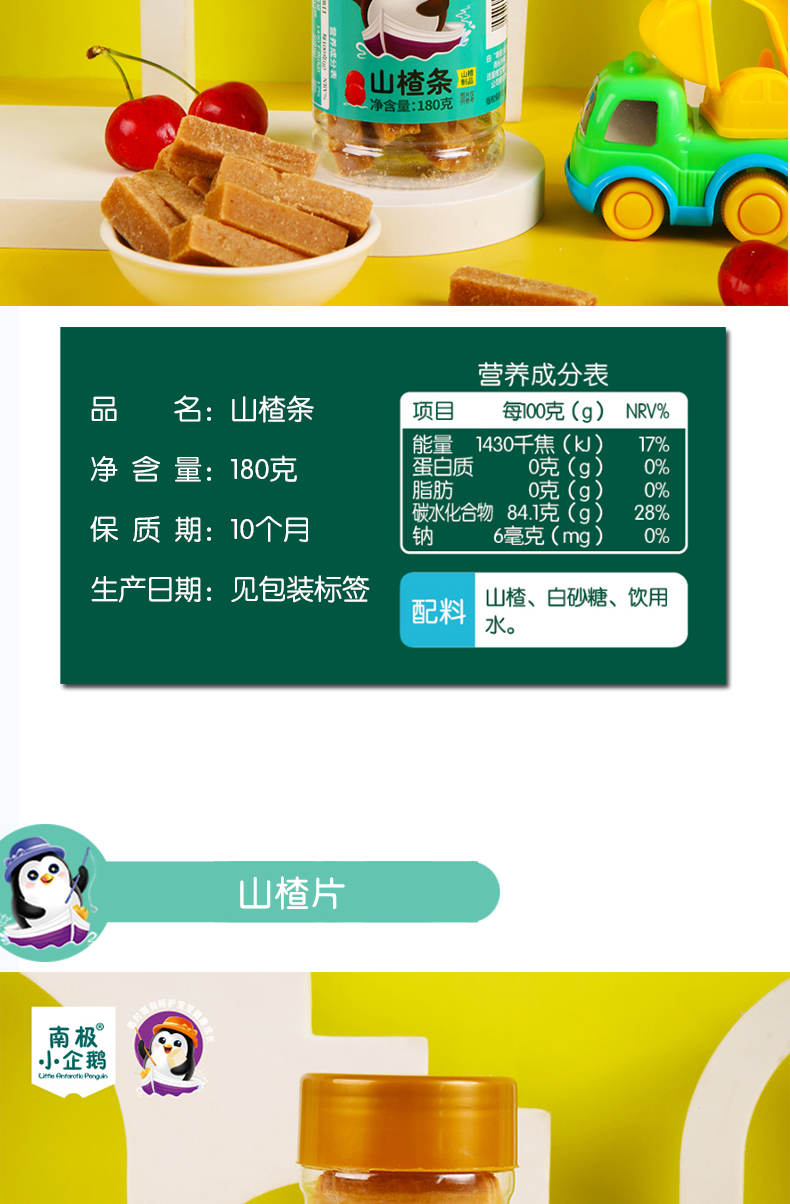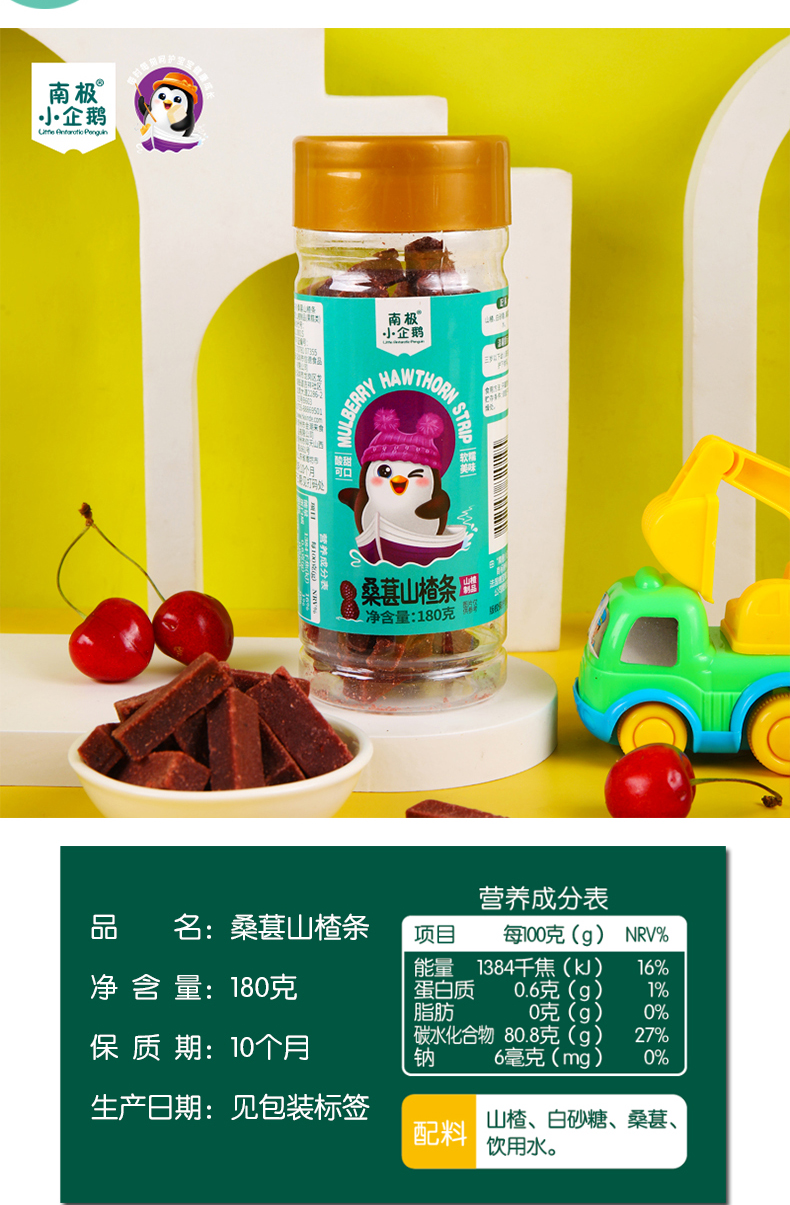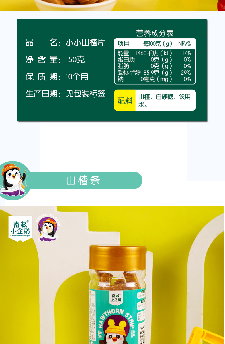 商品名称:南极小企鹅高罐金装山楂 5种形状可选 山楂片 山楂条 山楂汉堡 儿童零食 无添加