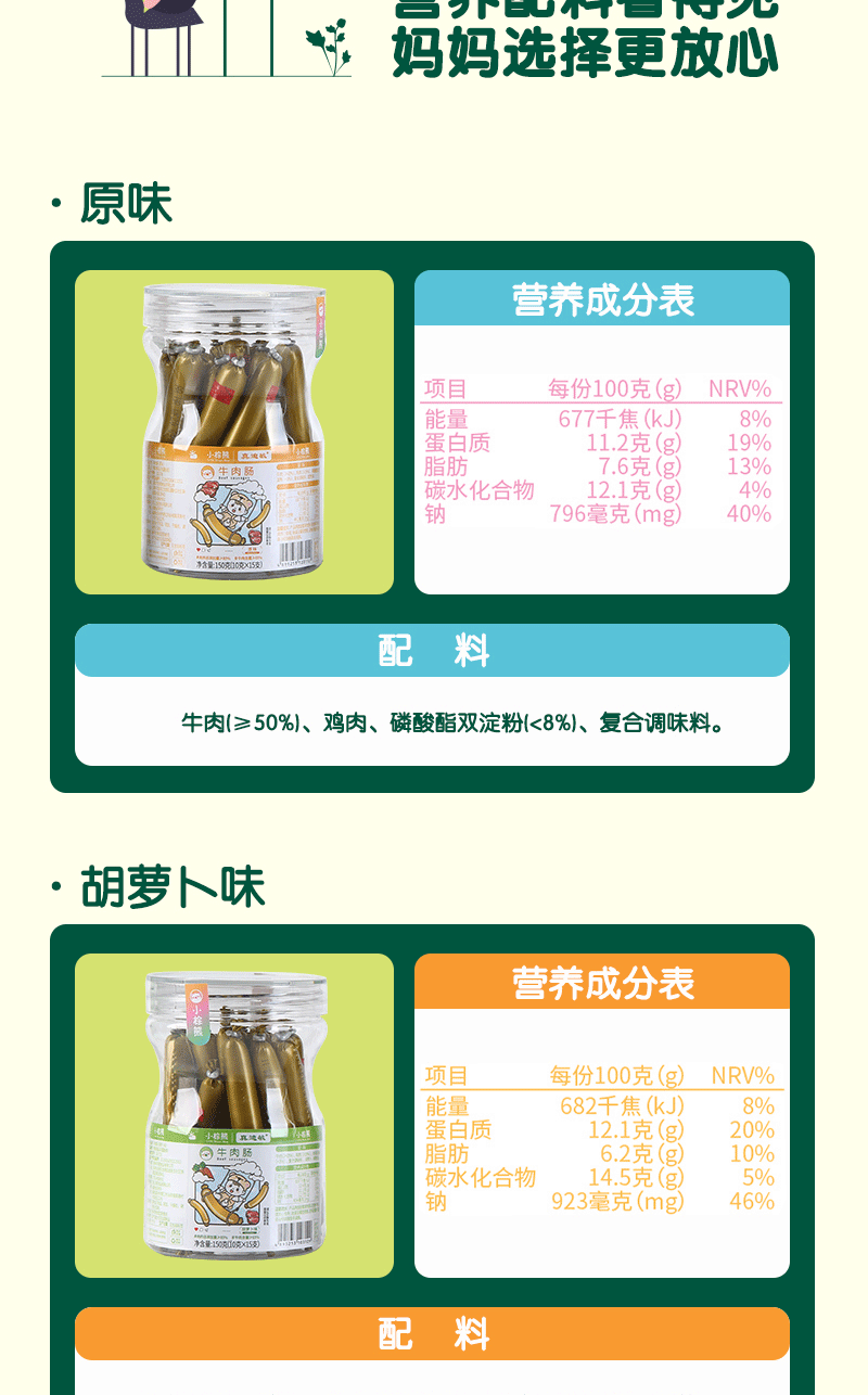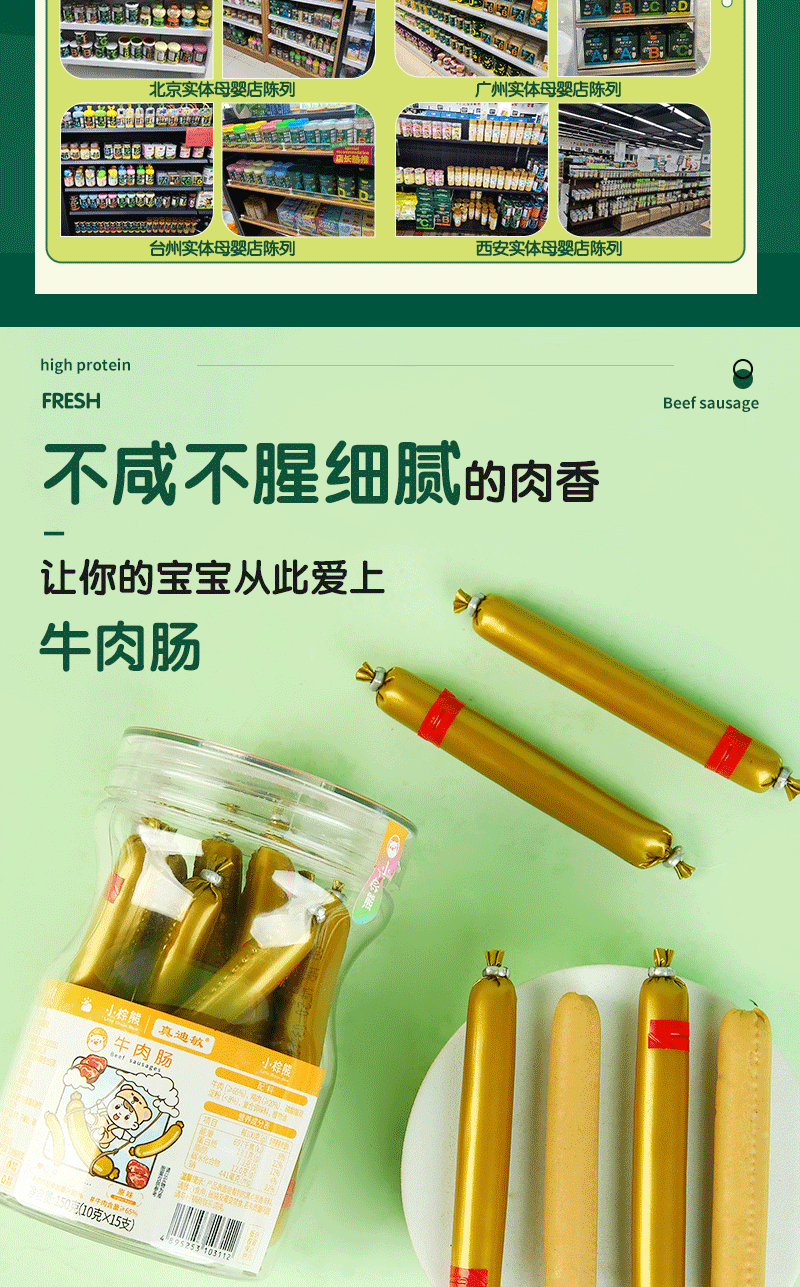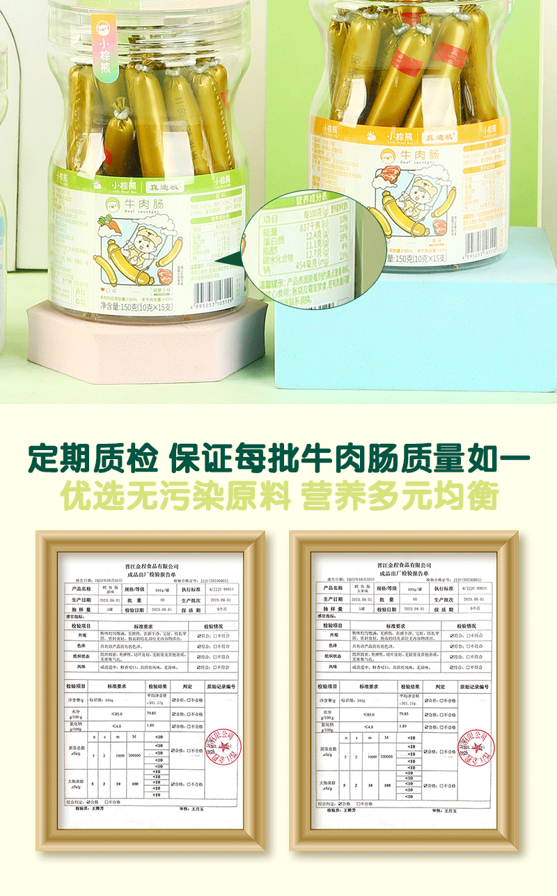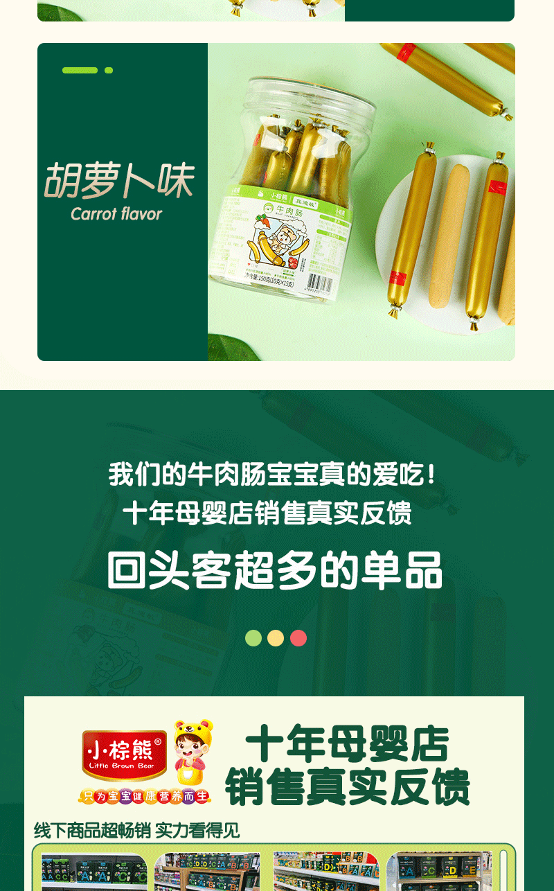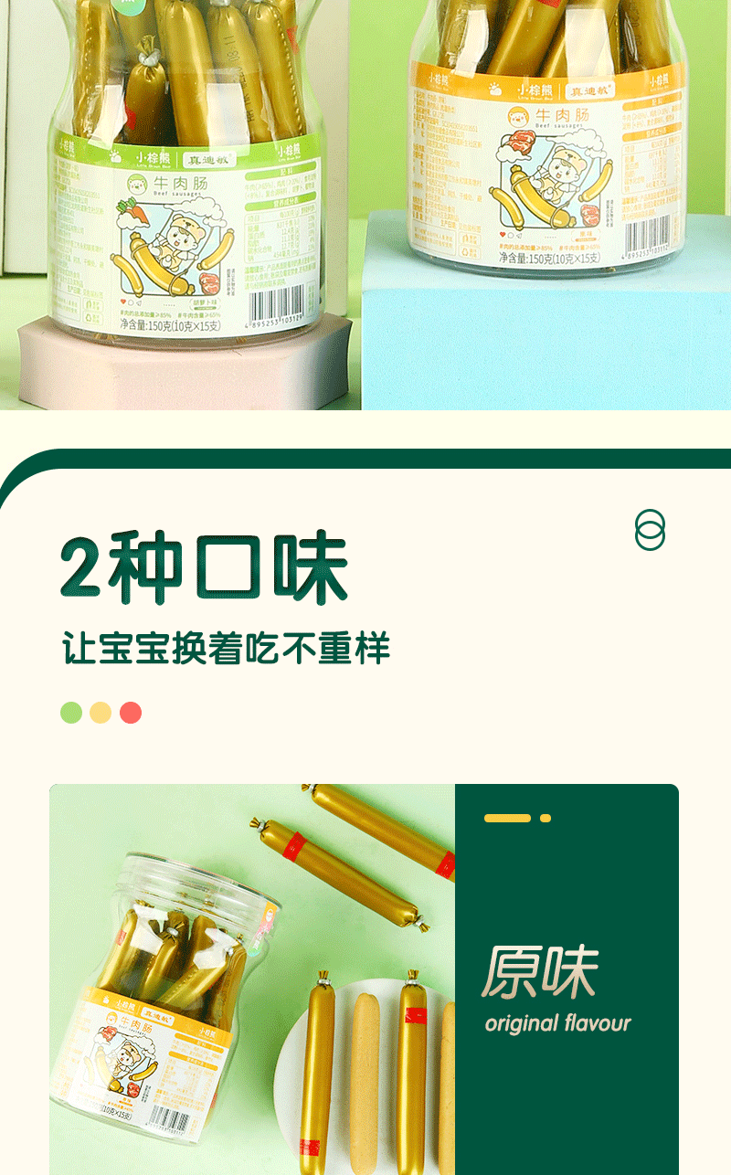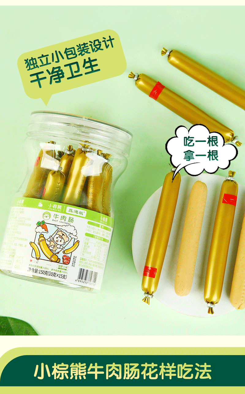 商品名称:香港小棕熊牛肉肠 牛肉棒 原味 胡萝卜味 150g罐装 10g*15根 儿童休闲零食 营养美味