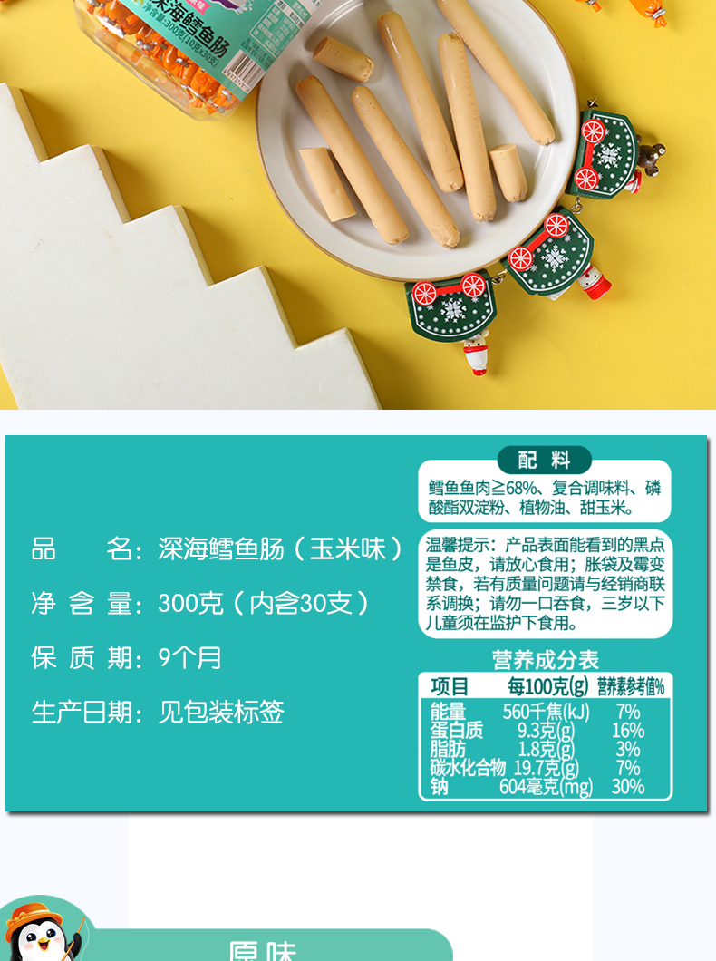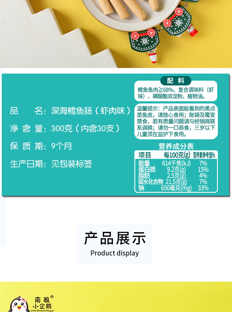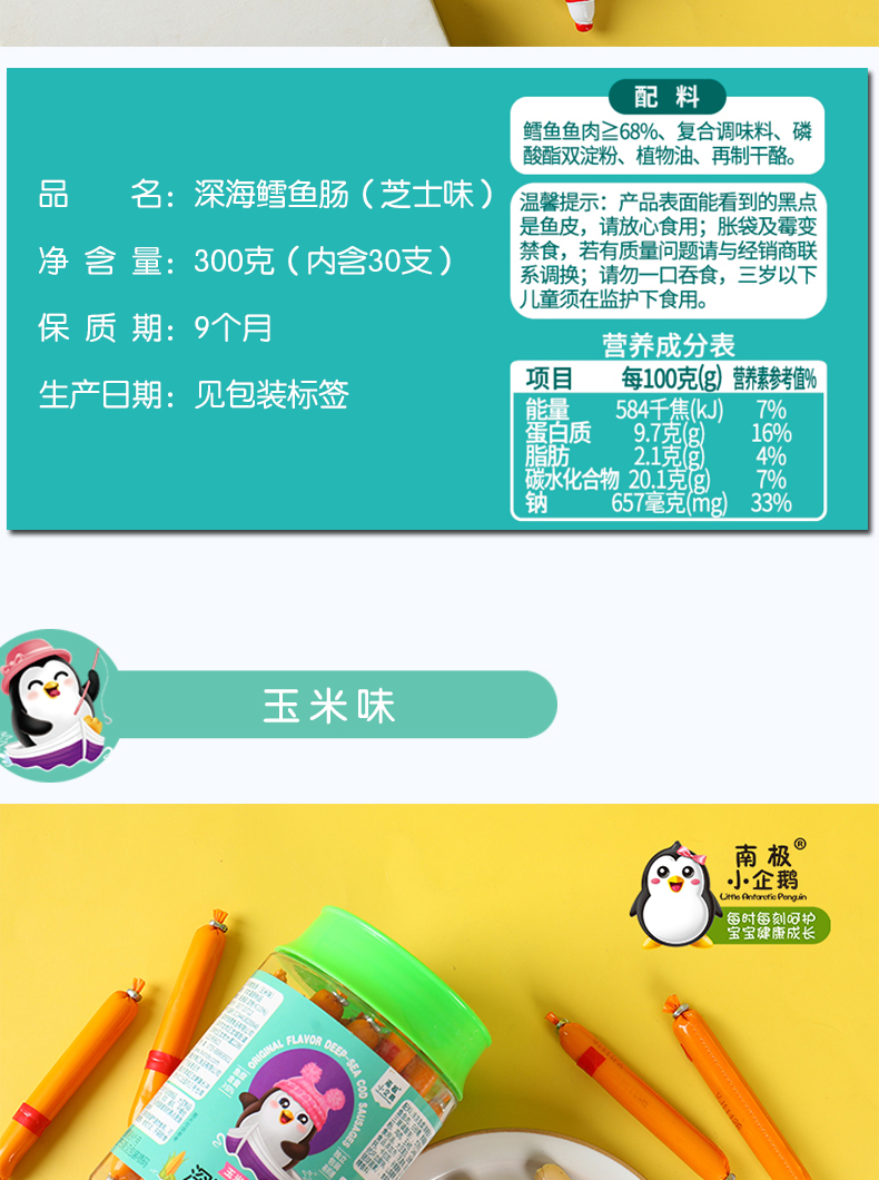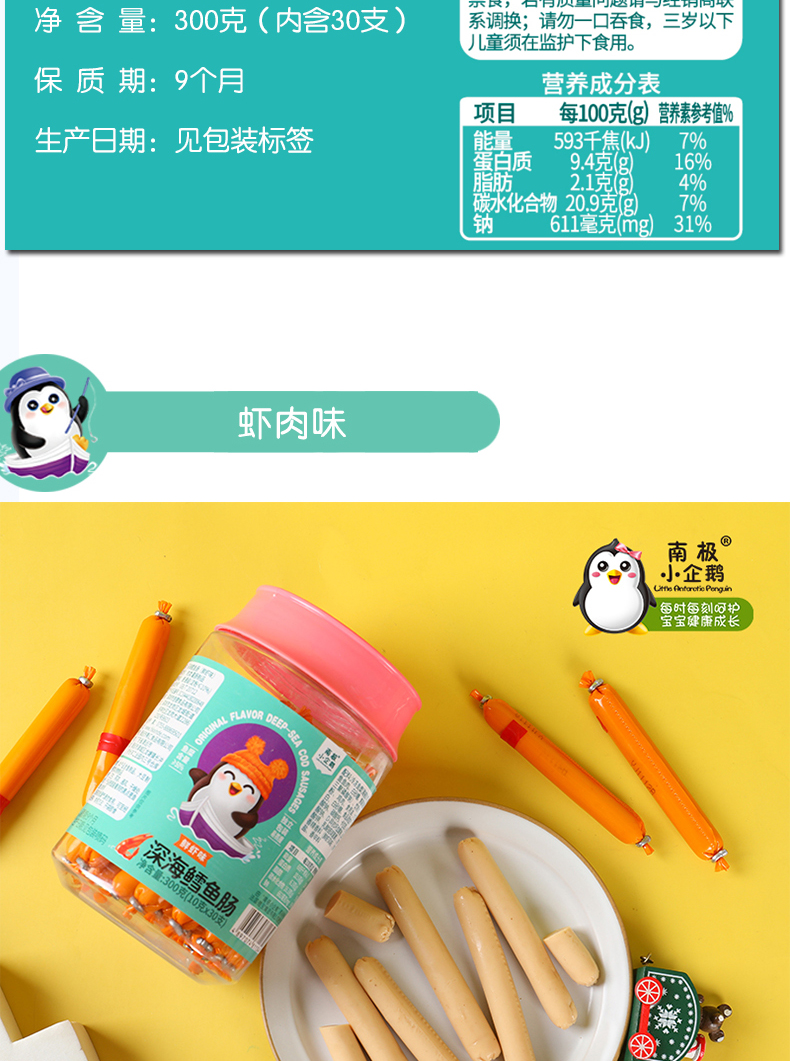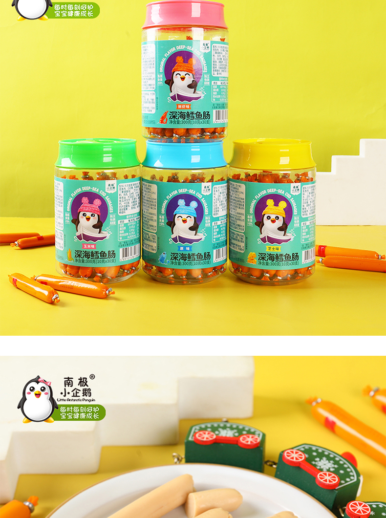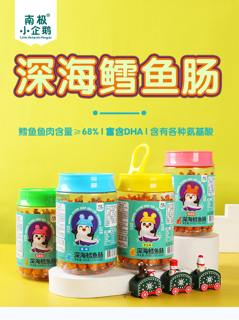 商品名称:南极小企鹅Little Antarctic Penguin 深海鳕鱼肠300克 4味可选 10克×30支鳕鱼肠