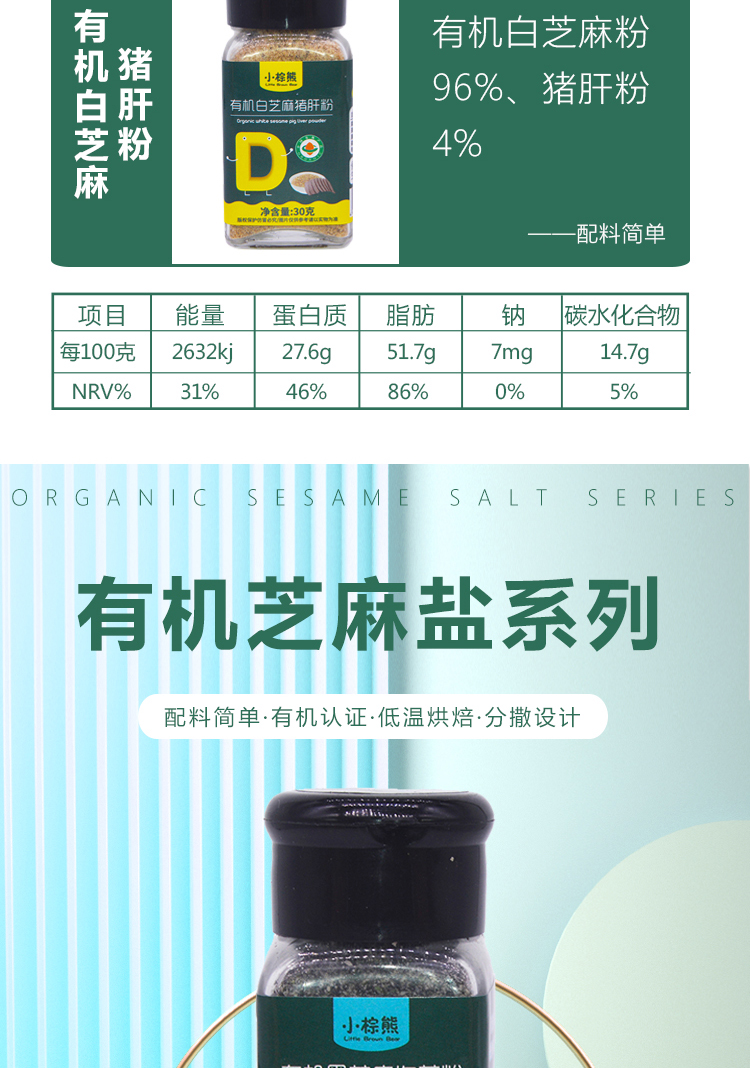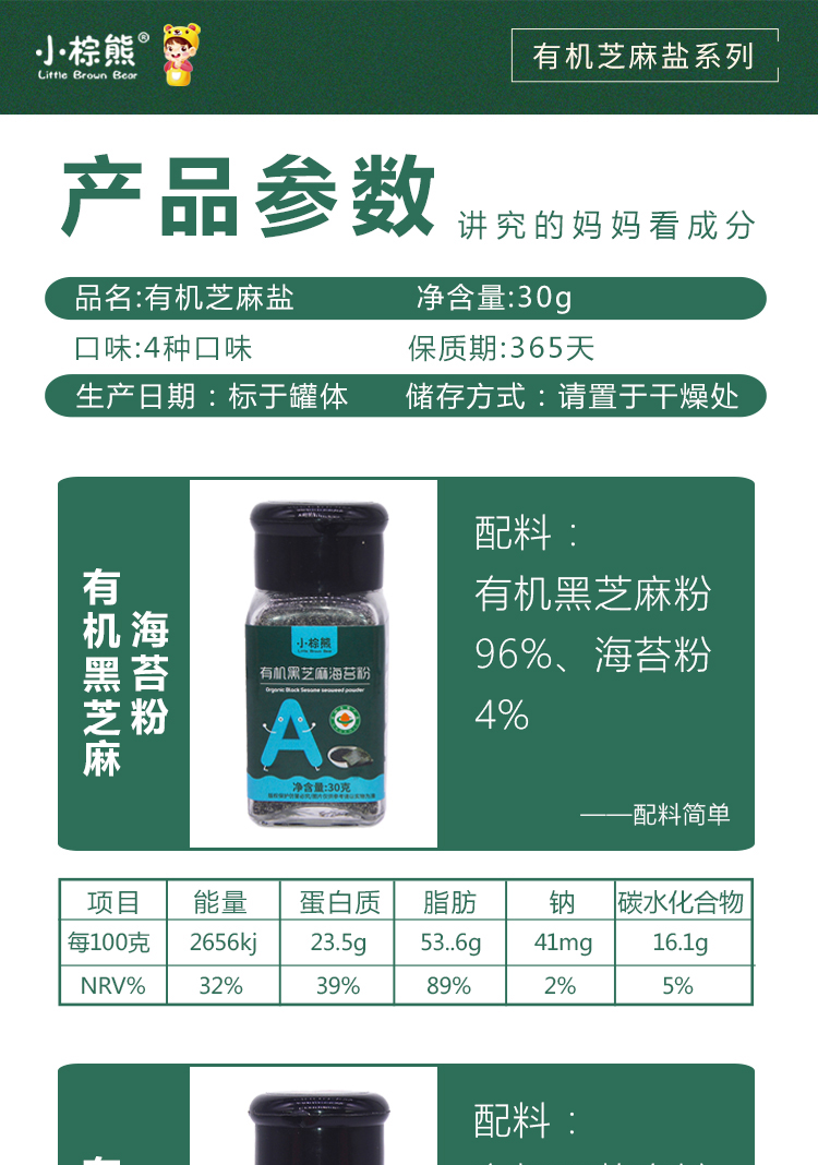 商品名称:香港小棕熊Little Brown Bear 儿童调味料 有机芝麻盐30g装调味品拌饭料