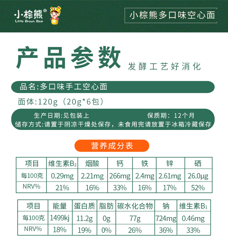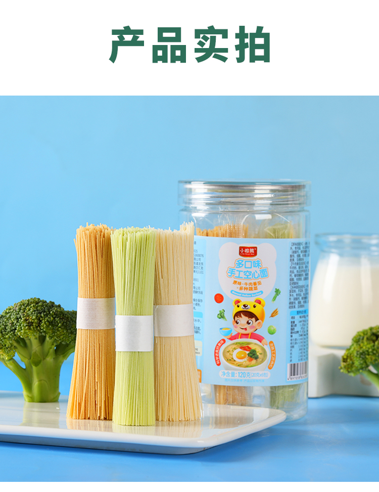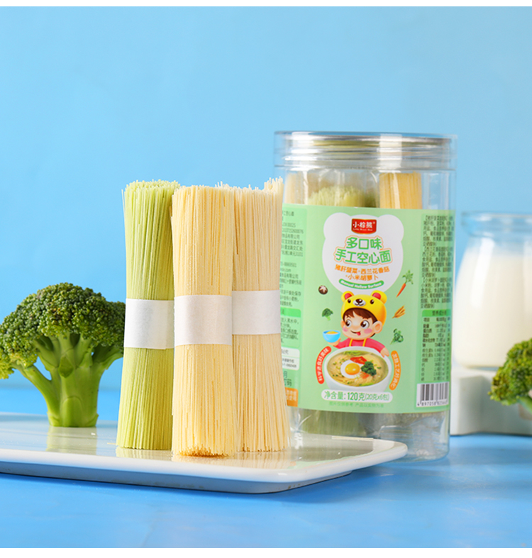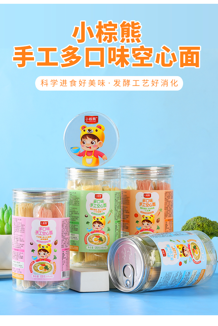 商品名称:香港小棕熊罐装发酵空心面120g装 6小包分装儿童辅食碎面面条颗粒面碎面营养面
