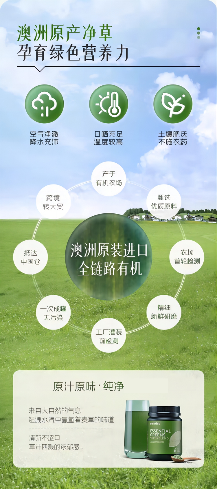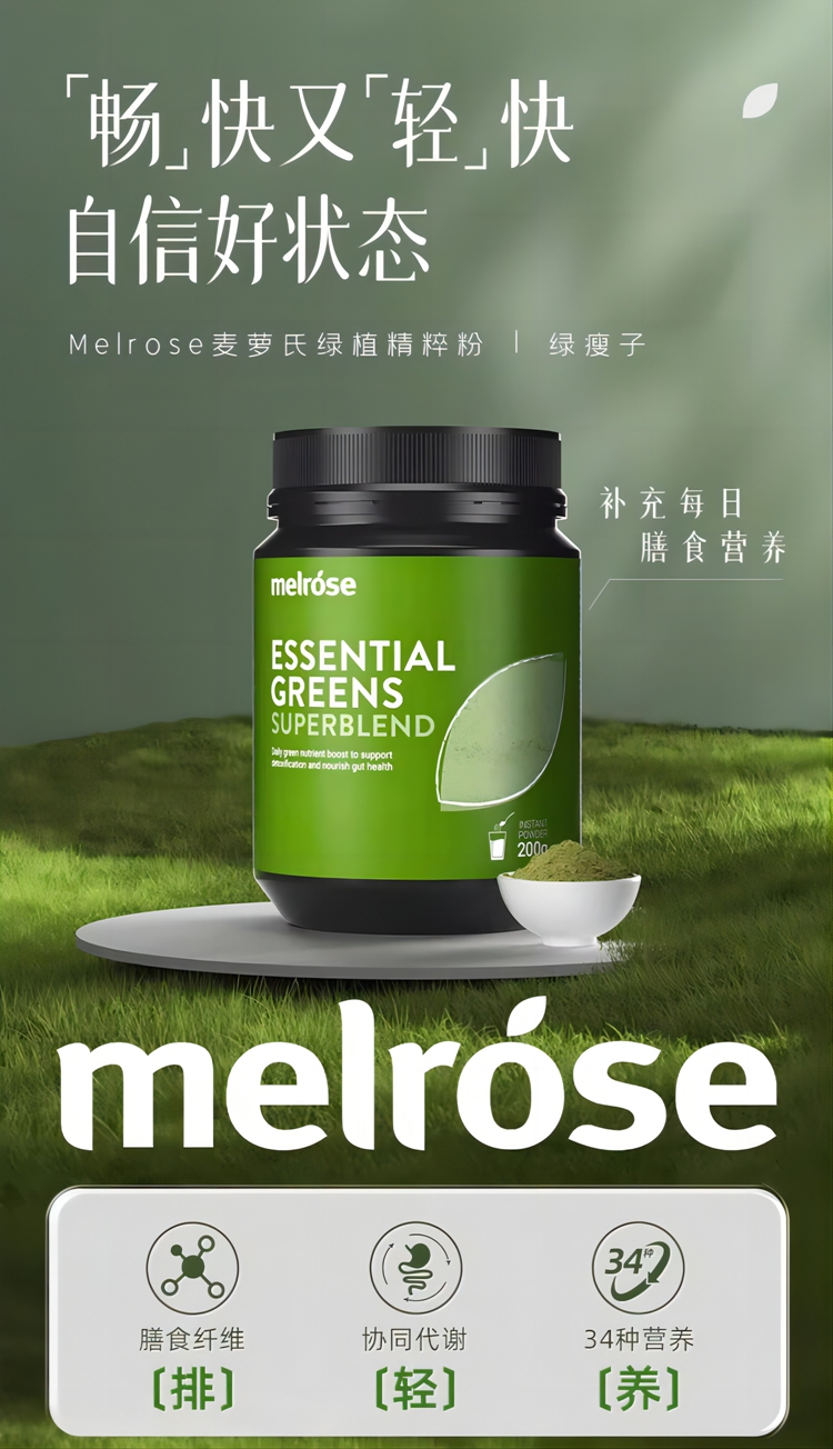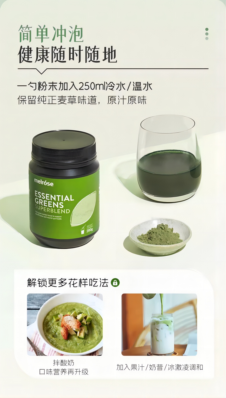 麦萝氏melrose膳食纤维粉大麦若叶青汁澳洲绿瘦子200g