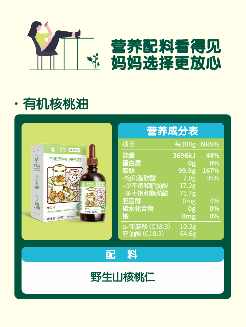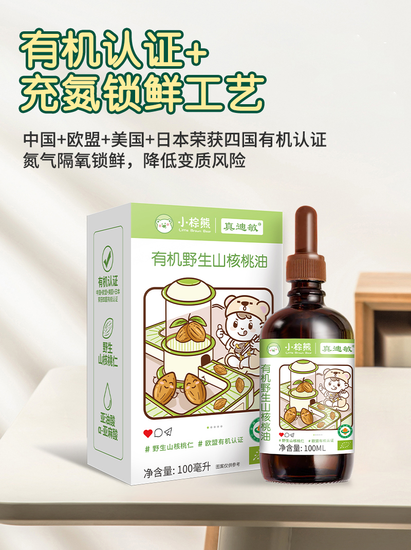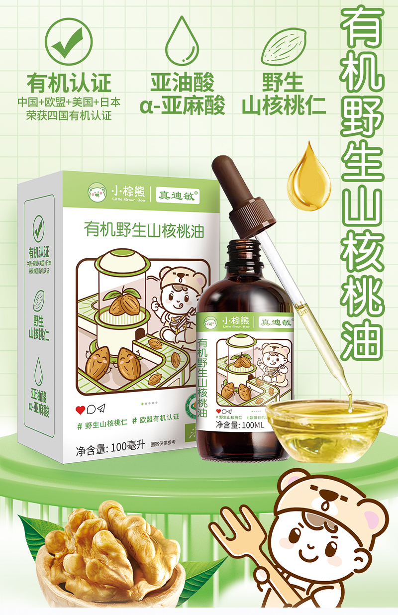 商品名称:香港小棕熊滴管装有机野生山核桃油100毫升辅食拌饭儿童辅食油核桃油
