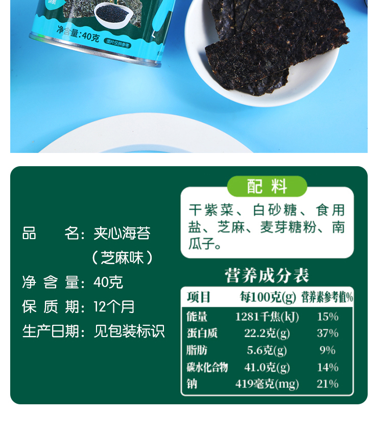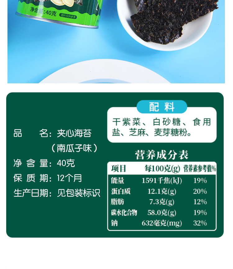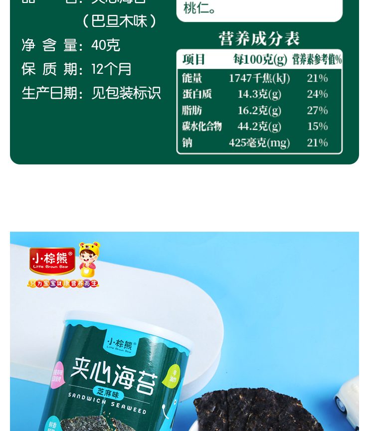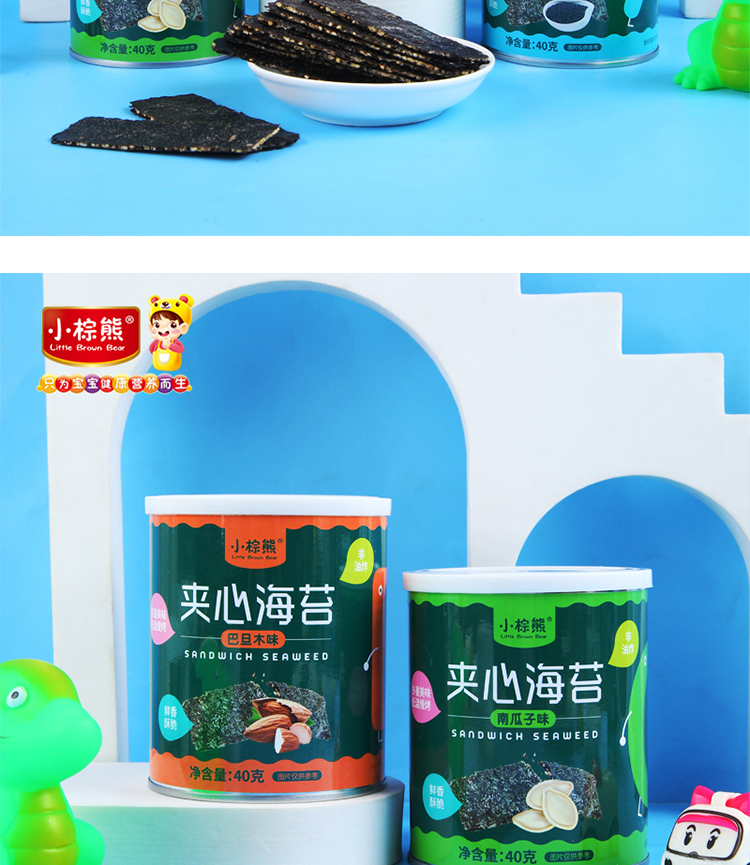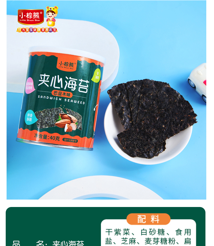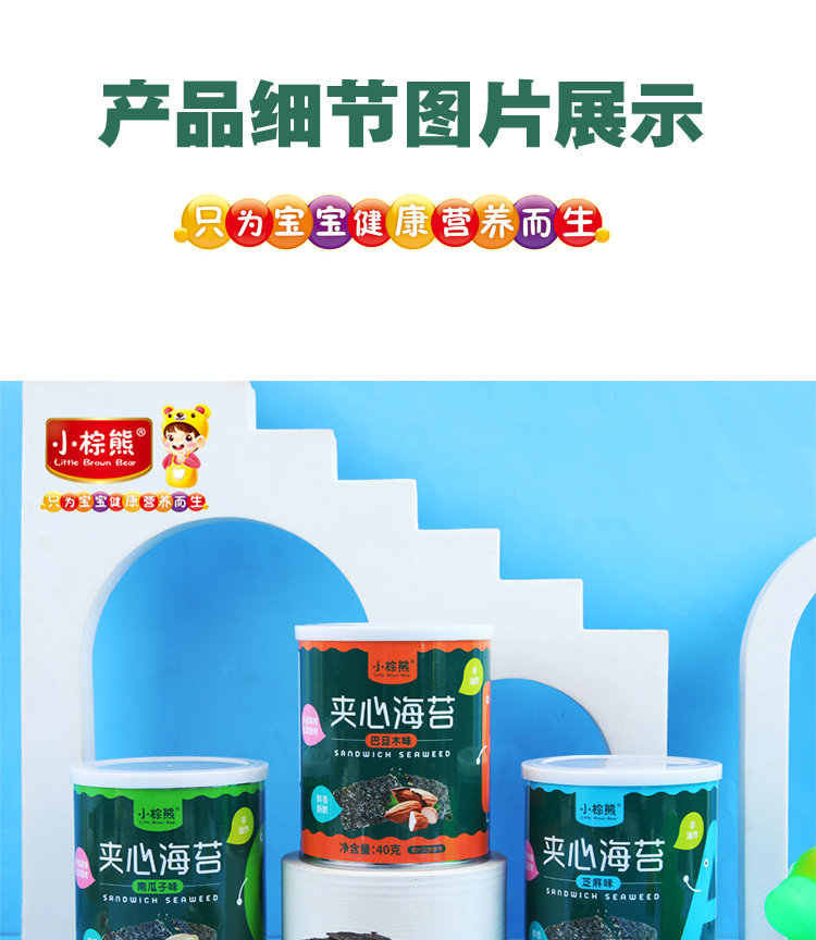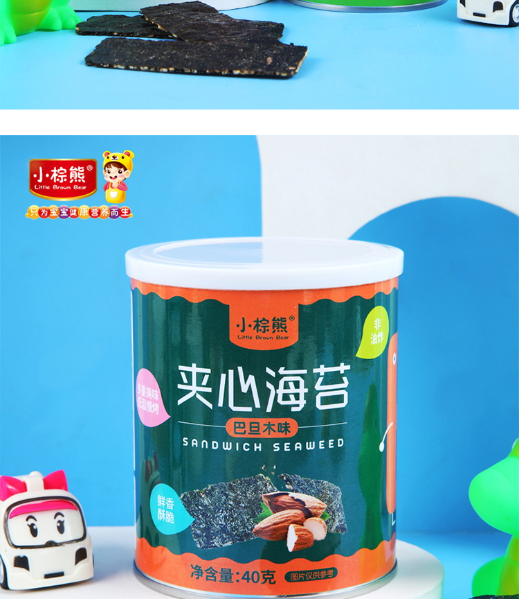 商品名称:香港小棕熊Little Brown Bear 夹心海苔 40g 3味可选海苔夹心海苔卷紫菜罐装零食