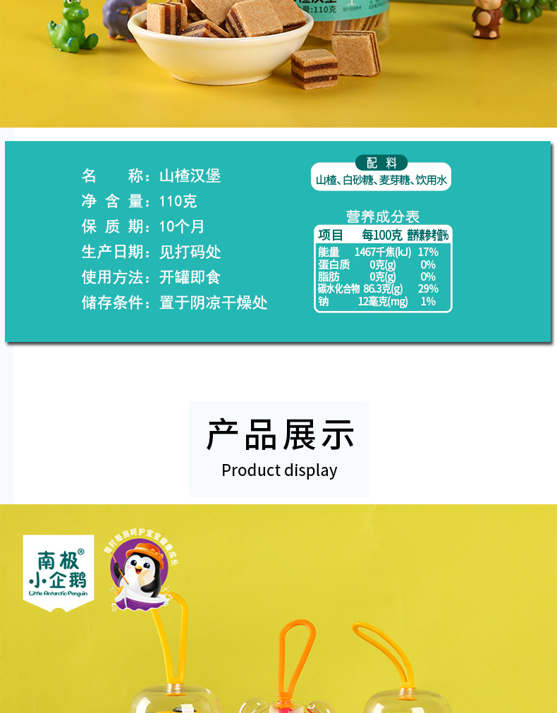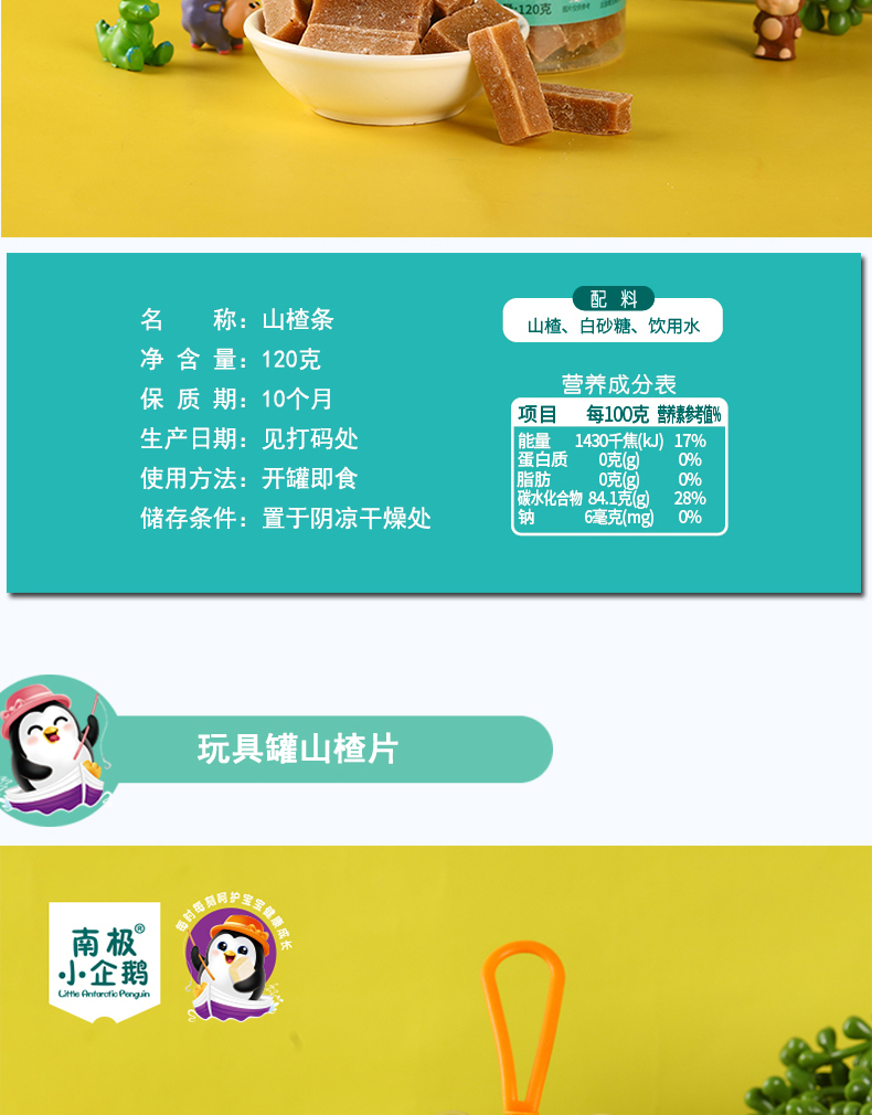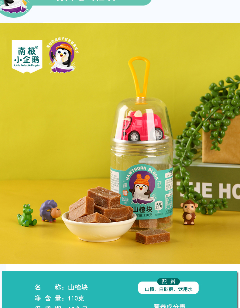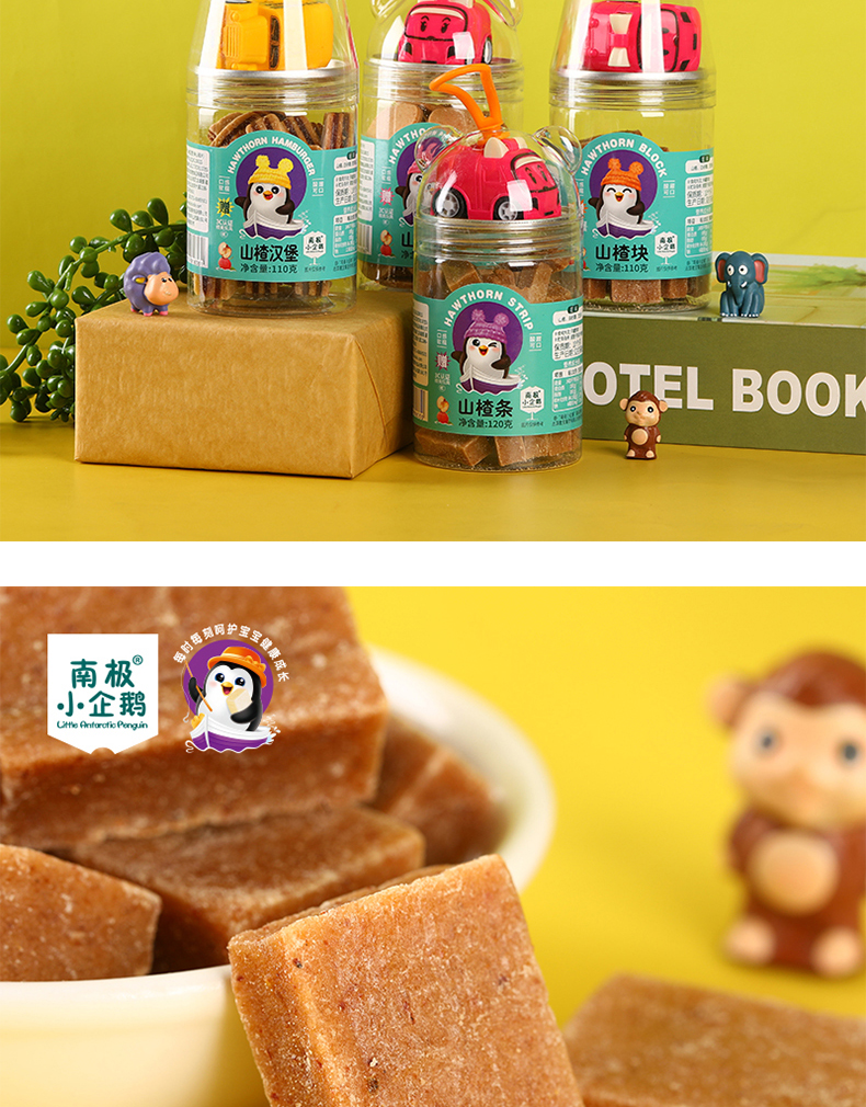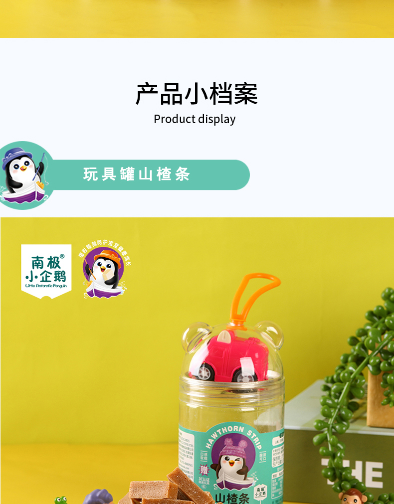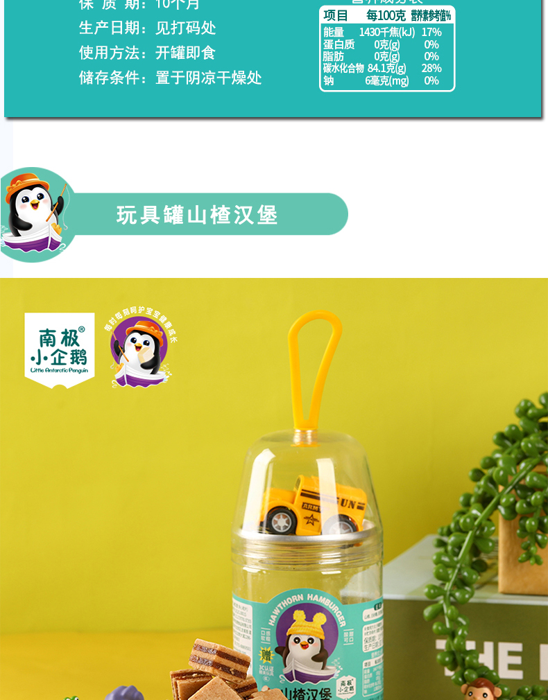商品名称:南极小企鹅Little Antarctic Penguin玩具罐山楂3形状可选条片汉堡送精美3C玩具儿童小零食山楂