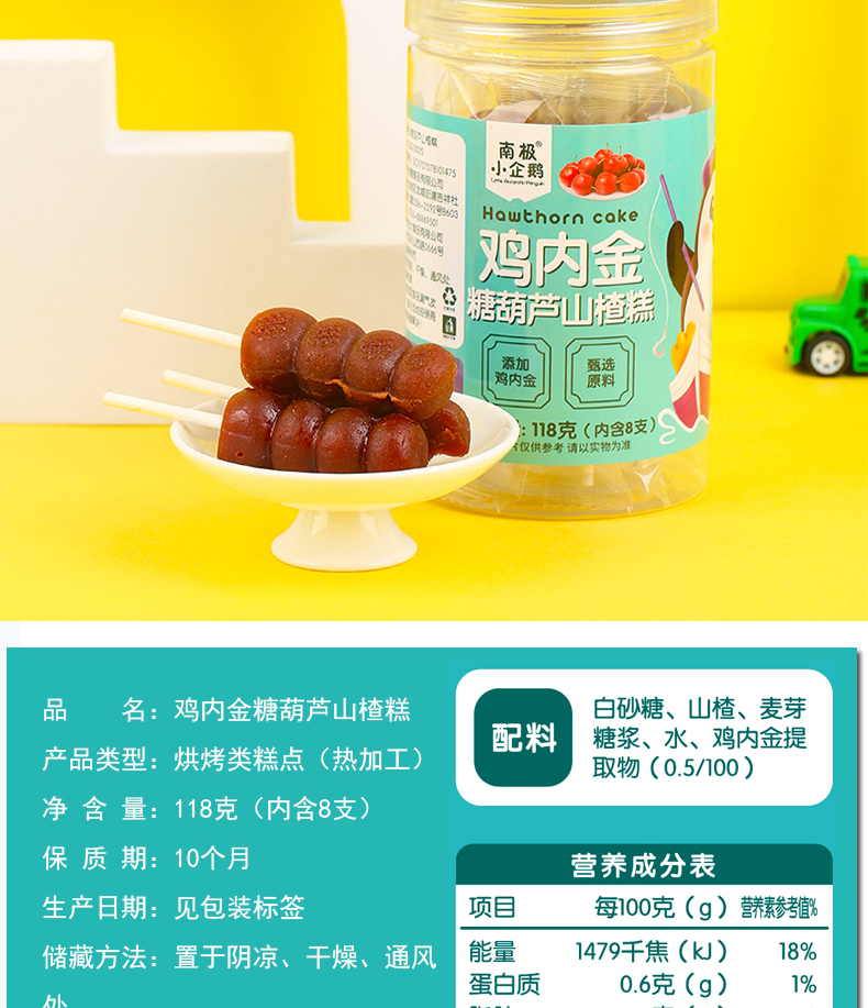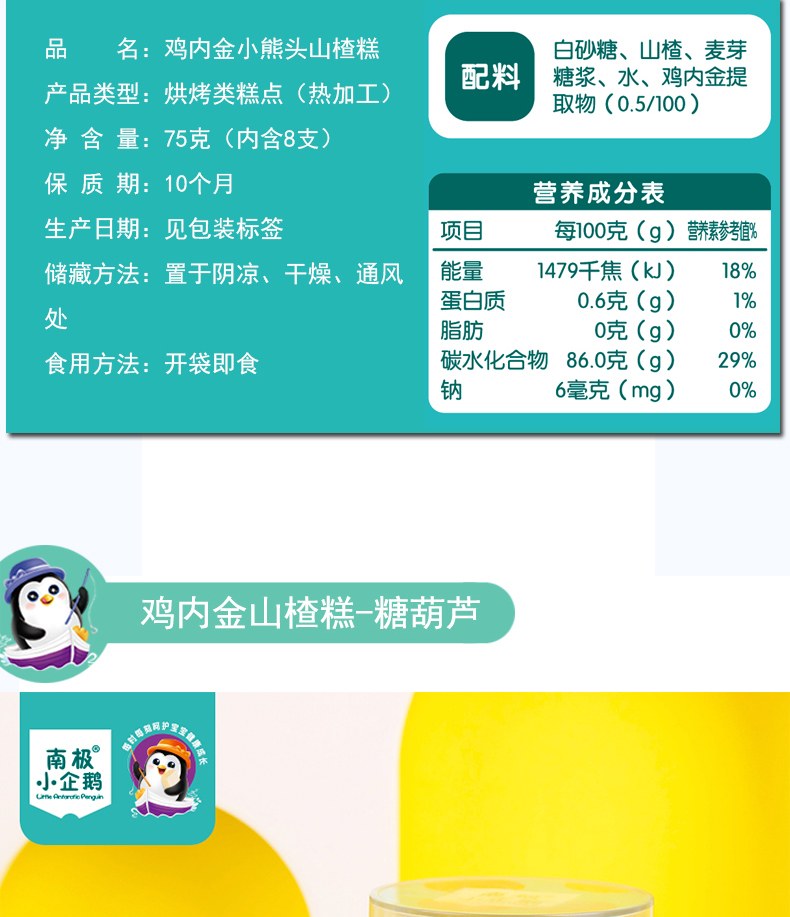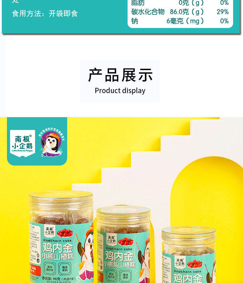 商品名称:南极小企鹅 酸甜软糯鸡内金山楂糕独立小包装无添加小零食山楂棒水果