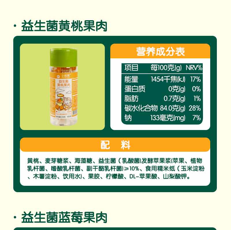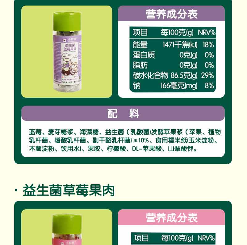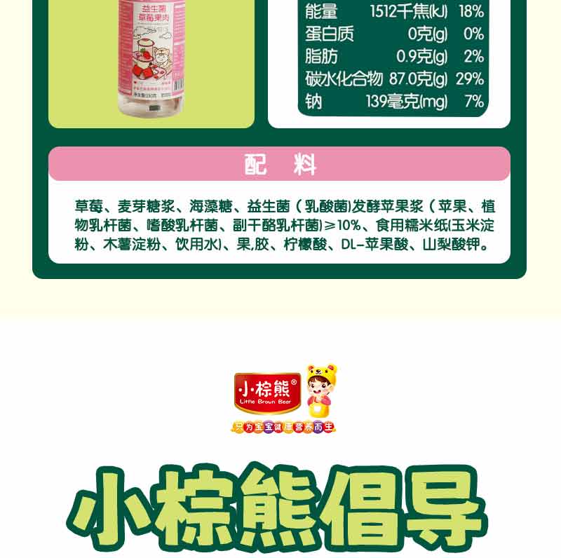 商品名称:小棕熊益生菌水果果肉150克/罐 三味可选儿童小零食无添加