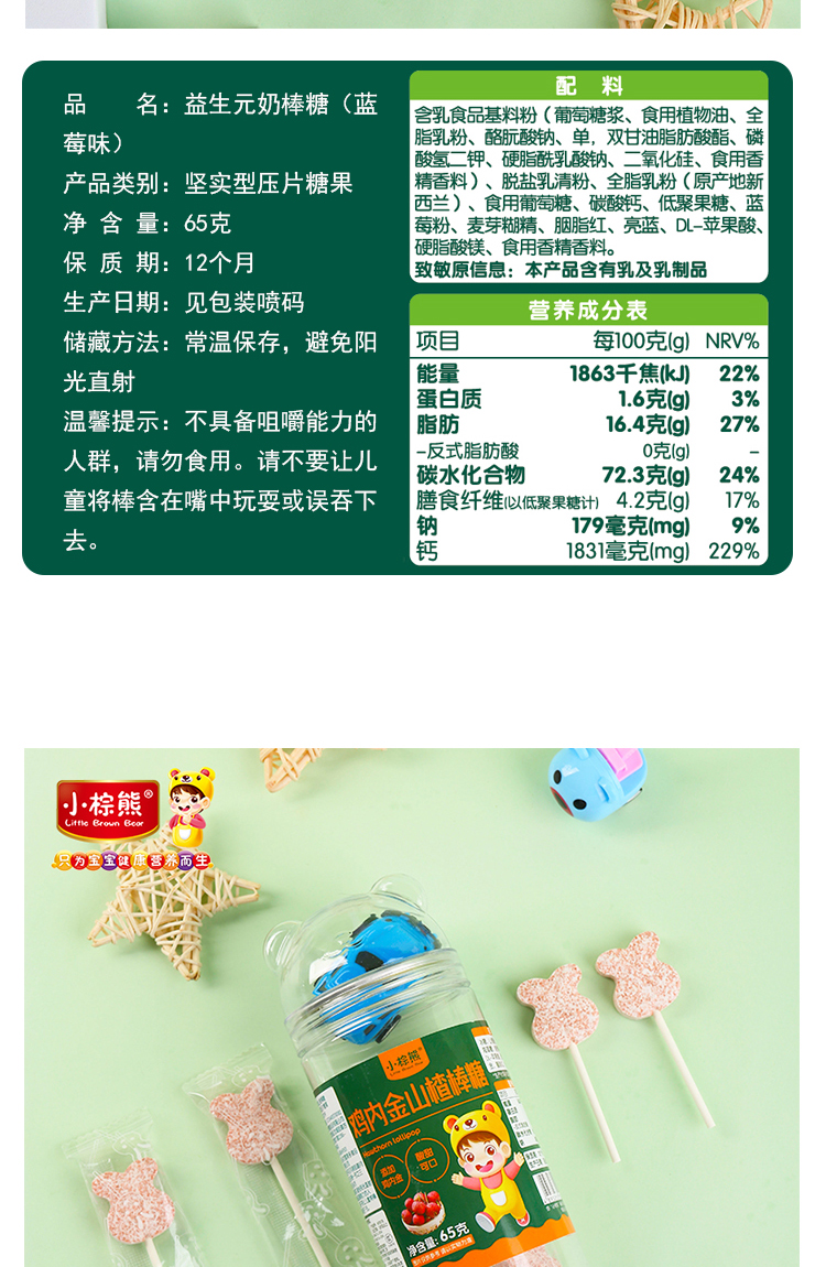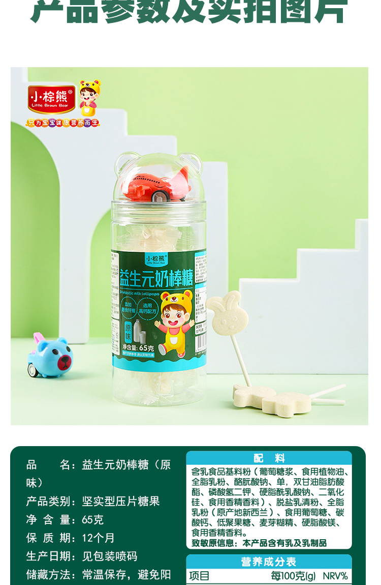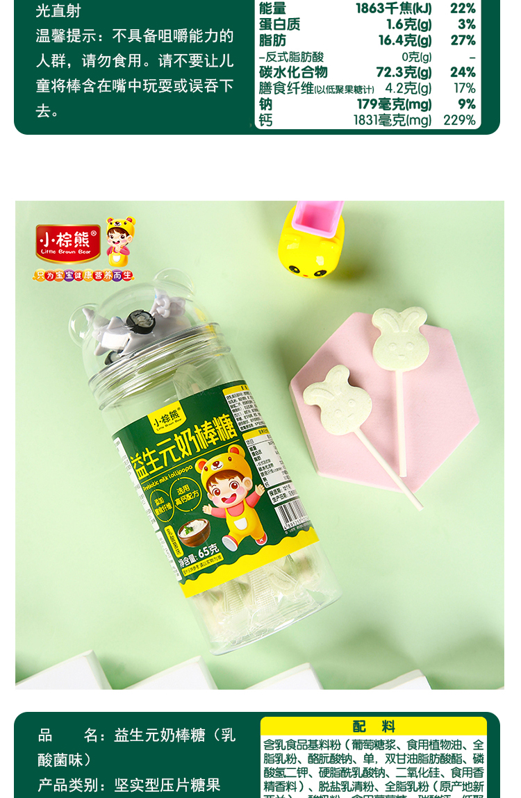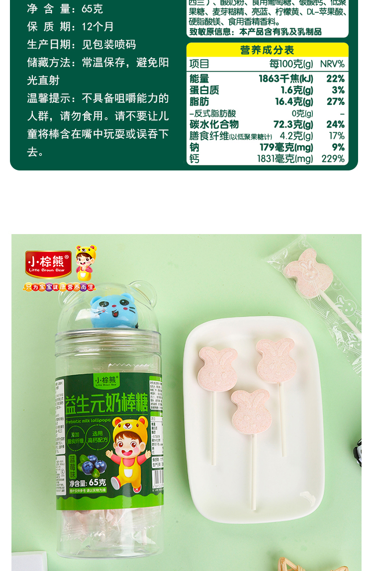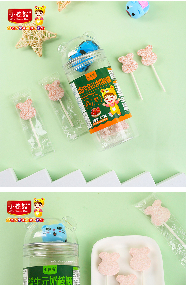商品名称:小棕熊 益生元兔子形奶棒棒糖 四味可以儿童零食糖果