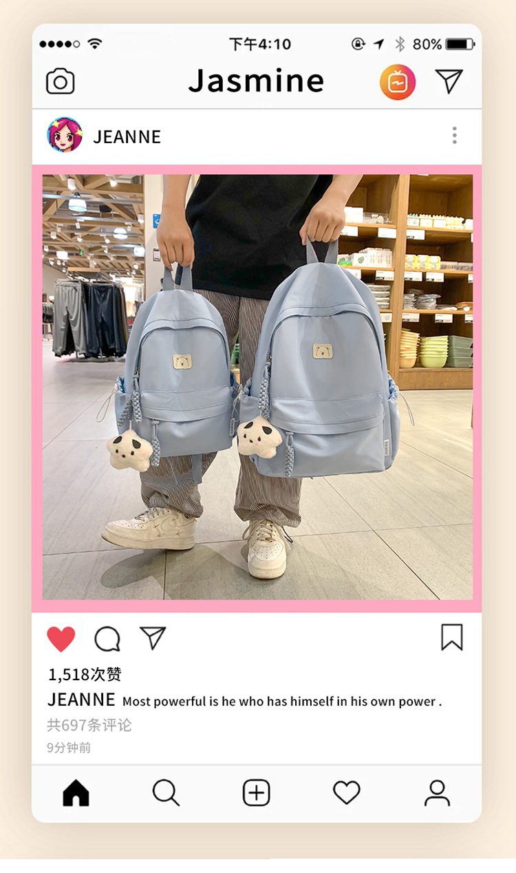 商品名称:彤彤兔 书包女韩版纯色小清新大学生背包校园ins风森系简约双肩包女旅行