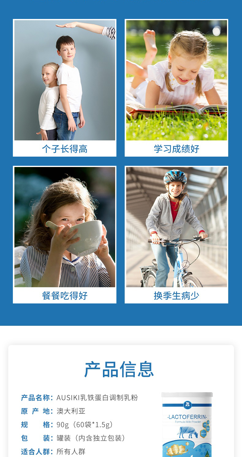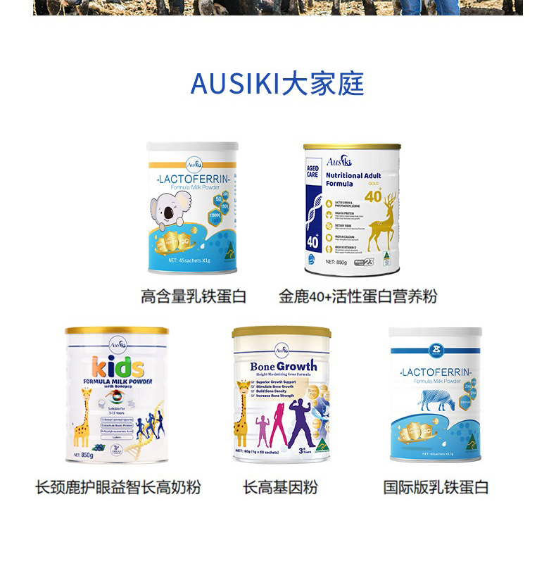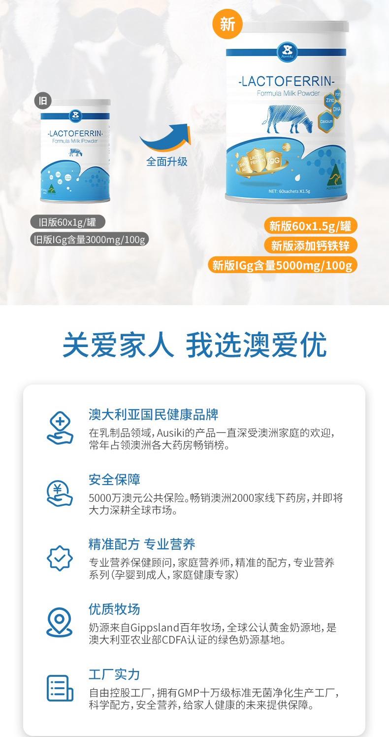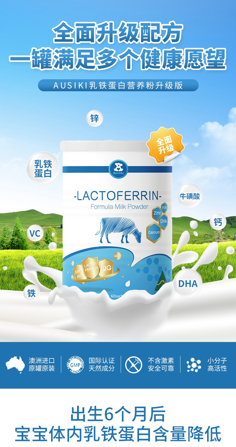 商品名称:澳爱优 Ausiki 小牛乳铁蛋白营养粉 1.5g*60袋补锌补铁