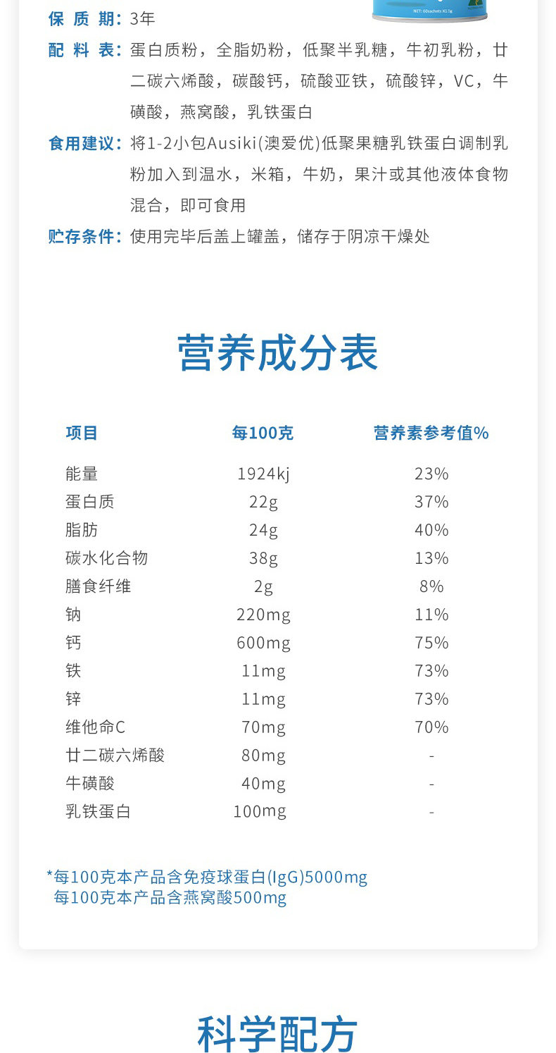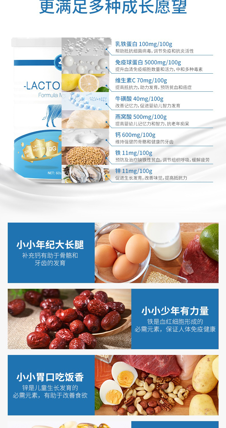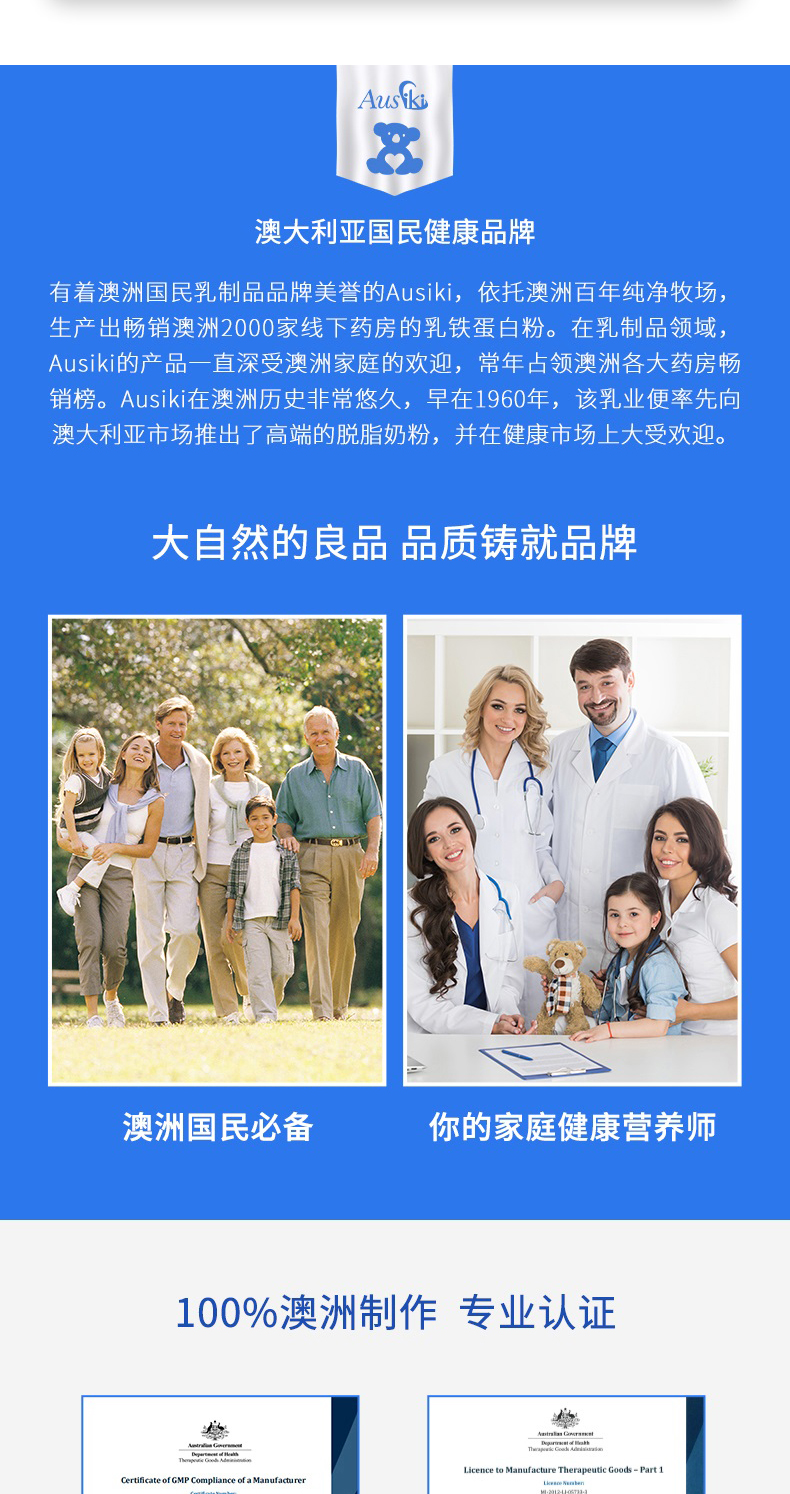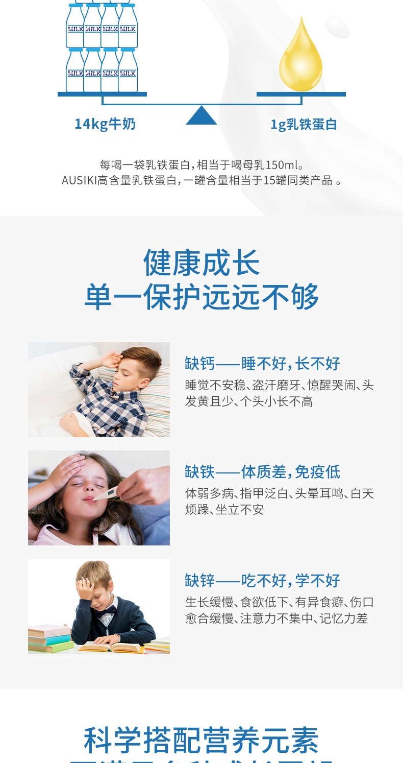 商品名称:澳爱优 Ausiki 小牛乳铁蛋白营养粉 1.5g*60袋补锌补铁