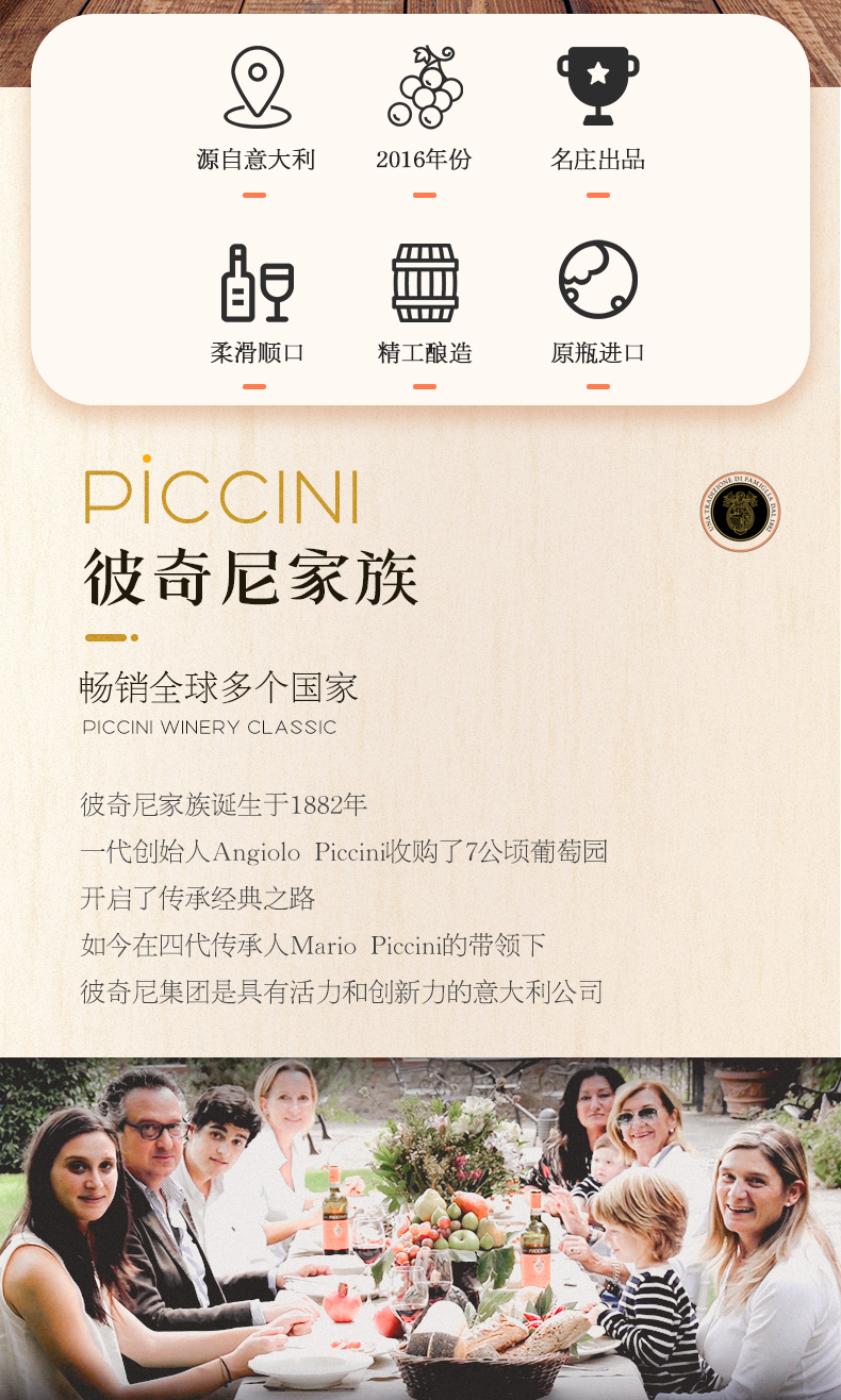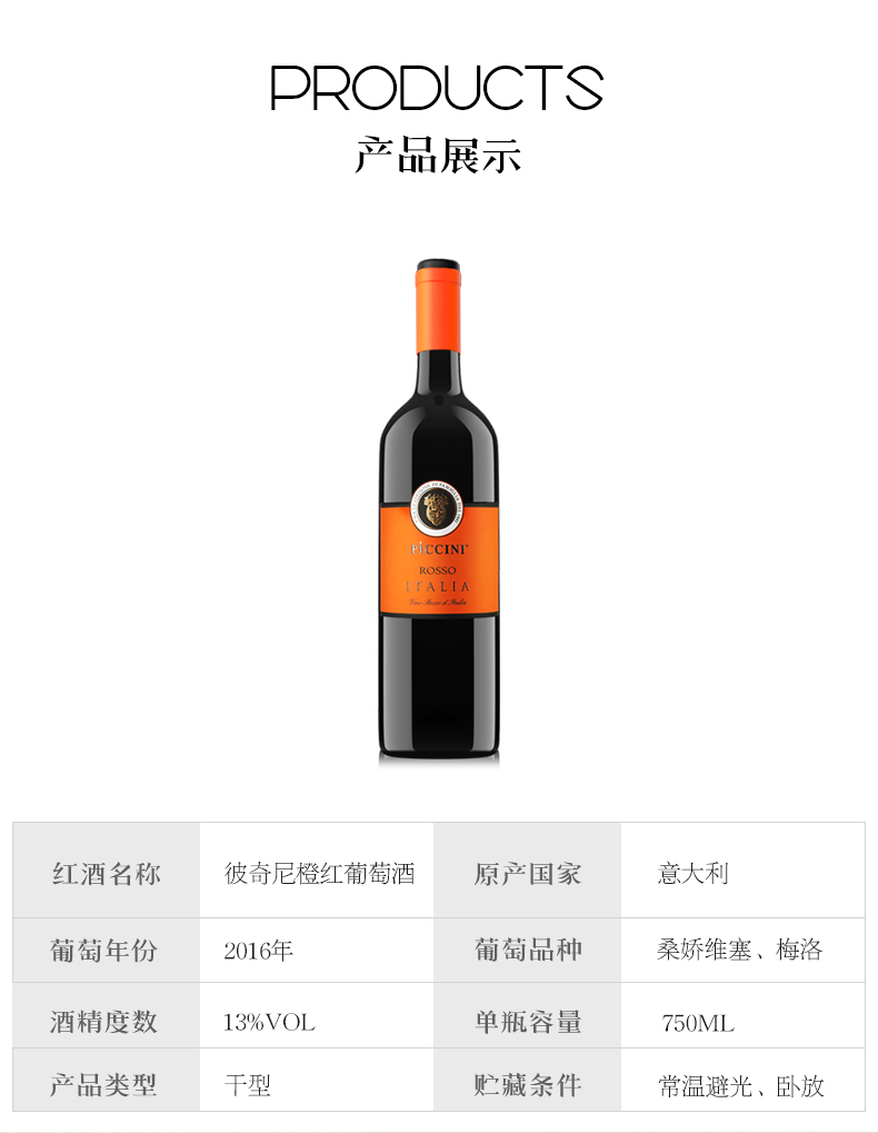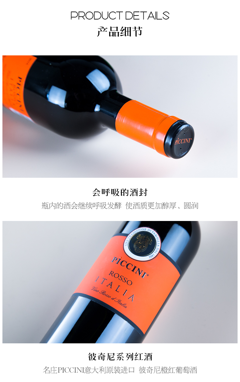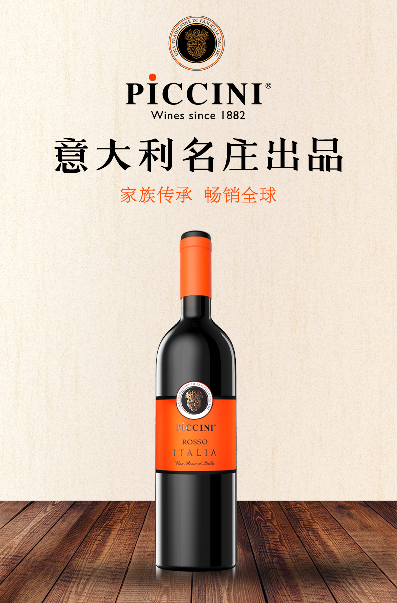 商品名称:【单支品鉴】名庄PICCINI意大利原瓶原装进口红酒 彼奇尼橙红葡萄酒750ml