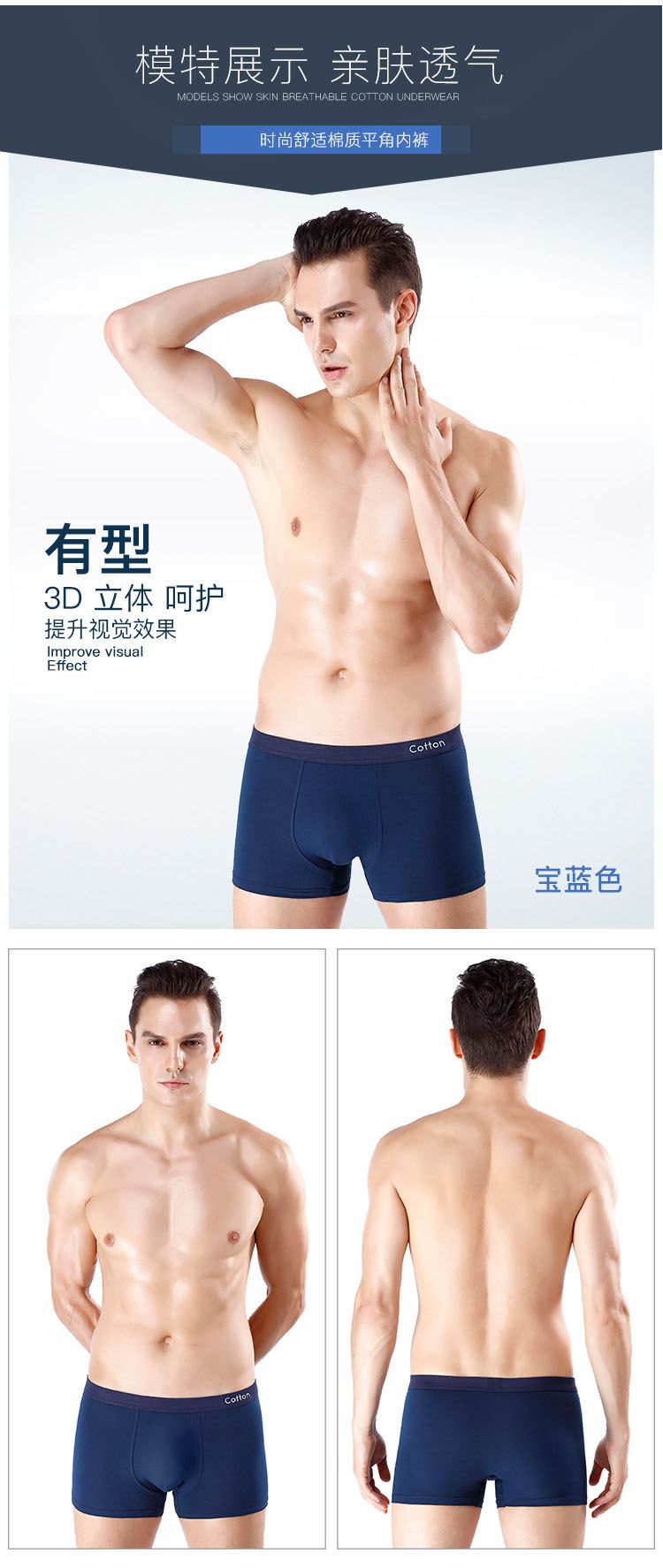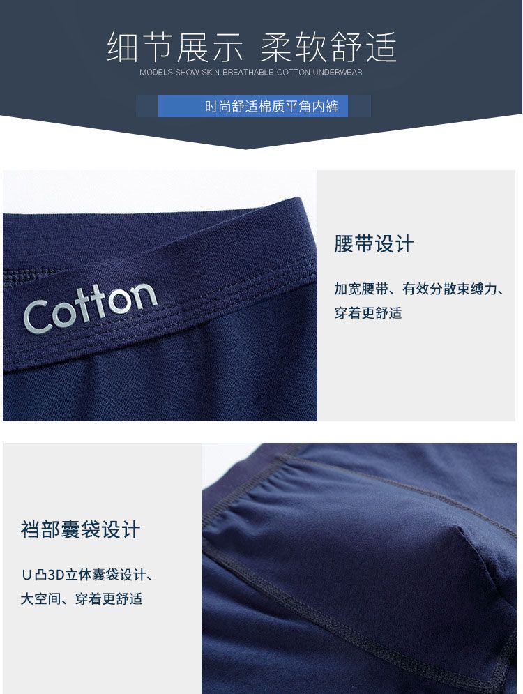 商品名称:意达鸟3条装纯棉U凸男士平角裤9909颜色随机