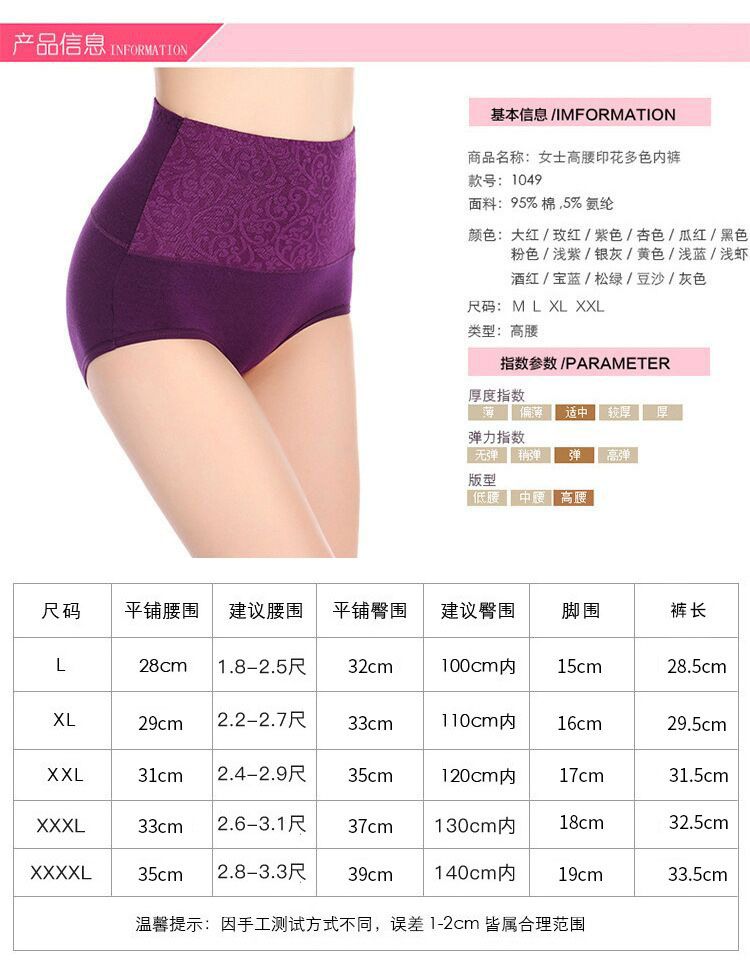 商品名称:意达鸟3条装高腰纯棉大码女士性感内裤1049颜色随机