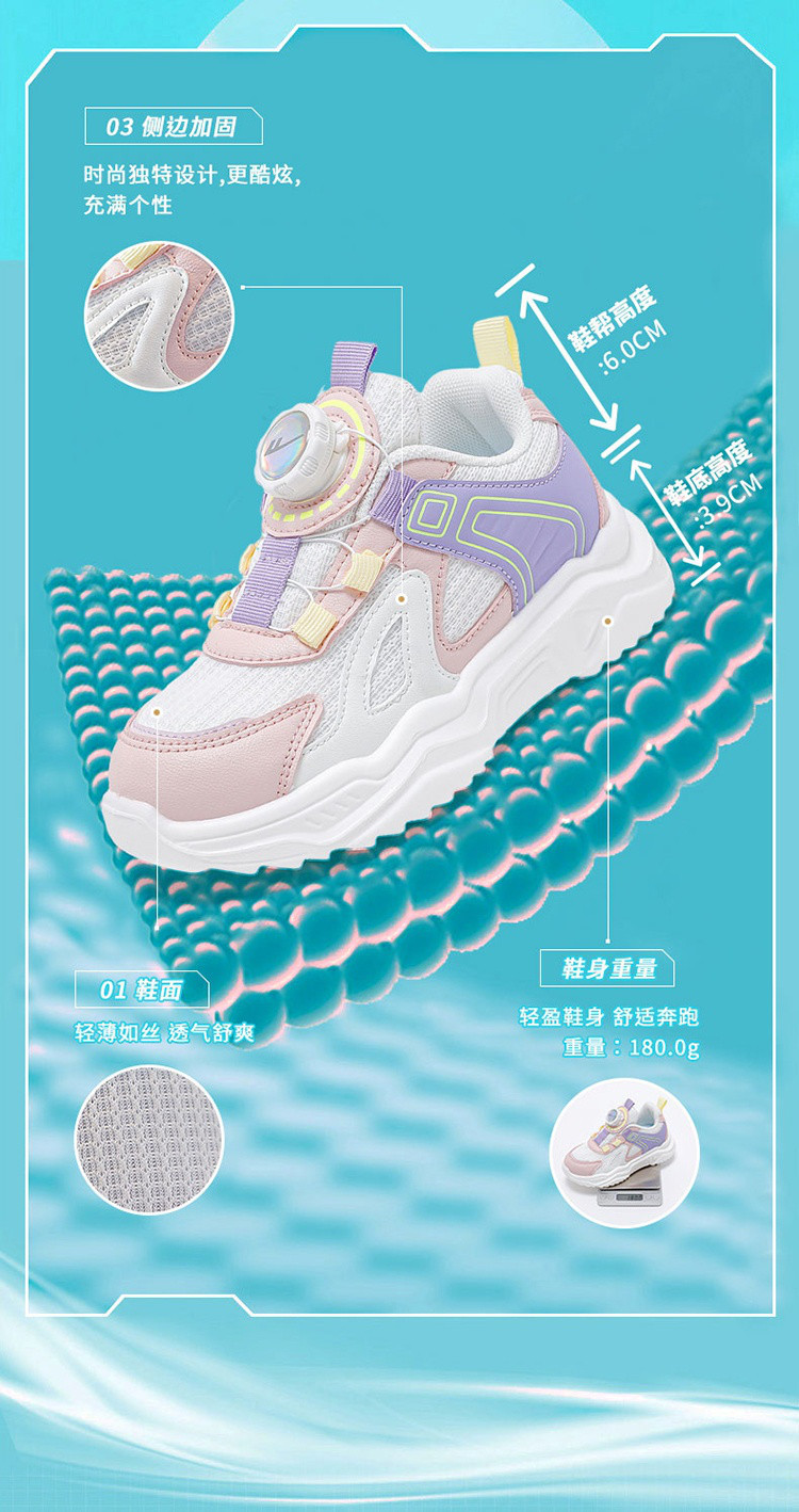 商品名称:【春季爆款】旋转纽扣儿童运动鞋舒适软底透气跑步鞋时尚童鞋 835293