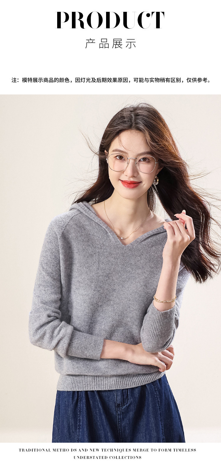 商品名称:【100%羊毛】无缝纯羊毛连帽针织衫毛衣卫衣羊毛衫女 538963