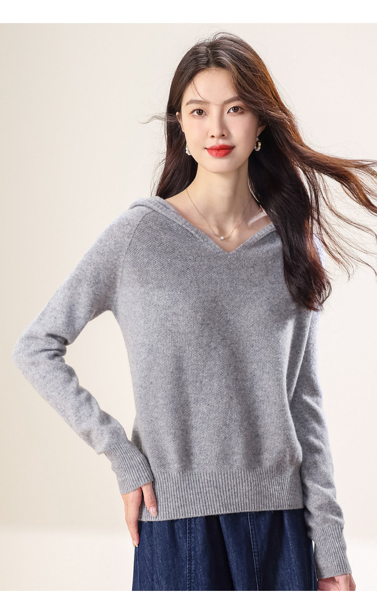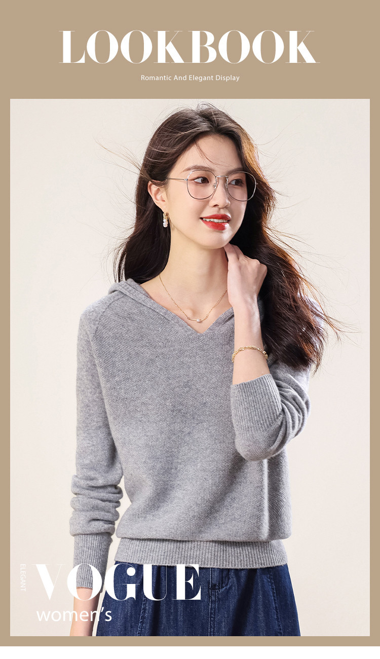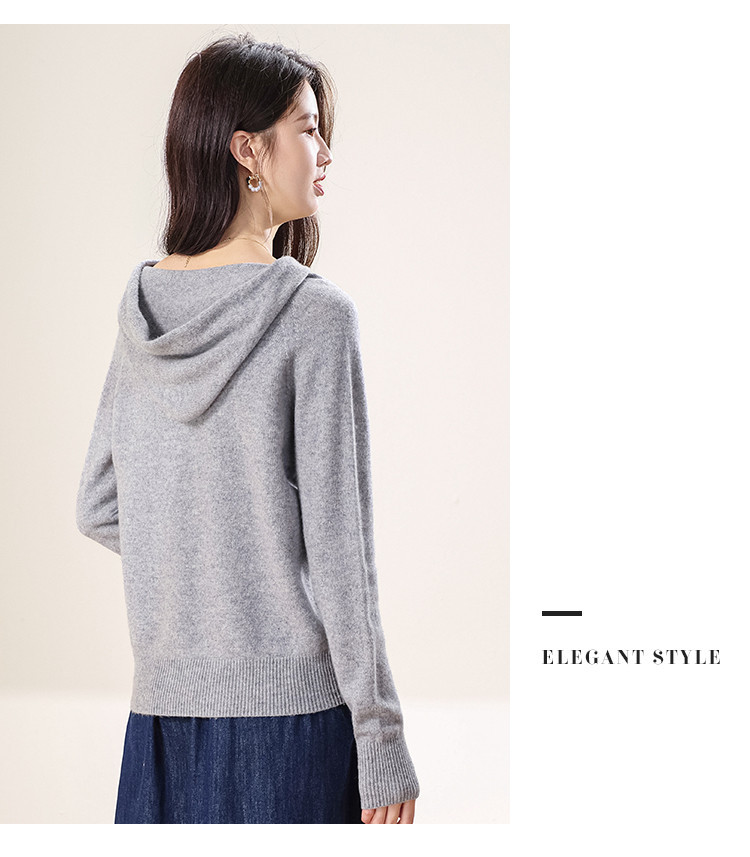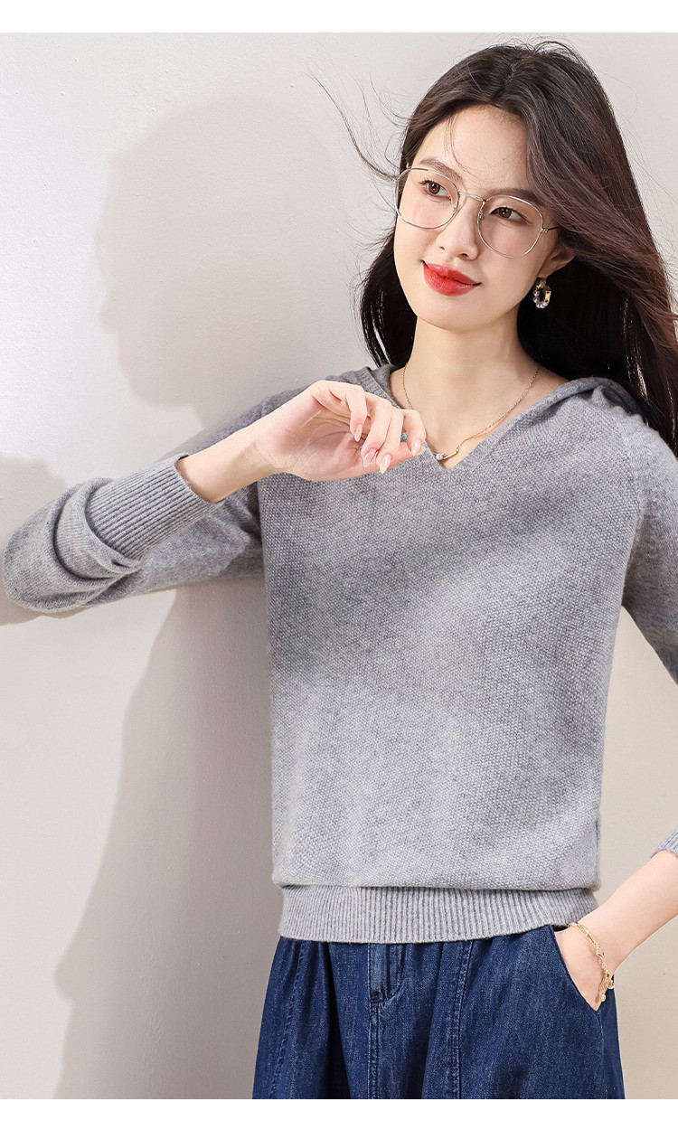 【100%羊毛】无缝纯羊毛连帽针织衫毛衣卫衣羊毛衫女 538963